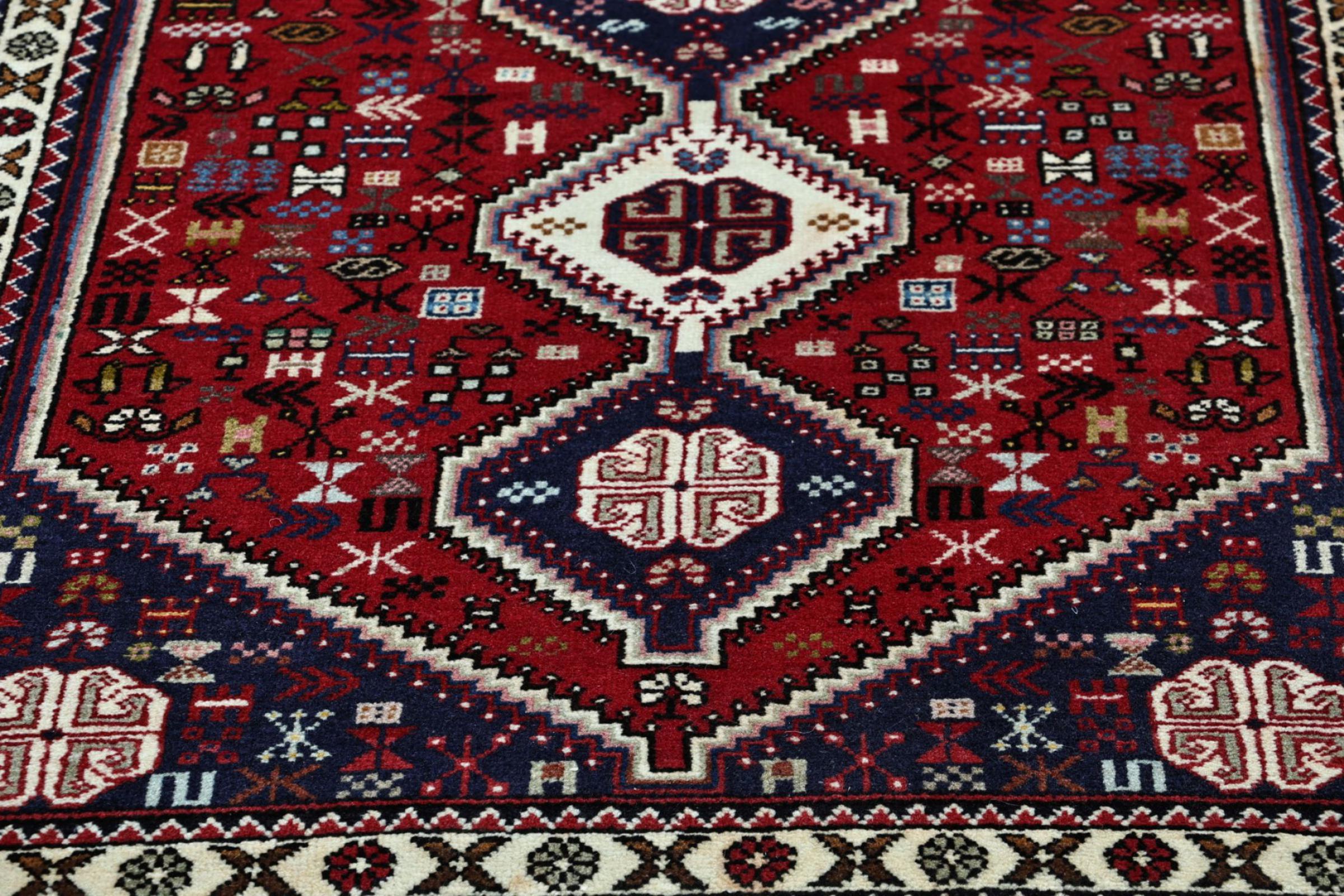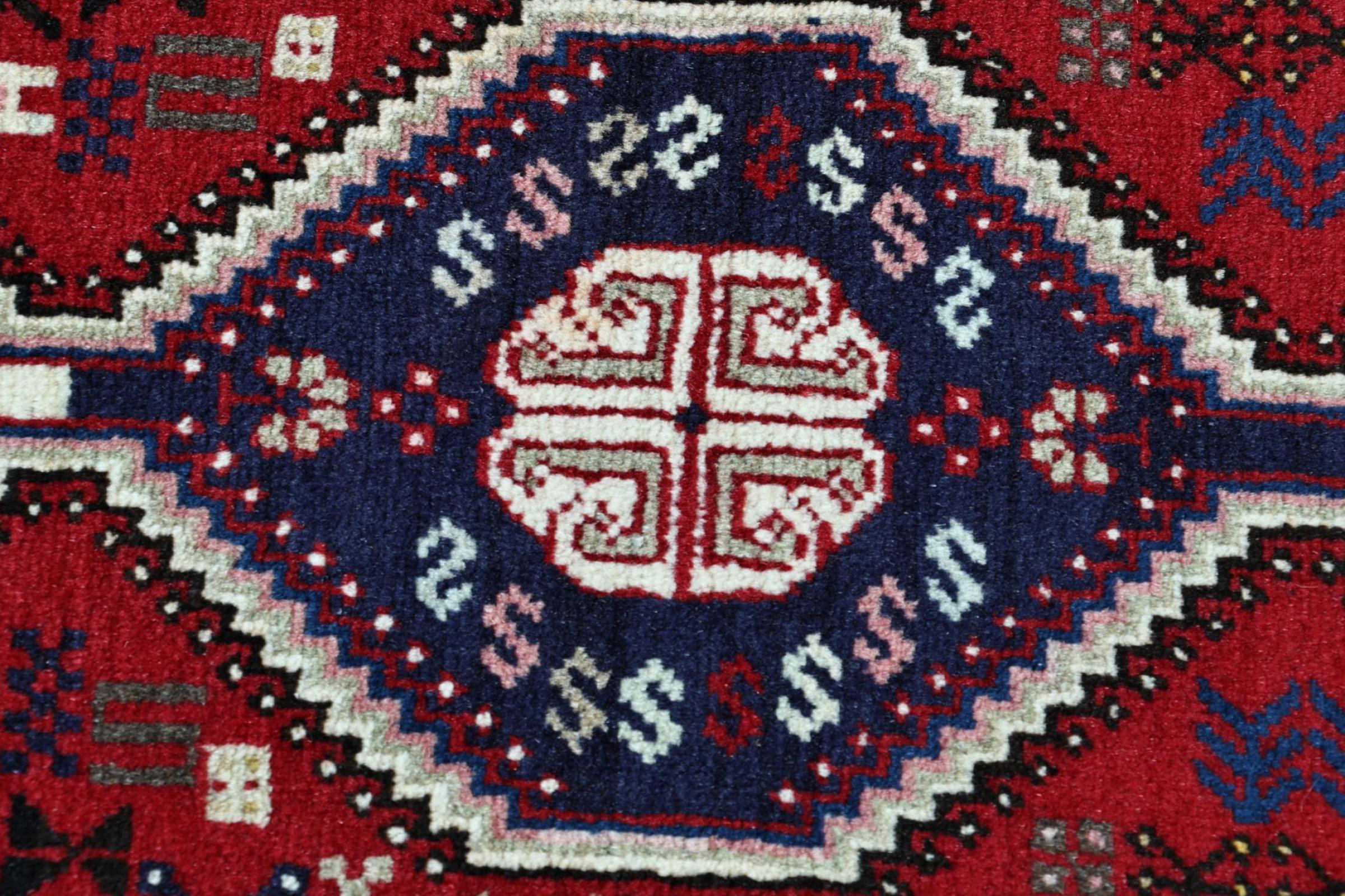 Esta alfombra pertenece a alfombras de pueblos y nómadas de Irán, antiguamente Persia. Este tipo de alfombra se anuda a mano en ciudades y pueblos más pequeños según la antigua tradición. Incluso los nómadas siguen anudando alfombras persas al aire libre. Las alfombras están anudadas sin un patrón y completamente desde la cabeza. Se caracterizan por los ornamentos clásicos, que están dispuestos en patrones rectos y geométricos. Gracias a su origen cultural-tradicional, estas alfombras tienen un carácter único que encarna la antigua Persia.