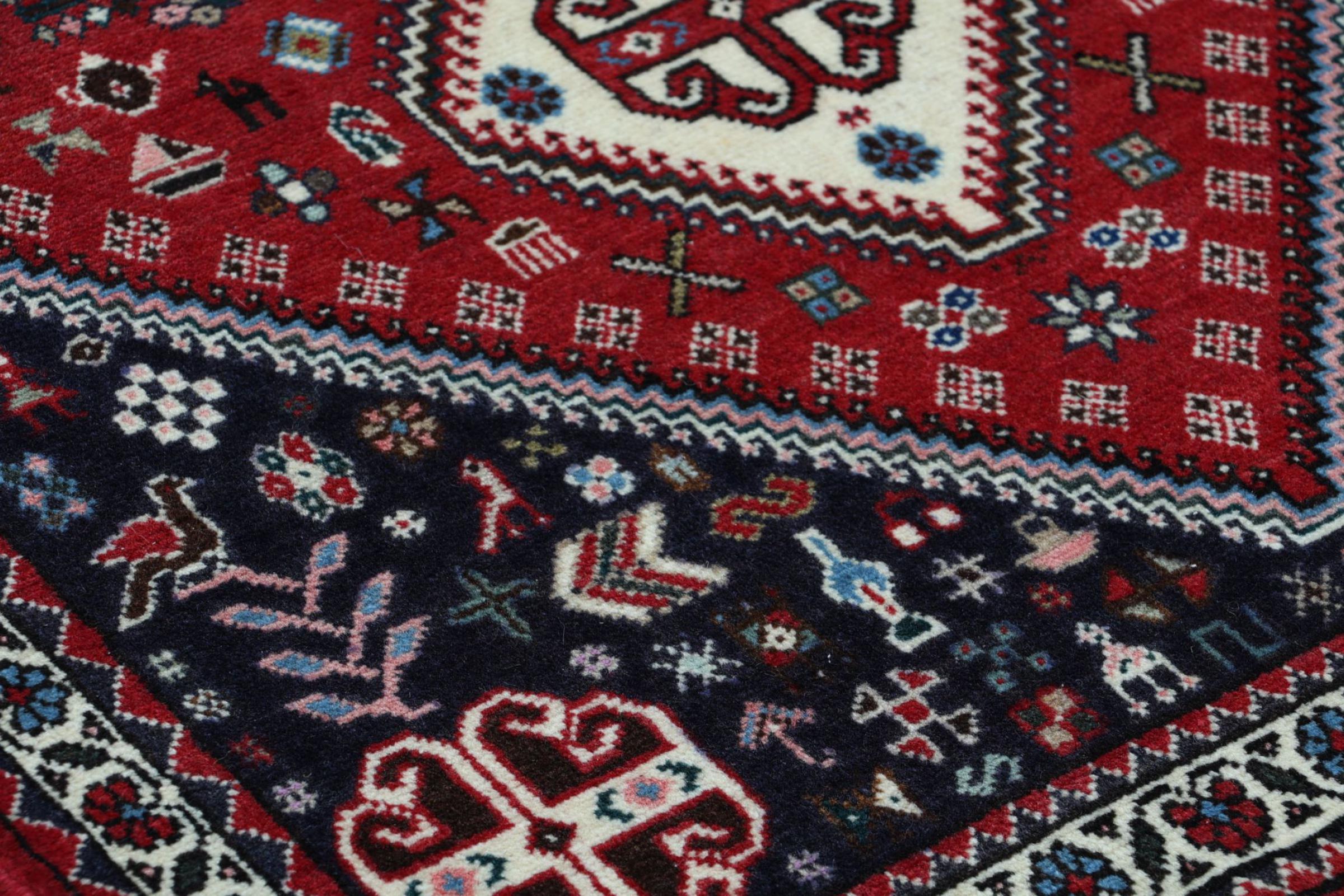 Esta alfombra pertenece a alfombras de pueblos y nómadas de Irán, antiguamente Persia. Este tipo de alfombra se anuda a mano en ciudades y pueblos más pequeños según la antigua tradición. Incluso los nómadas siguen anudando alfombras persas al aire libre. Las alfombras están anudadas sin un patrón y completamente desde la cabeza. Se caracterizan por los ornamentos clásicos, que están dispuestos en patrones rectos y geométricos. Gracias a su origen cultural-tradicional, estas alfombras tienen un carácter único que encarna la antigua Persia.