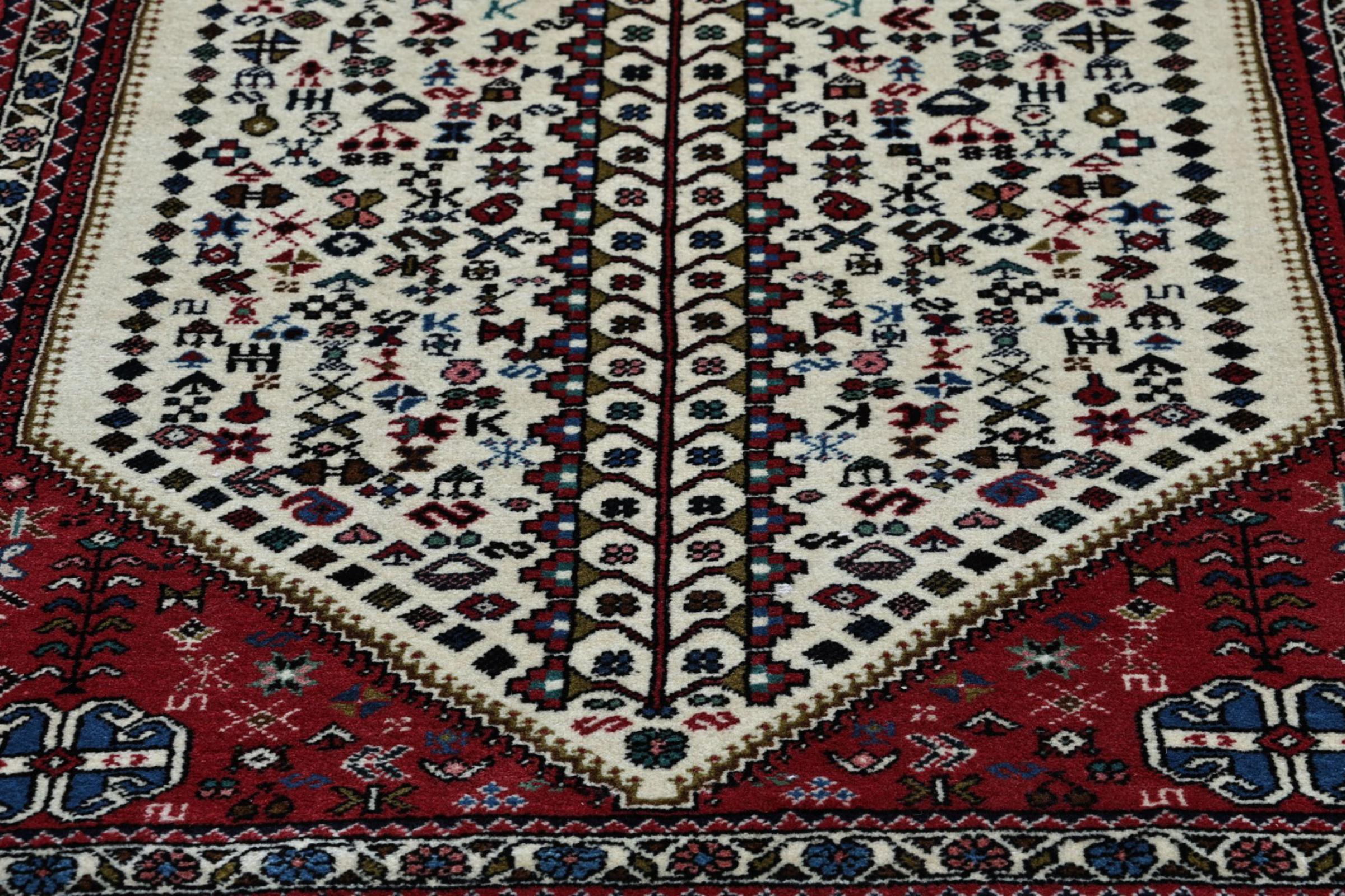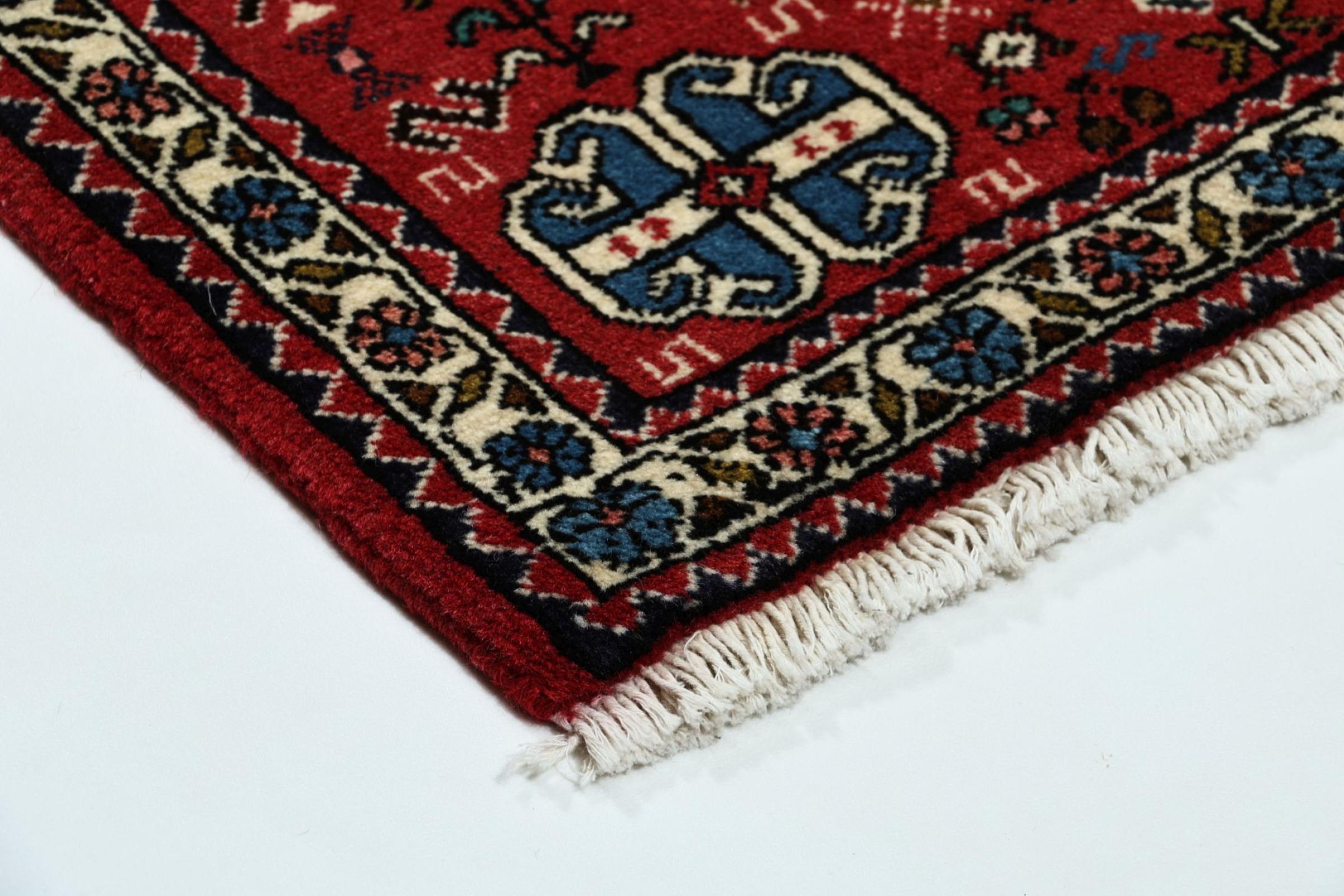 Esta alfombra pertenece a alfombras de pueblos y nómadas de Irán, antiguamente Persia. Este tipo de alfombra se anuda a mano en ciudades y pueblos más pequeños según la antigua tradición. Incluso los nómadas siguen anudando alfombras persas al aire libre. Las alfombras están anudadas sin un patrón y completamente desde la cabeza. Se caracterizan por los ornamentos clásicos, que están dispuestos en patrones rectos y geométricos. Gracias a su origen cultural-tradicional, estas alfombras tienen un carácter único que encarna la antigua Persia.
