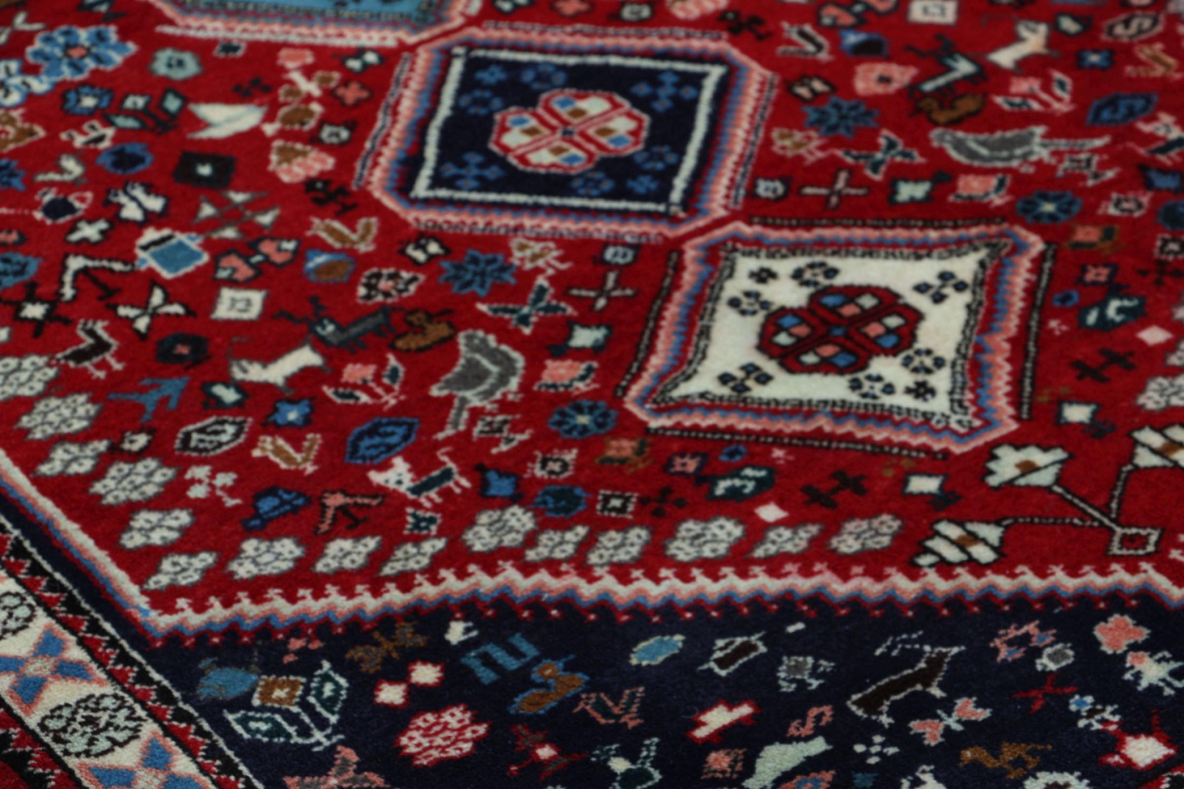 Esta alfombra pertenece a alfombras de pueblos y nómadas de Irán, antiguamente Persia. Este tipo de alfombra se anuda a mano en ciudades y pueblos más pequeños según la antigua tradición. Incluso los nómadas siguen anudando alfombras persas al aire libre. Las alfombras están anudadas sin un patrón y completamente desde la cabeza. Se caracterizan por los ornamentos clásicos, que están dispuestos en patrones rectos y geométricos. Gracias a su origen cultural-tradicional, estas alfombras tienen un carácter único que encarna la antigua Persia.