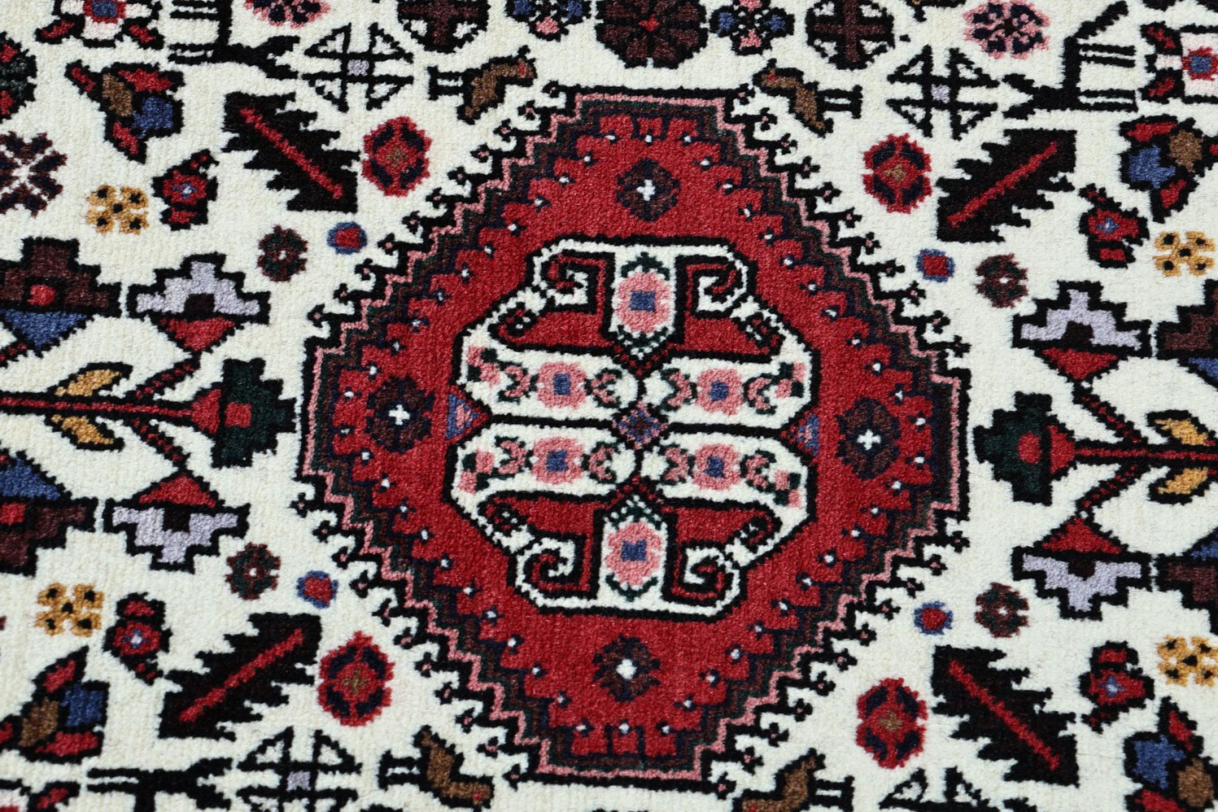 Esta alfombra pertenece a alfombras de pueblos y nómadas de Irán, antiguamente Persia. Este tipo de alfombra se anuda a mano en ciudades y pueblos más pequeños según la antigua tradición. Incluso los nómadas siguen anudando alfombras persas al aire libre. Las alfombras están anudadas sin un patrón y completamente desde la cabeza. Se caracterizan por los ornamentos clásicos, que están dispuestos en patrones rectos y geométricos. Gracias a su origen cultural-tradicional, estas alfombras tienen un carácter único que encarna la antigua Persia.