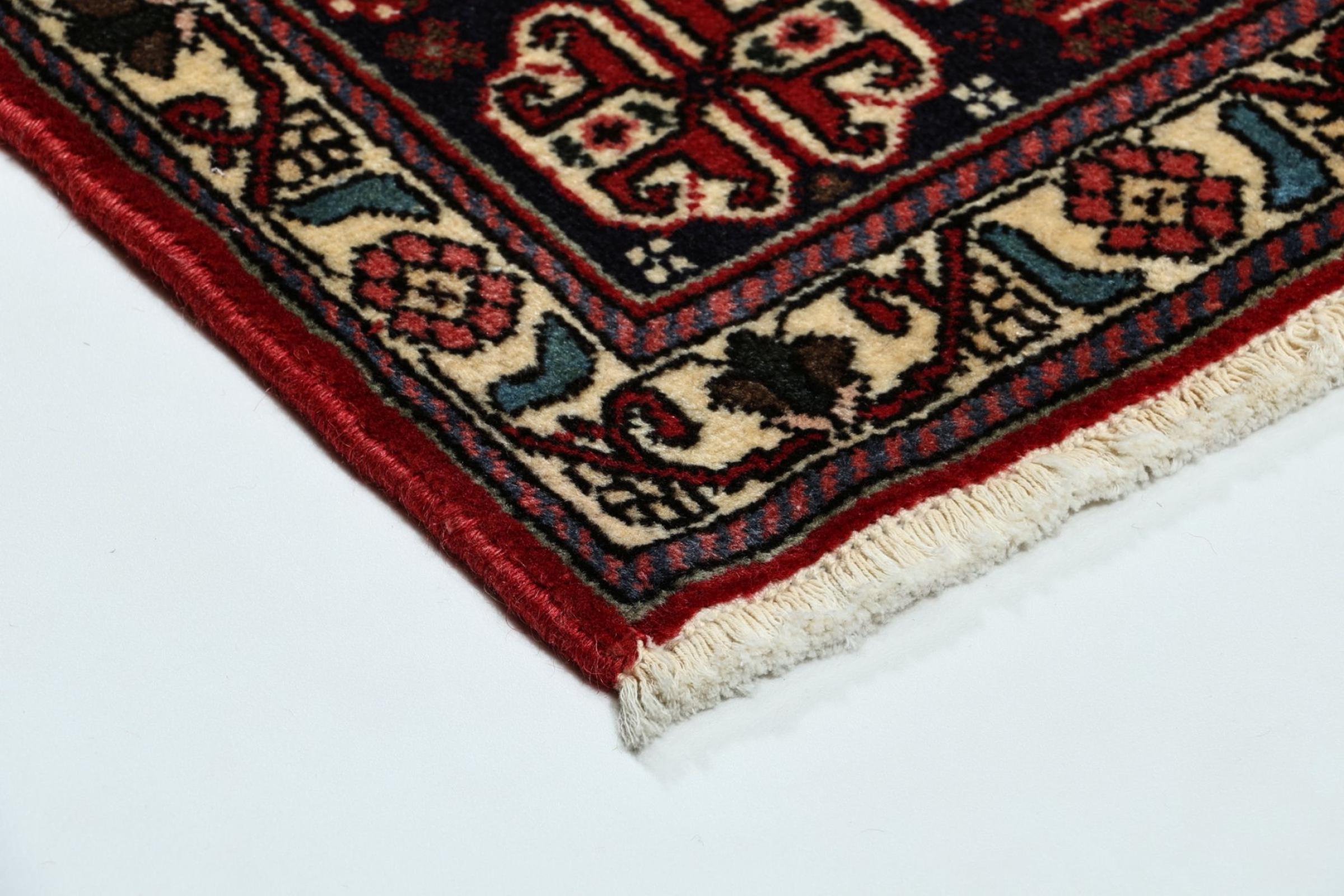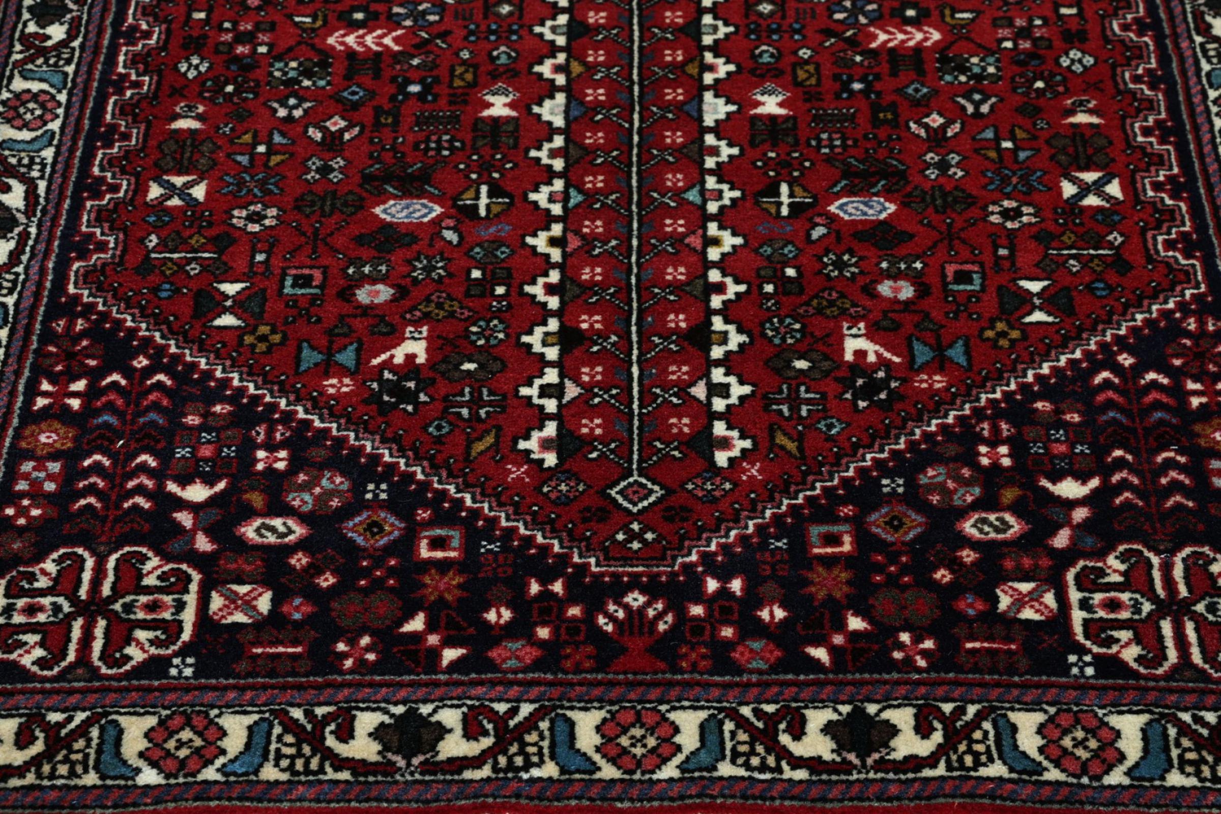Esta alfombra pertenece a alfombras de pueblos y nómadas de Irán, antiguamente Persia. Este tipo de alfombra se anuda a mano en ciudades y pueblos más pequeños según la antigua tradición. Incluso los nómadas siguen anudando alfombras persas al aire libre. Las alfombras están anudadas sin un patrón y completamente desde la cabeza. Se caracterizan por los ornamentos clásicos, que están dispuestos en patrones rectos y geométricos. Gracias a su origen cultural-tradicional, estas alfombras tienen un carácter único que encarna la antigua Persia.