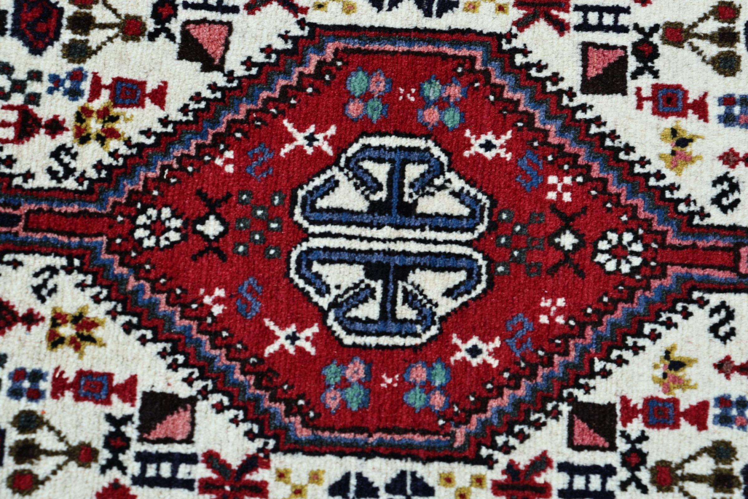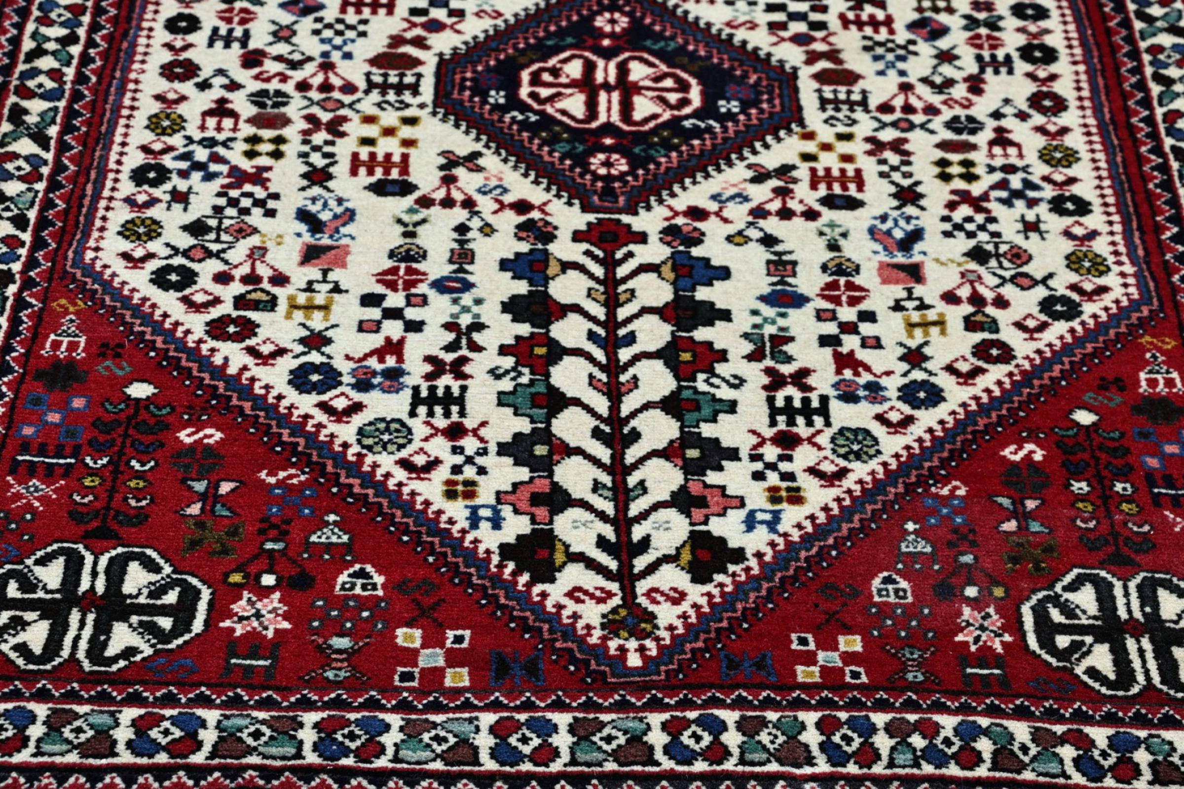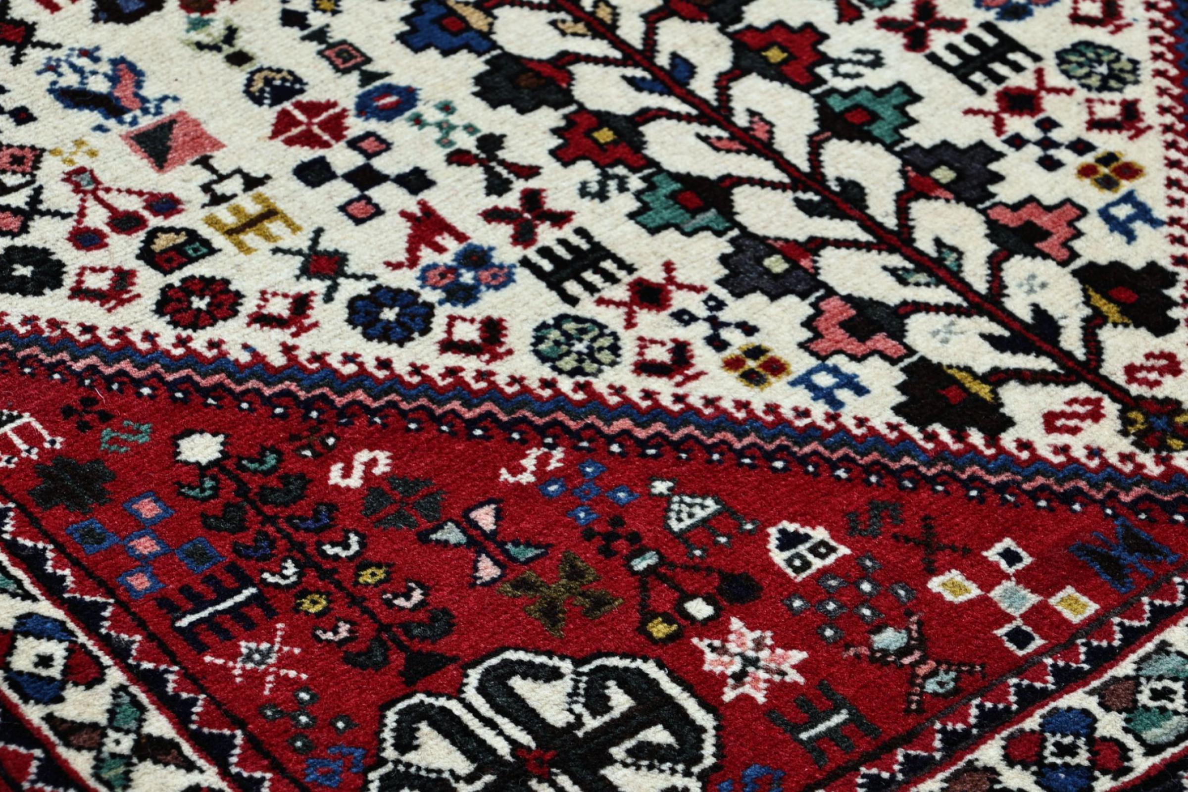 Esta alfombra pertenece a alfombras de pueblos y nómadas de Irán, antiguamente Persia. Este tipo de alfombra se anuda a mano en ciudades y pueblos más pequeños según la antigua tradición. Incluso los nómadas siguen anudando alfombras persas al aire libre. Las alfombras están anudadas sin un patrón y completamente desde la cabeza. Se caracterizan por los ornamentos clásicos, que están dispuestos en patrones rectos y geométricos. Gracias a su origen cultural-tradicional, estas alfombras tienen un carácter único que encarna la antigua Persia.