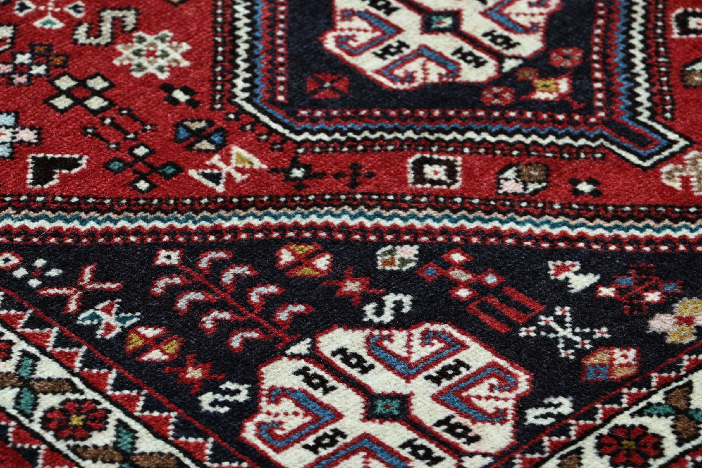Esta alfombra pertenece a alfombras de pueblos y nómadas de Irán, antiguamente Persia. Este tipo de alfombra se anuda a mano en ciudades y pueblos más pequeños según la antigua tradición. Incluso los nómadas siguen anudando alfombras persas al aire libre. Las alfombras están anudadas sin un patrón y completamente desde la cabeza. Se caracterizan por los ornamentos clásicos, que están dispuestos en patrones rectos y geométricos. Gracias a su origen cultural-tradicional, estas alfombras tienen un carácter único que encarna la antigua Persia.