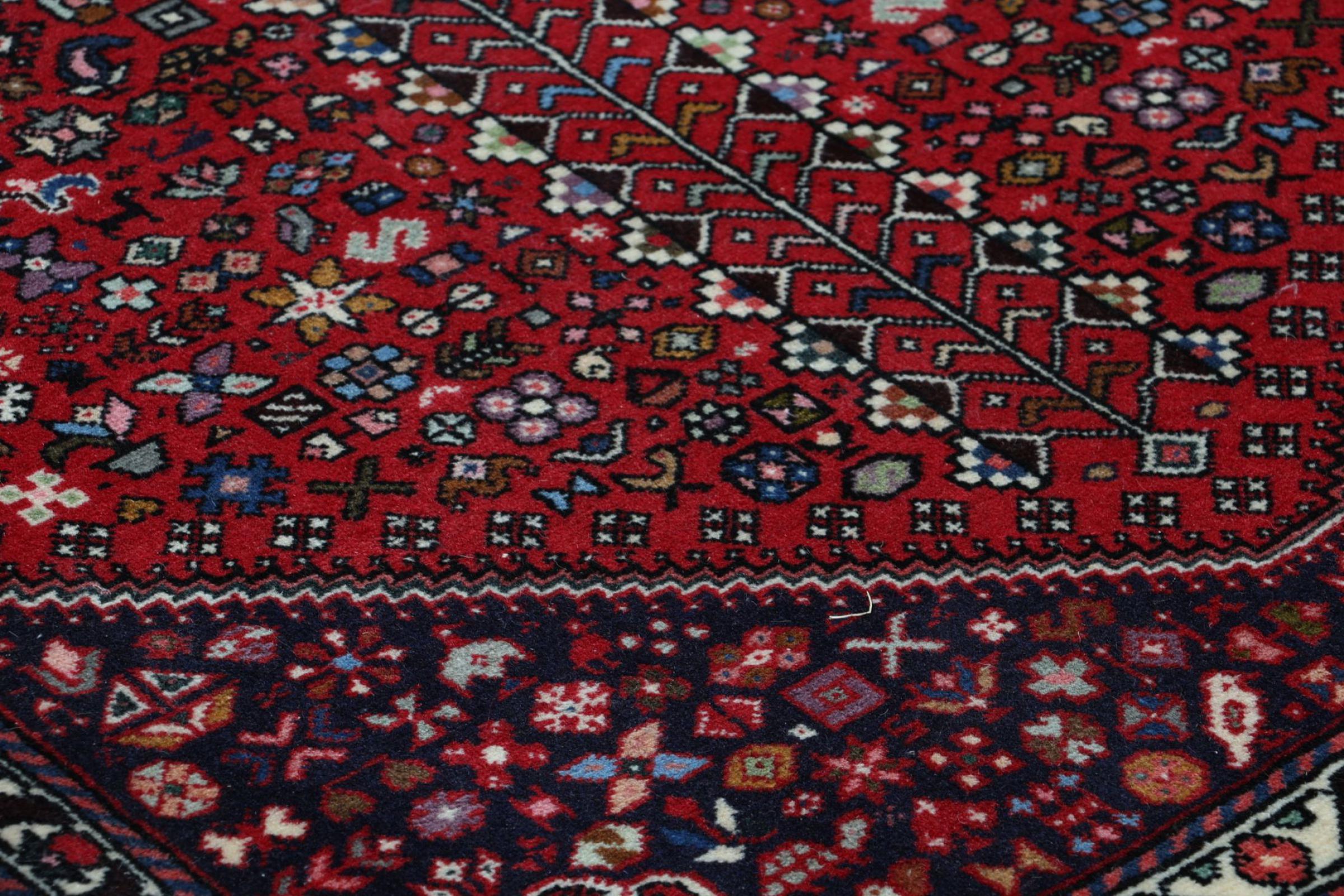 Esta alfombra Abadeh impresiona con su resistente terciopelo de lana y la calidad del algodón empleable en la urdimbre. Gracias a su asimétrica hechura anudada a mano, ésta alfombra proveniente de Irán y le garantiza mucha satisfacción. Ordene para hoy mismo su alfombra Persa y deje que la excelente calidad lo cautive.