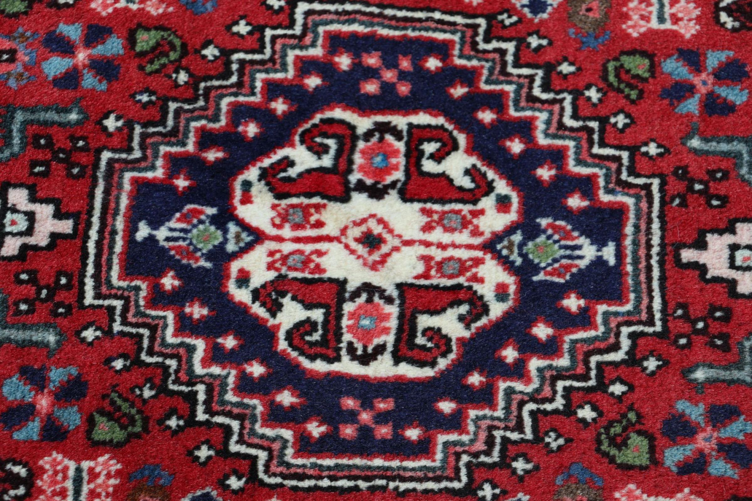 Esta alfombra pertenece a alfombras de pueblos y nómadas de Irán, antiguamente Persia. Este tipo de alfombra se anuda a mano en ciudades y pueblos más pequeños según la antigua tradición. Incluso los nómadas siguen anudando alfombras persas al aire libre. Las alfombras están anudadas sin un patrón y completamente desde la cabeza. Se caracterizan por los ornamentos clásicos, que están dispuestos en patrones rectos y geométricos. Gracias a su origen cultural-tradicional, estas alfombras tienen un carácter único que encarna la antigua Persia.