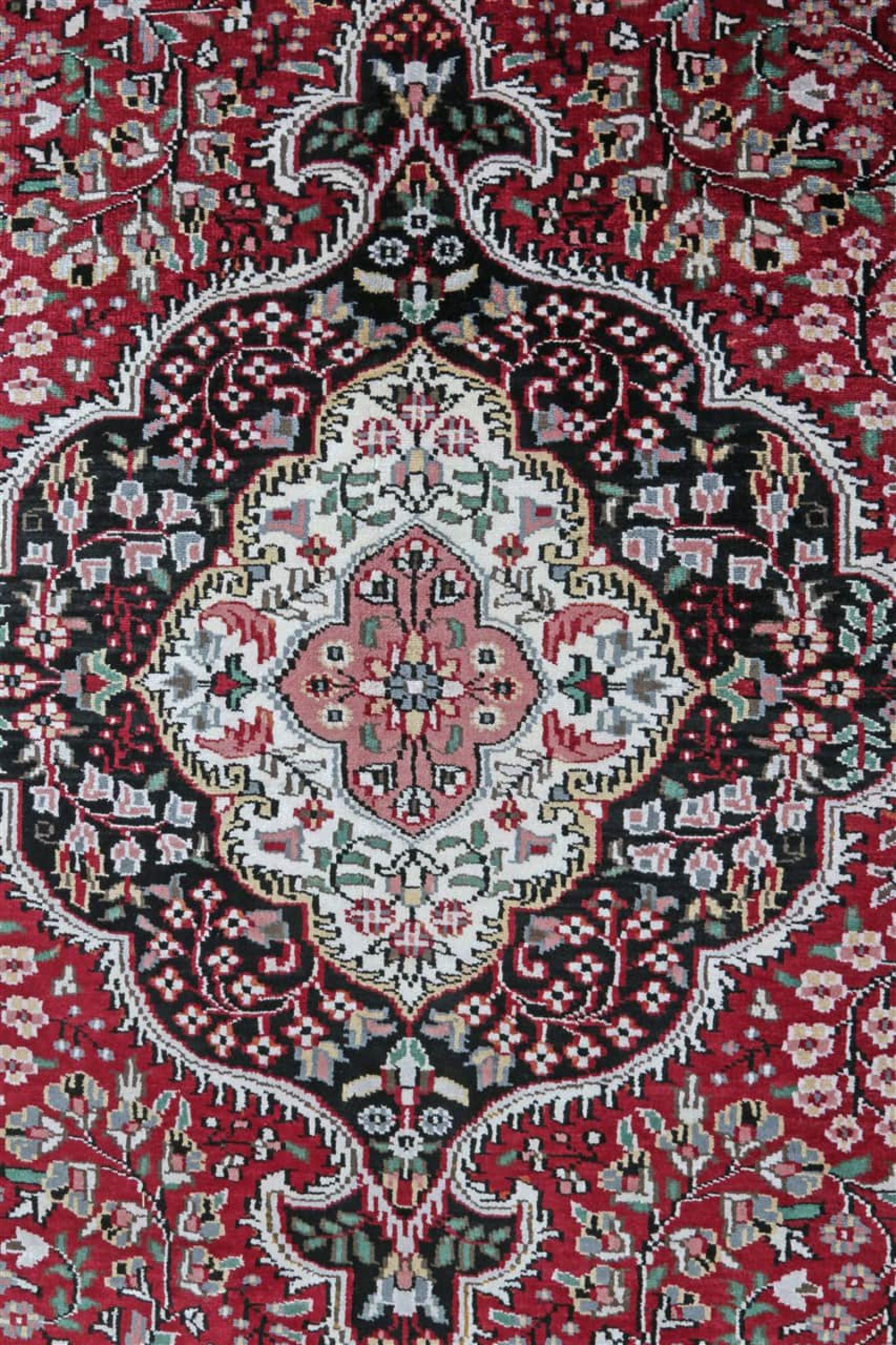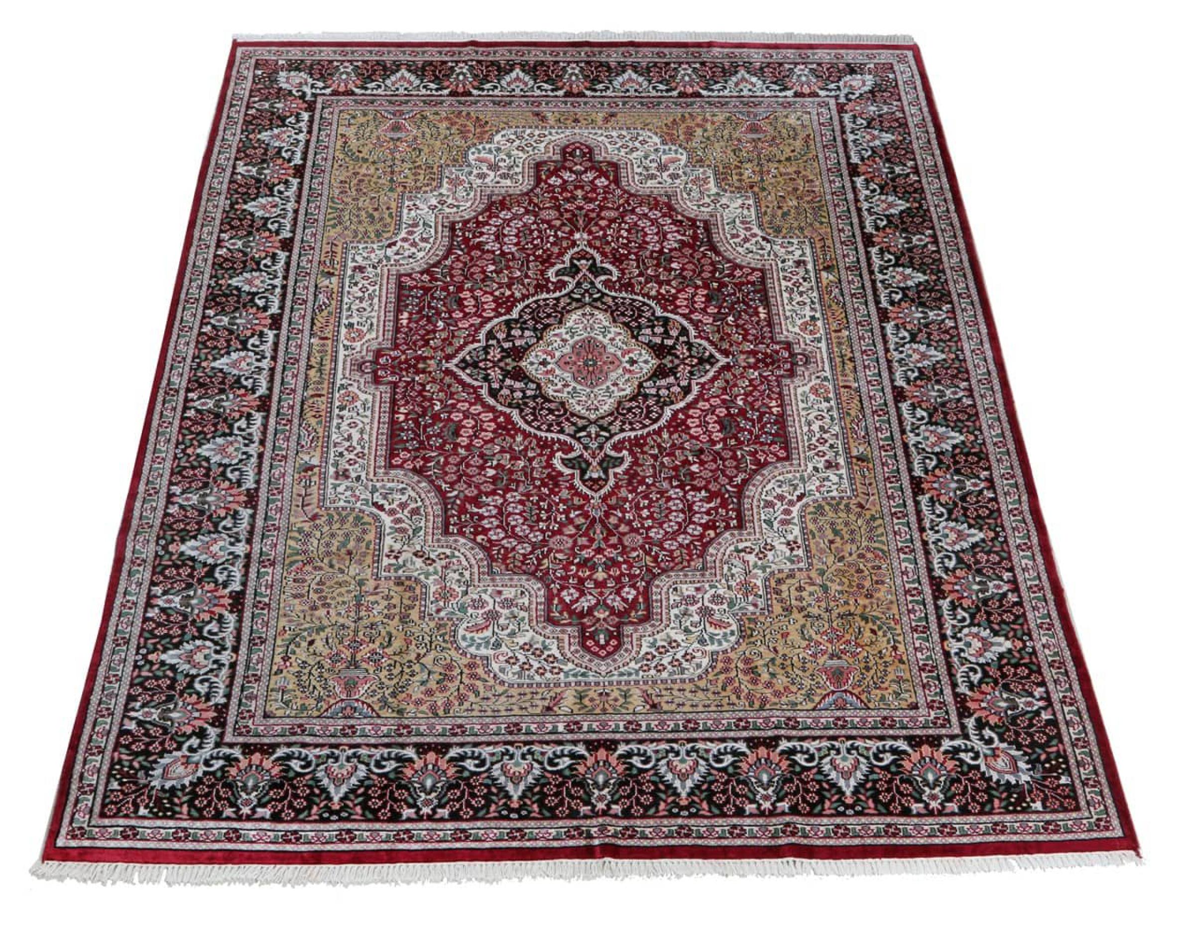 Los tejedores de alfombras de la antigua Persia llegaron a la India hace siglos para practicar su oficio. Así que la India hoy en día tiene una tradición de gran alcance en el tejido de alfombras. Los patrones y adornos se basan a menudo en los conocidos diseños de las alfombras persas. Muchas alfombras orientales anudadas a mano vienen del norte del país. Las alfombras de seda de Cachemira, por ejemplo, provienen de la región de Cachemira, que limita directamente con Pakistán.