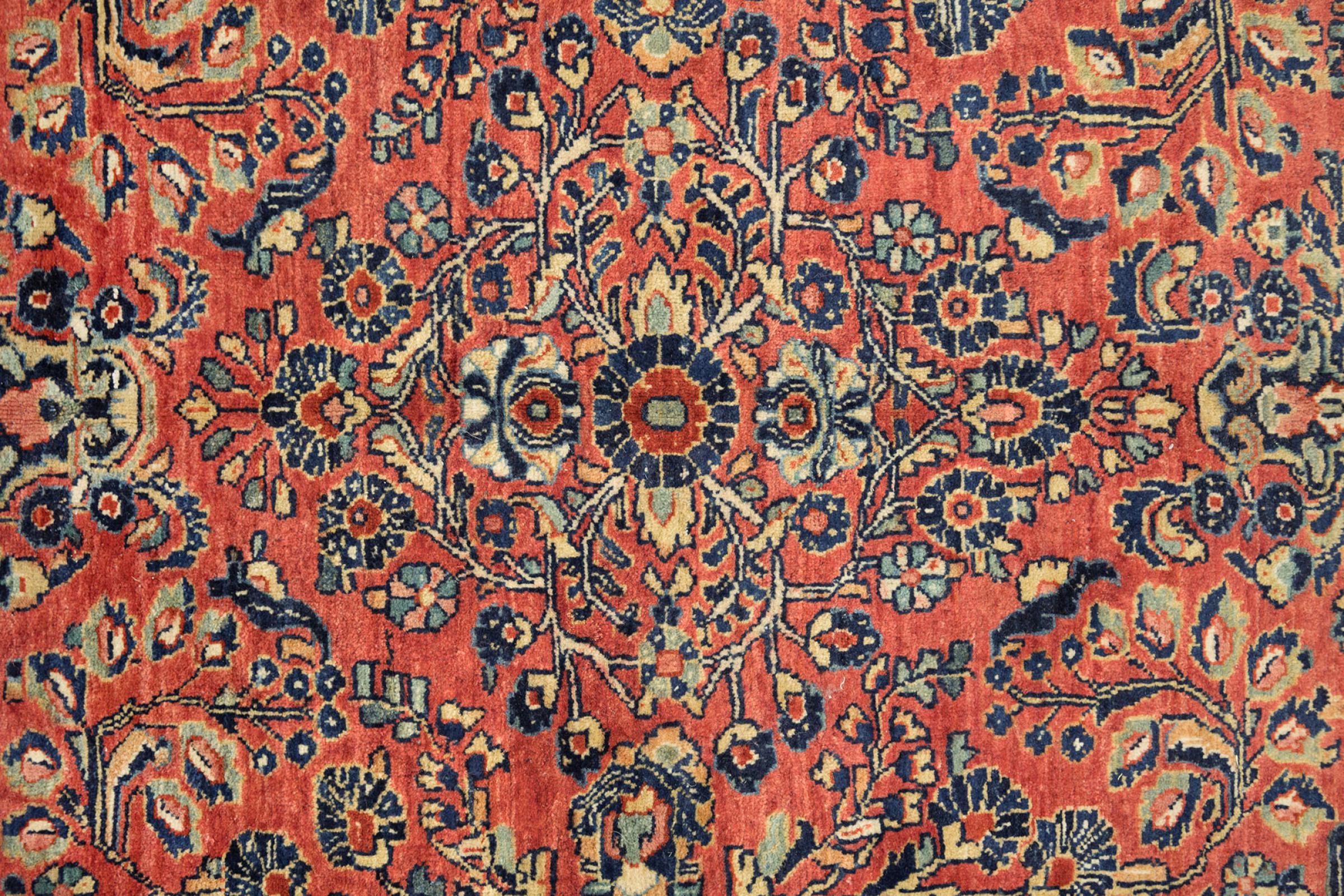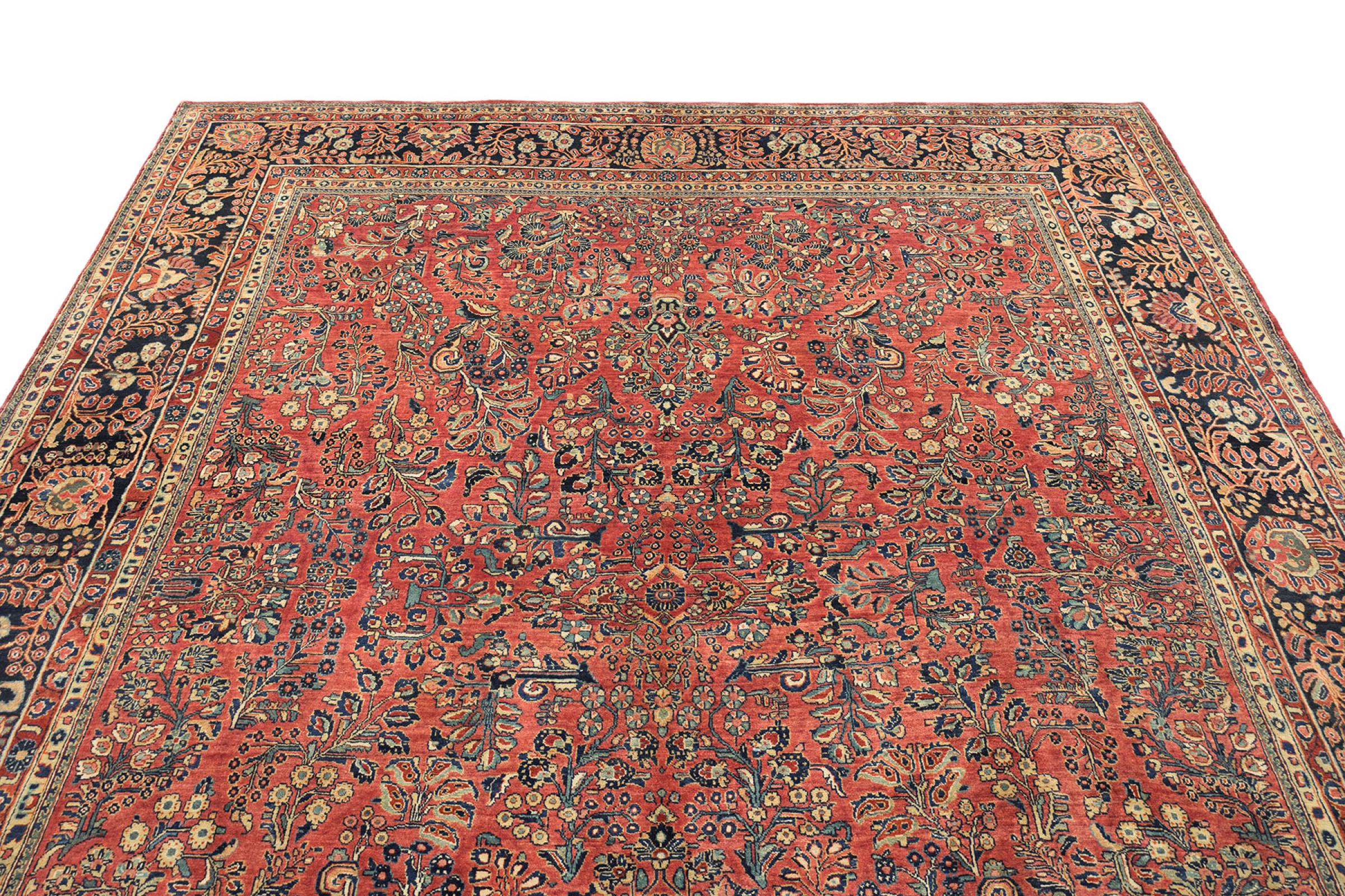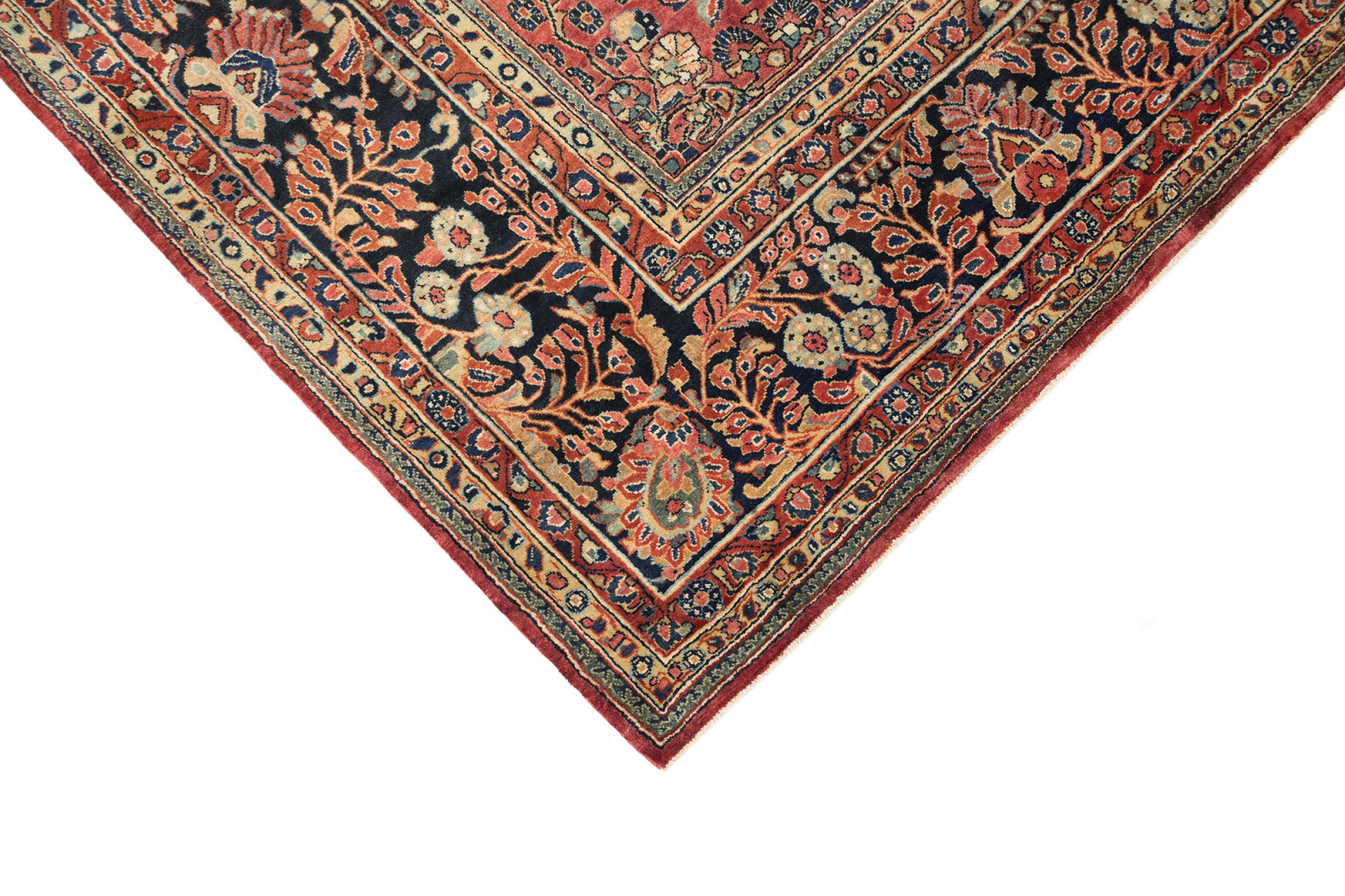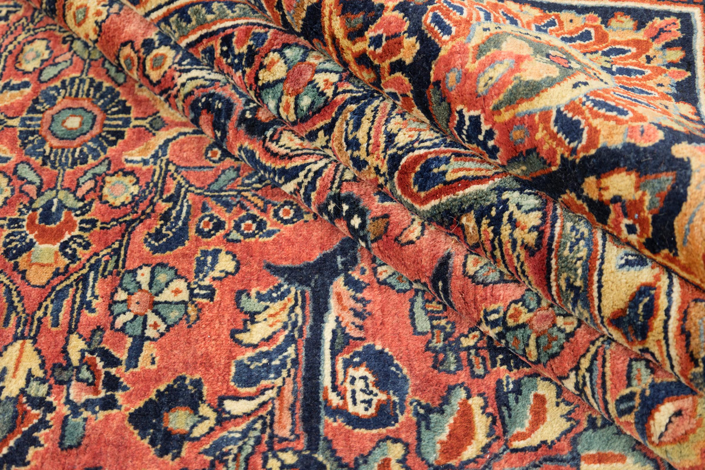 Esta alfombra Sarough antigua, finamente anudada a mano, es un ejemplo de la alta calidad que se fabrica en este pequeño pueblo de la región de Arak. Ha sido inspeccionada y cuidada por nuestros expertos para garantizar su bello estado. Esta alfombra antigua demuestra la durabilidad tan valiosa de las alfombras Sarough. Es una verdadera inversión, porque las alfombras Sarough antiguas son una rareza y ya no se anudan así.