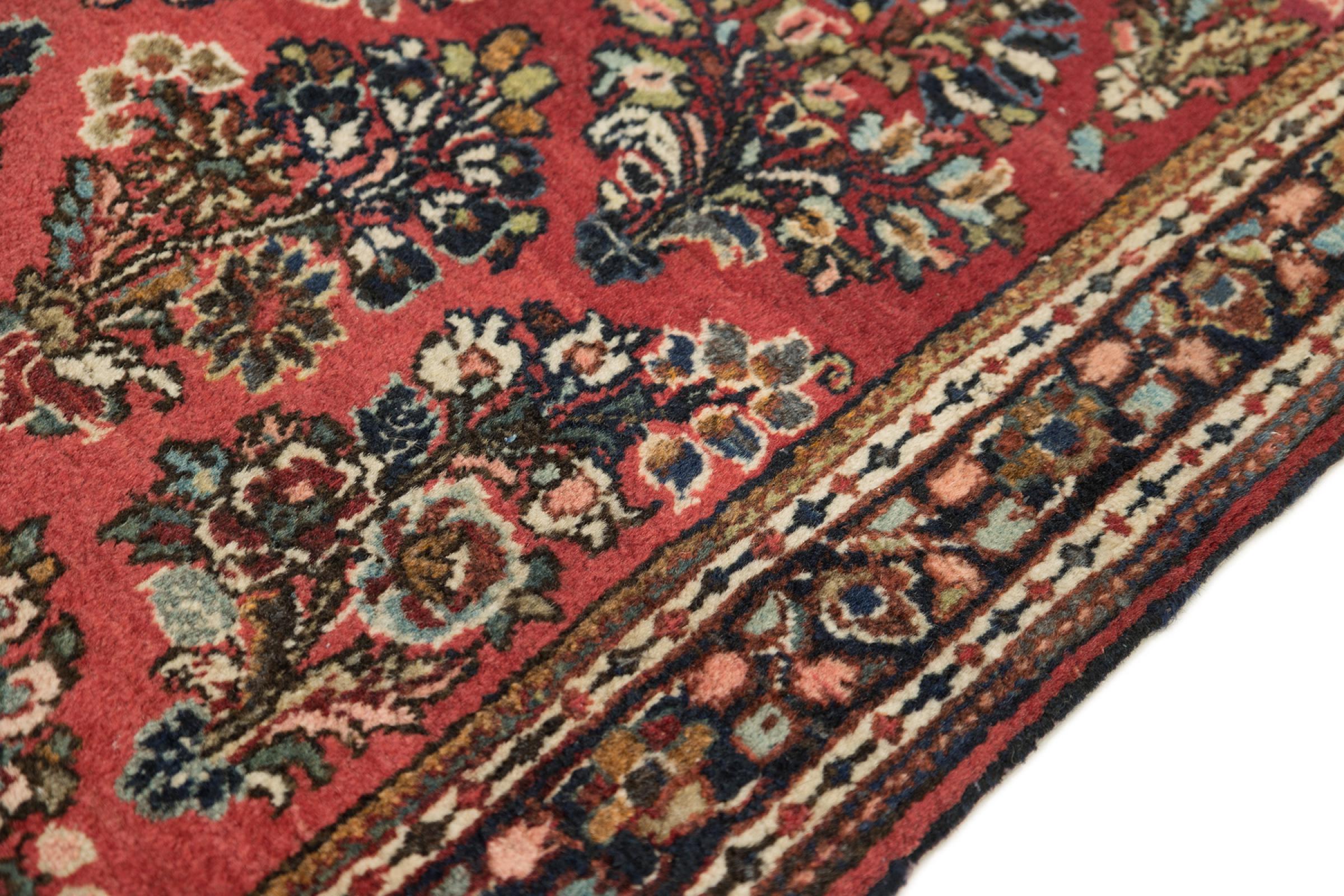 Esta alfombra Sarough antigua, finamente anudada a mano, es un ejemplo de la alta calidad que se fabrica en este pequeño pueblo de la región de Arak. Ha sido inspeccionada y cuidada por nuestros expertos para garantizar su bello estado. Esta alfombra antigua demuestra la durabilidad tan valiosa de las alfombras Sarough. Es una verdadera inversión, porque las alfombras Sarough antiguas son una rareza y ya no se anudan así.