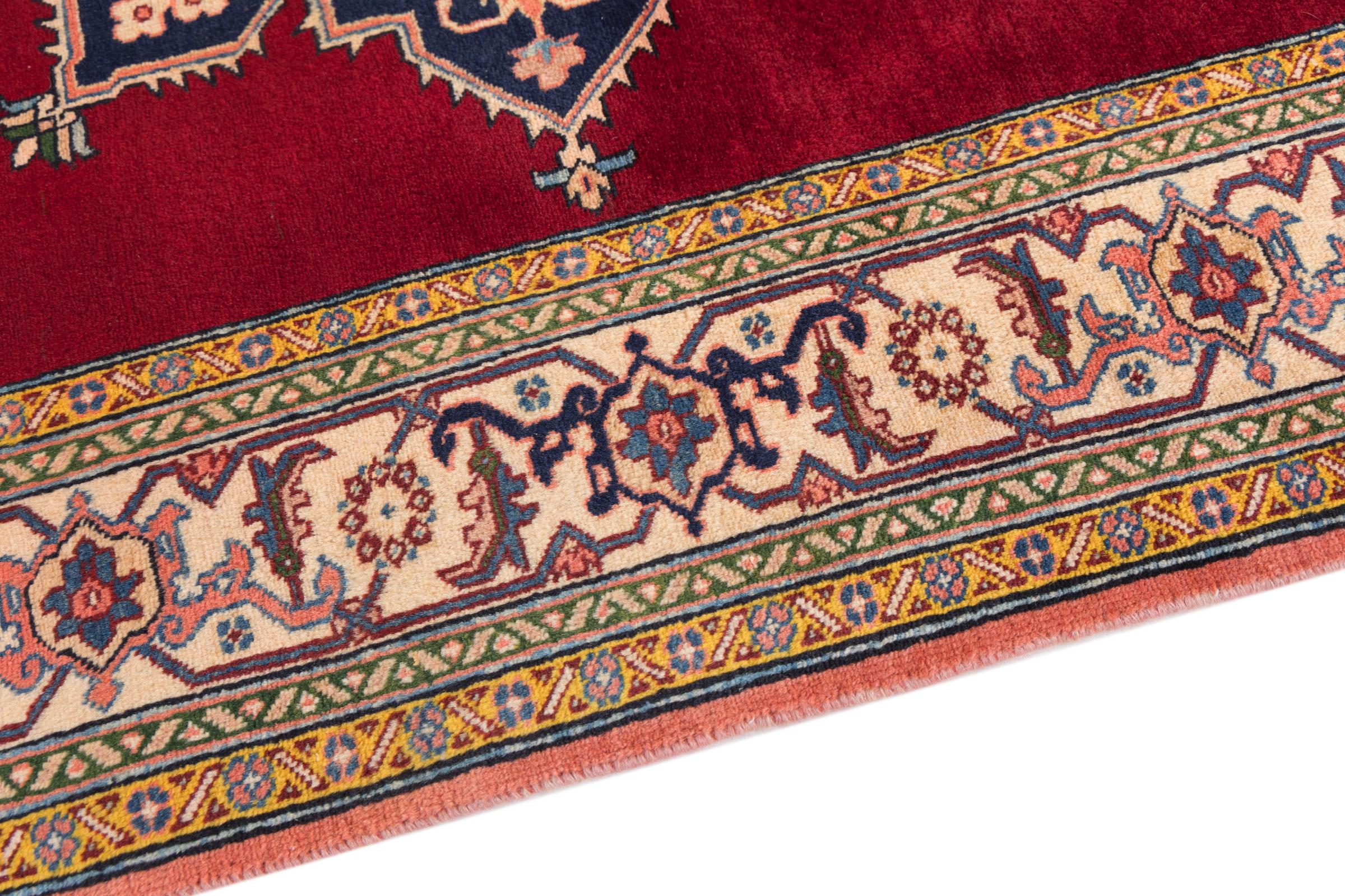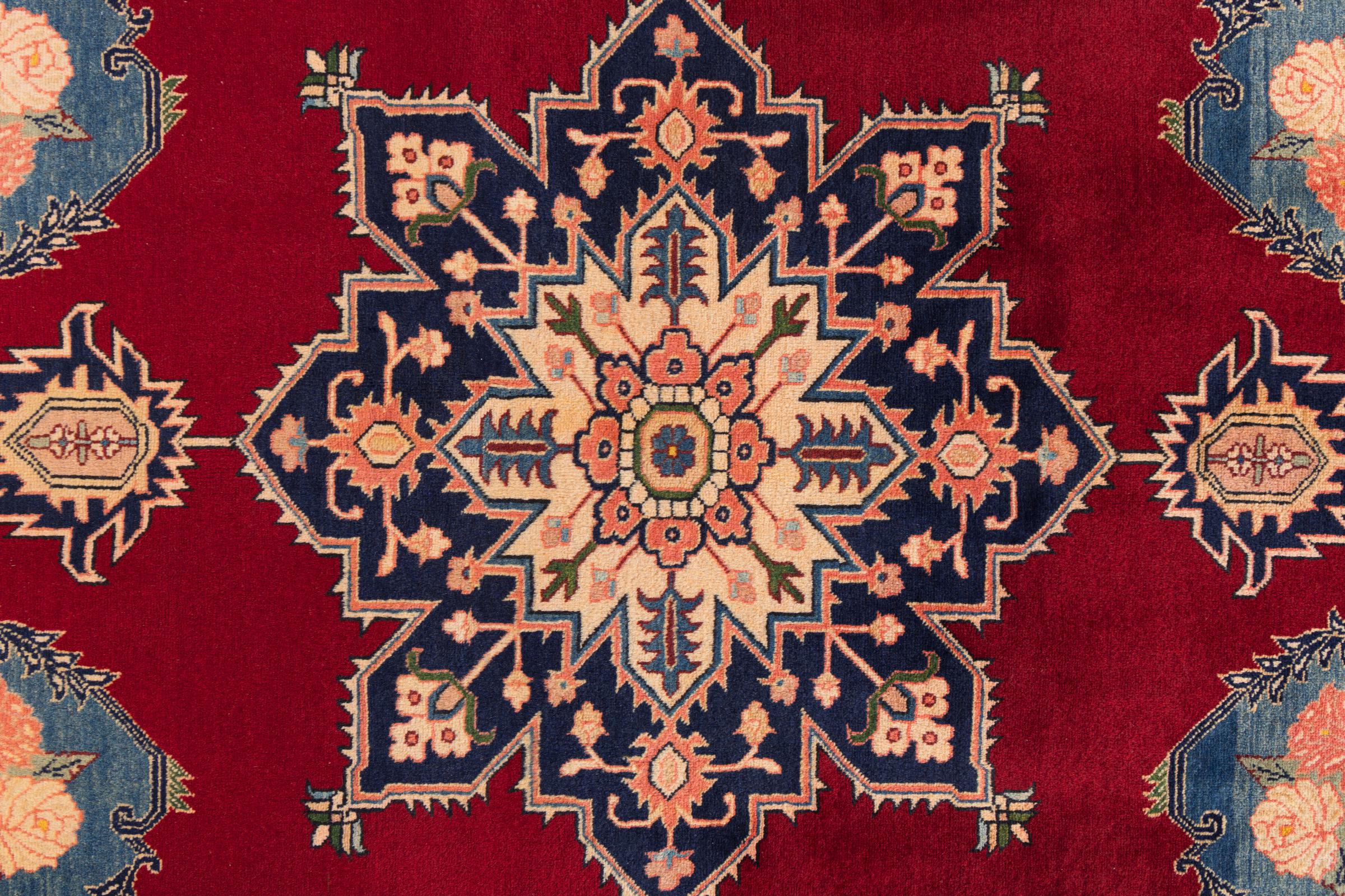 Esta alfombra Heriz representa un bello ejemplo de la artesanía de las alfombras persas. Su acabado rústico es un testimonio de durabilidad. Fue anudada a mano en la ciudad de Heriz, que se encuentra cerca de Tabriz, en el noroeste de Irán. Si busca una alfombra persa que le proporcione placer durante mucho tiempo y que sea muy moderna, le encantará esta Heriz. Los adornos de las alfombras Heriz son muy populares hoy en día y se consideran muy modernos. Nunca volverá a regalar una alfombra así.