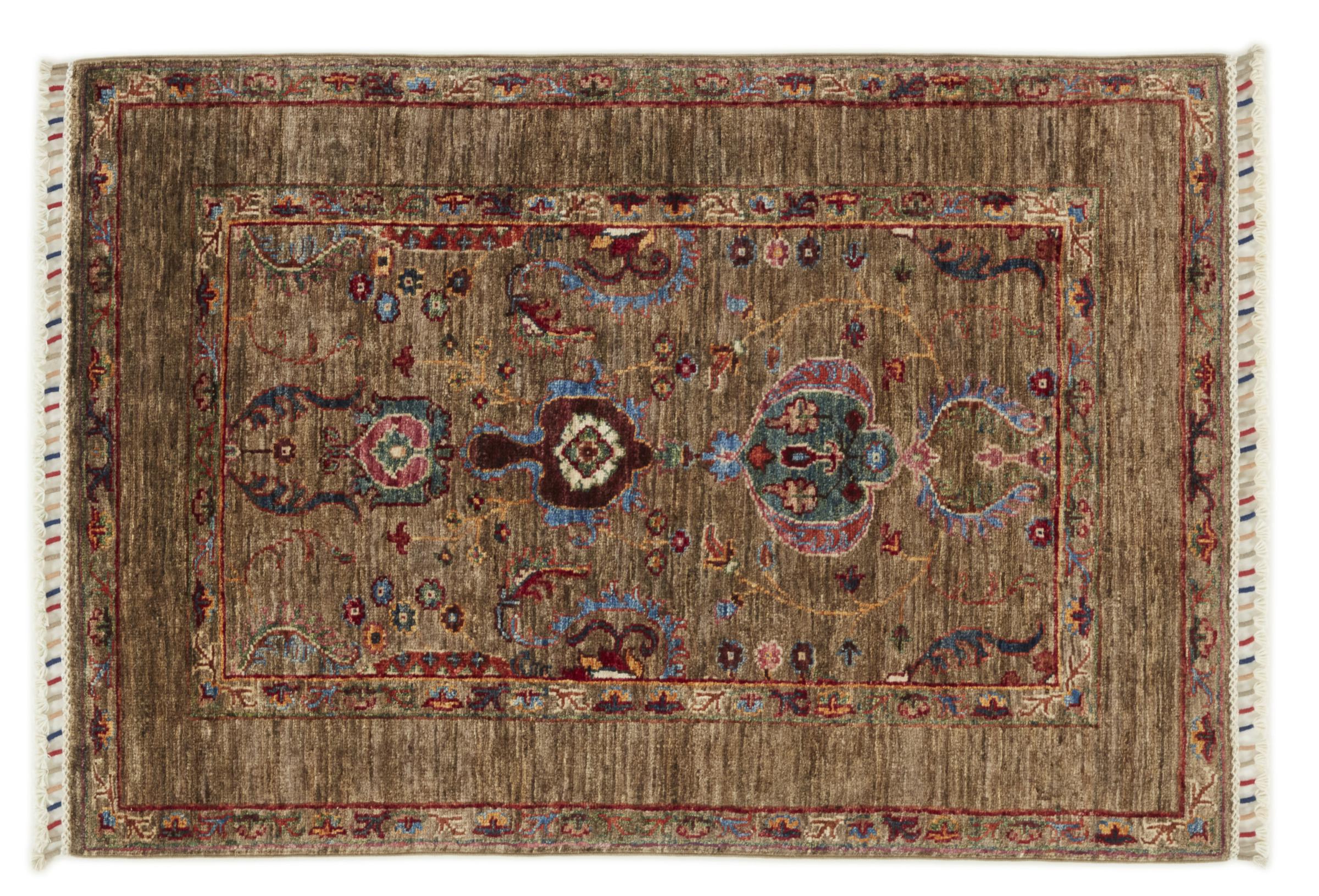 Alfombra número: 312387003056672 Tamaño: 114x78 cm Espesor: alrededor de 6 mm Nudos: 160 000 - 200 000 / m² Elaboración: Anudado a mano Crespón: Lana hilada a mano Urdimbre: Algodón Origen: Pakistán Edad: Nuevo Peso: alrededor de 3 kg También conocido como Ariana Cantidad en stock: Única - Solo 1 en stock