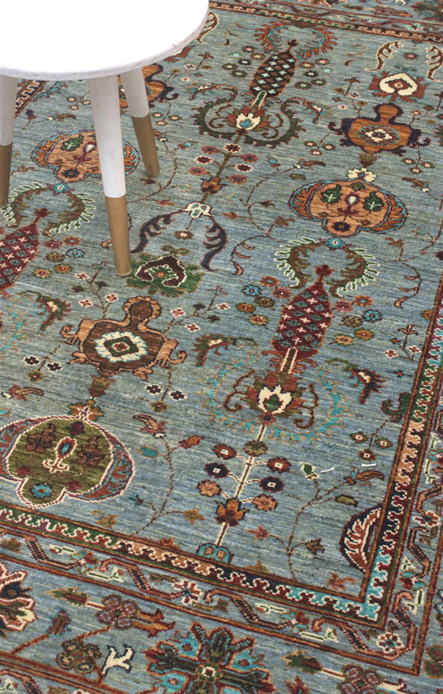 Esta alfombra está hecha de lana de oveja hilada a mano de la más alta calidad. Especialmente en Irán (antigua Persia), la lana de Afganistán y Pakistán sigue siendo hilada a mano antes de que comience el anudado de la alfombra. La lana ha demostrado ser un material natural y extremadamente resistente a lo largo de los siglos. Entre otras cosas, tiene propiedades repelentes de la suciedad y aislantes del calor. Al mismo tiempo, la lana es incomparablemente suave y tiene un brillo natural.
