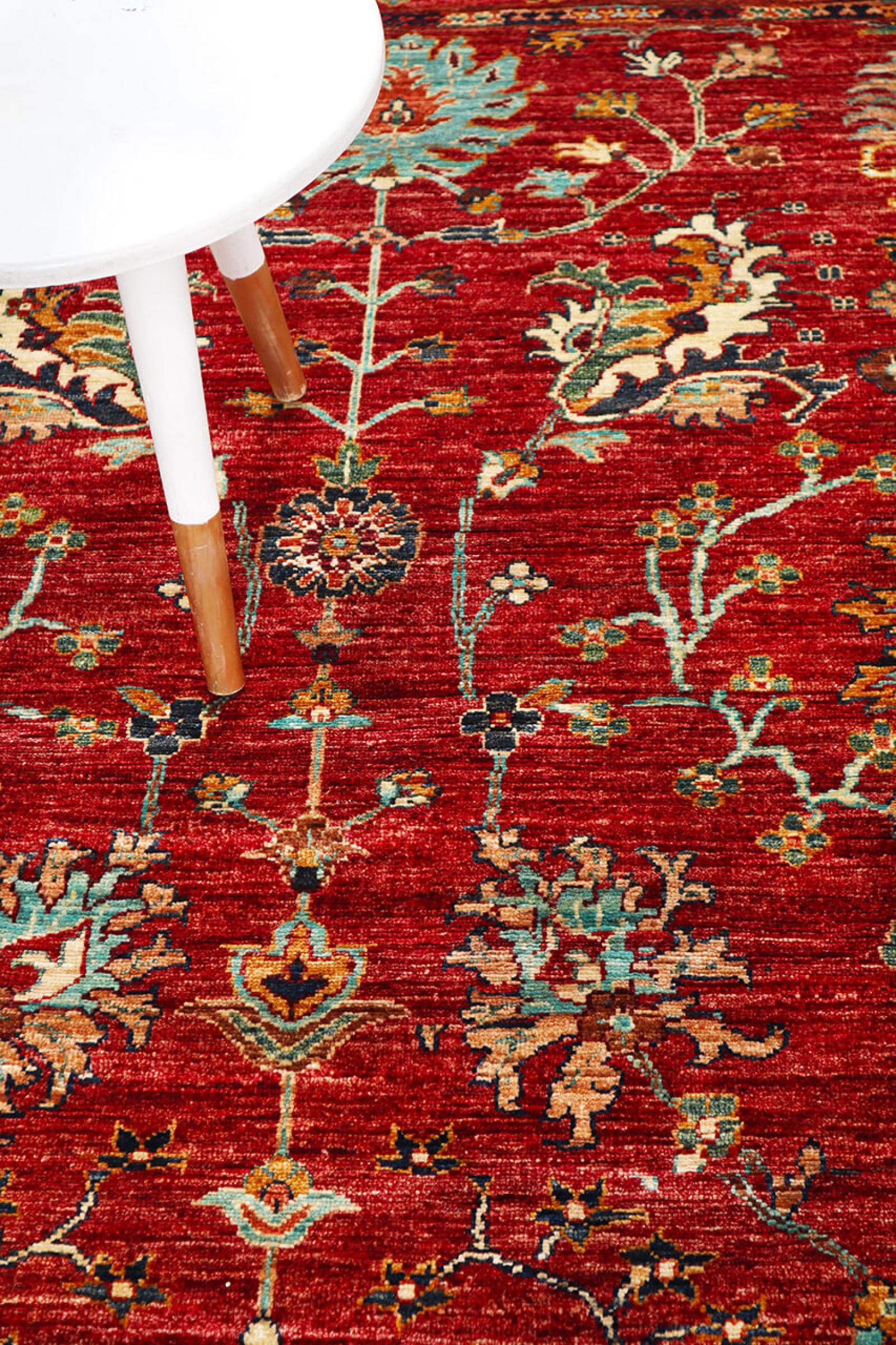 Esta alfombra está hecha de lana de oveja hilada a mano de la más alta calidad. Especialmente en Irán (antigua Persia), la lana de Afganistán y Pakistán sigue siendo hilada a mano antes de que comience el anudado de la alfombra. La lana ha demostrado ser un material natural y extremadamente resistente a lo largo de los siglos. Entre otras cosas, tiene propiedades repelentes de la suciedad y aislantes del calor. Al mismo tiempo, la lana es incomparablemente suave y tiene un brillo natural.