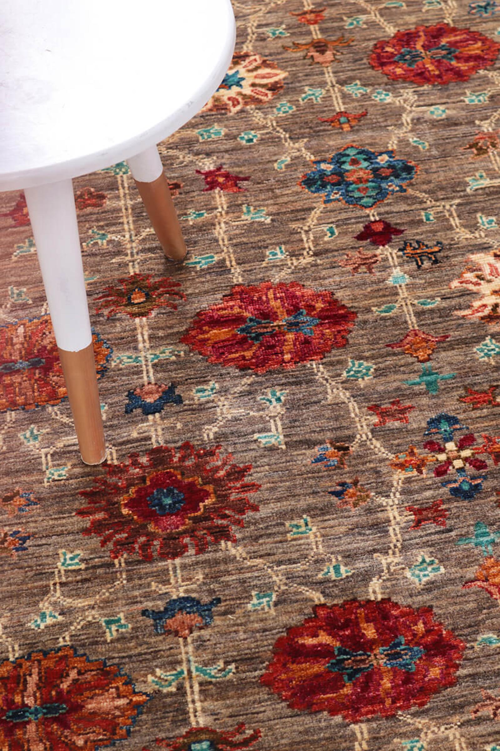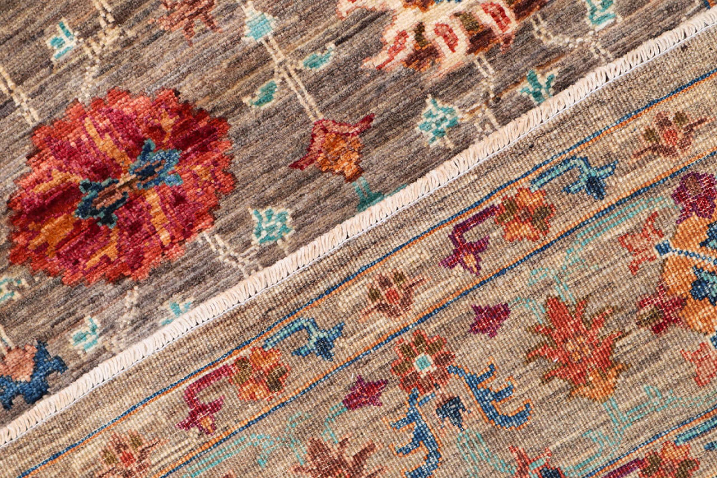 Esta alfombra está hecha de lana de oveja hilada a mano de la más alta calidad. Especialmente en Irán (antigua Persia), la lana de Afganistán y Pakistán sigue siendo hilada a mano antes de que comience el anudado de la alfombra. La lana ha demostrado ser un material natural y extremadamente resistente a lo largo de los siglos. Entre otras cosas, tiene propiedades repelentes de la suciedad y aislantes del calor. Al mismo tiempo, la lana es incomparablemente suave y tiene un brillo natural.