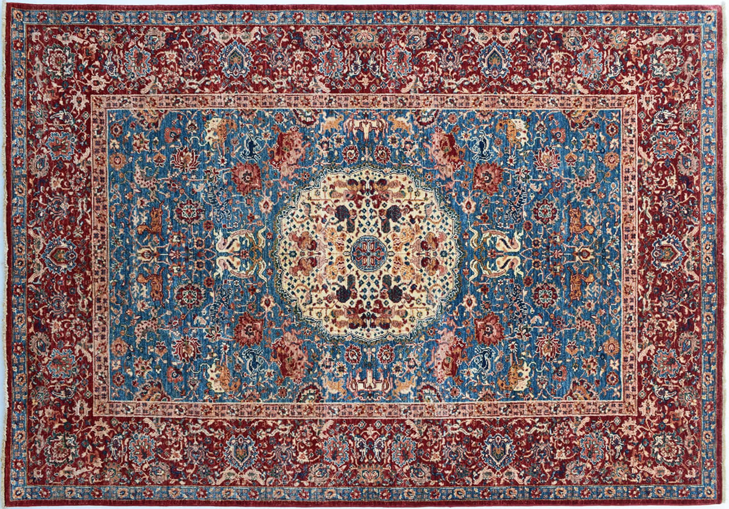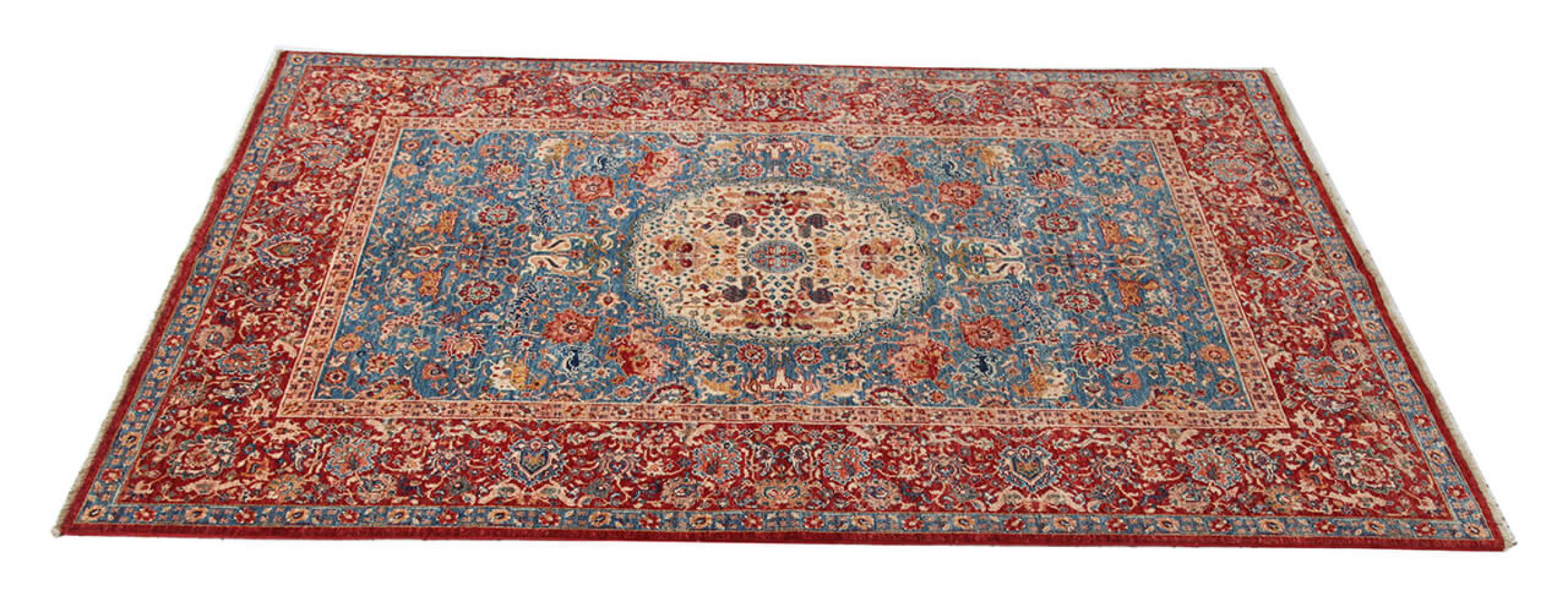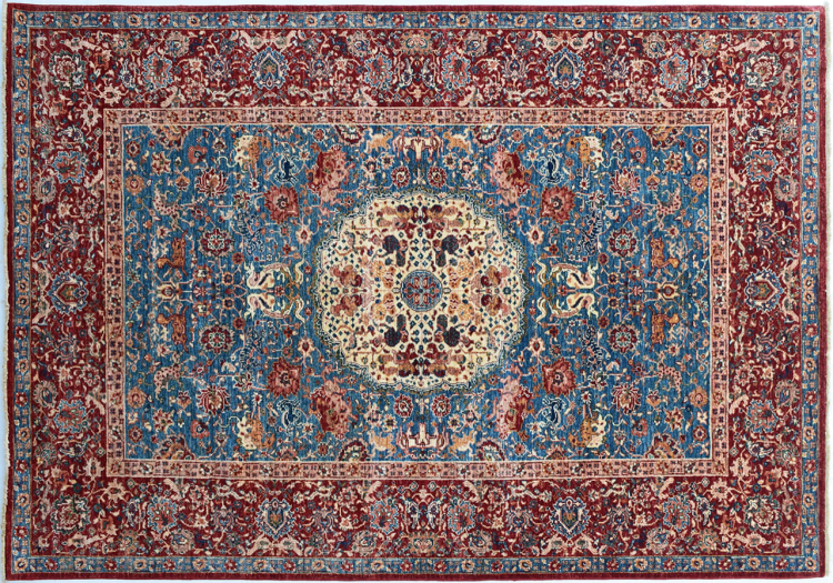 Esta alfombra está hecha de lana de oveja hilada a mano de la más alta calidad. Especialmente en Irán (antigua Persia), la lana de Afganistán y Pakistán sigue siendo hilada a mano antes de que comience el anudado de la alfombra. La lana ha demostrado ser un material natural y extremadamente resistente a lo largo de los siglos. Entre otras cosas, tiene propiedades repelentes de la suciedad y aislantes del calor. Al mismo tiempo, la lana es incomparablemente suave y tiene un brillo natural.