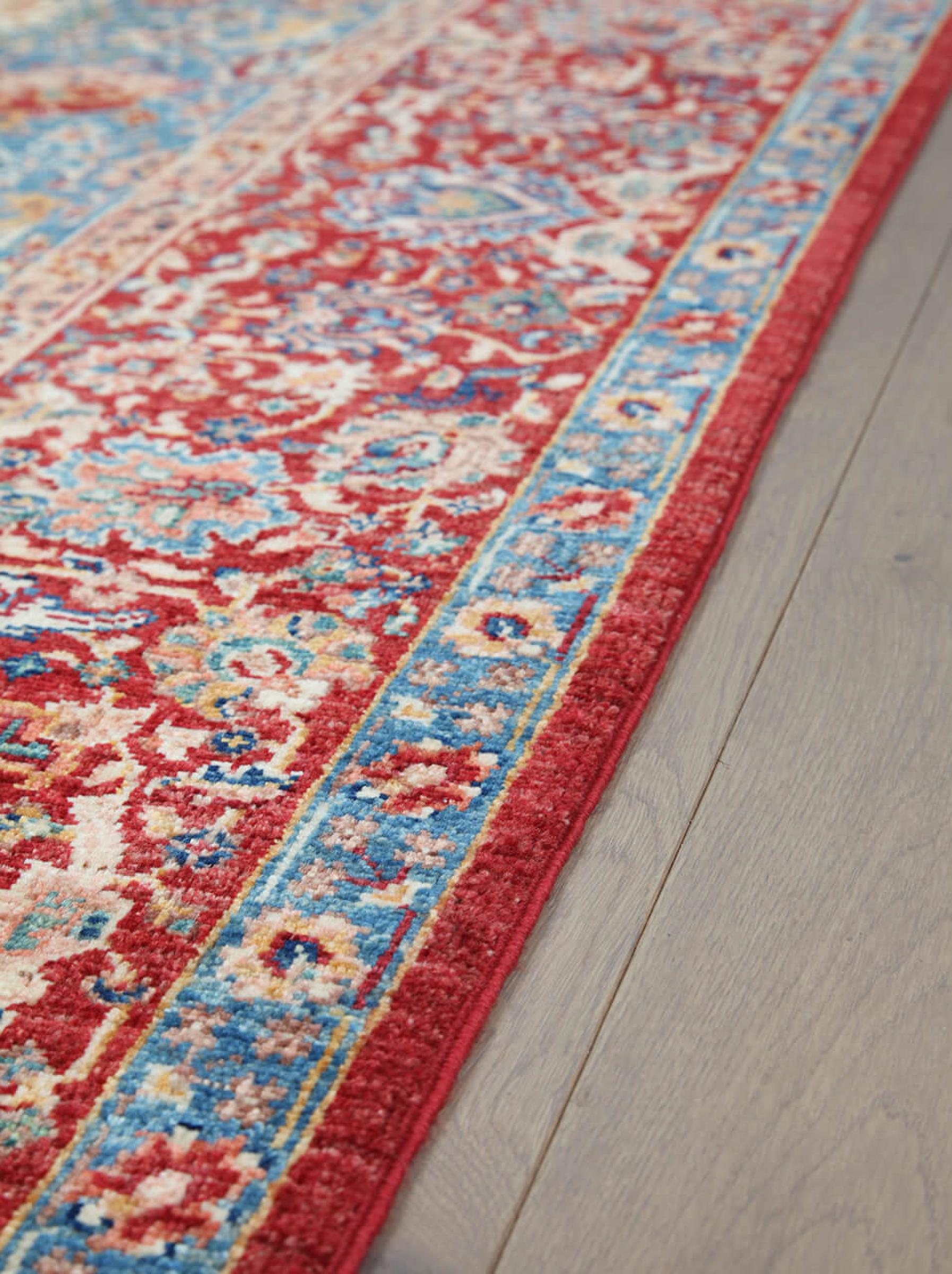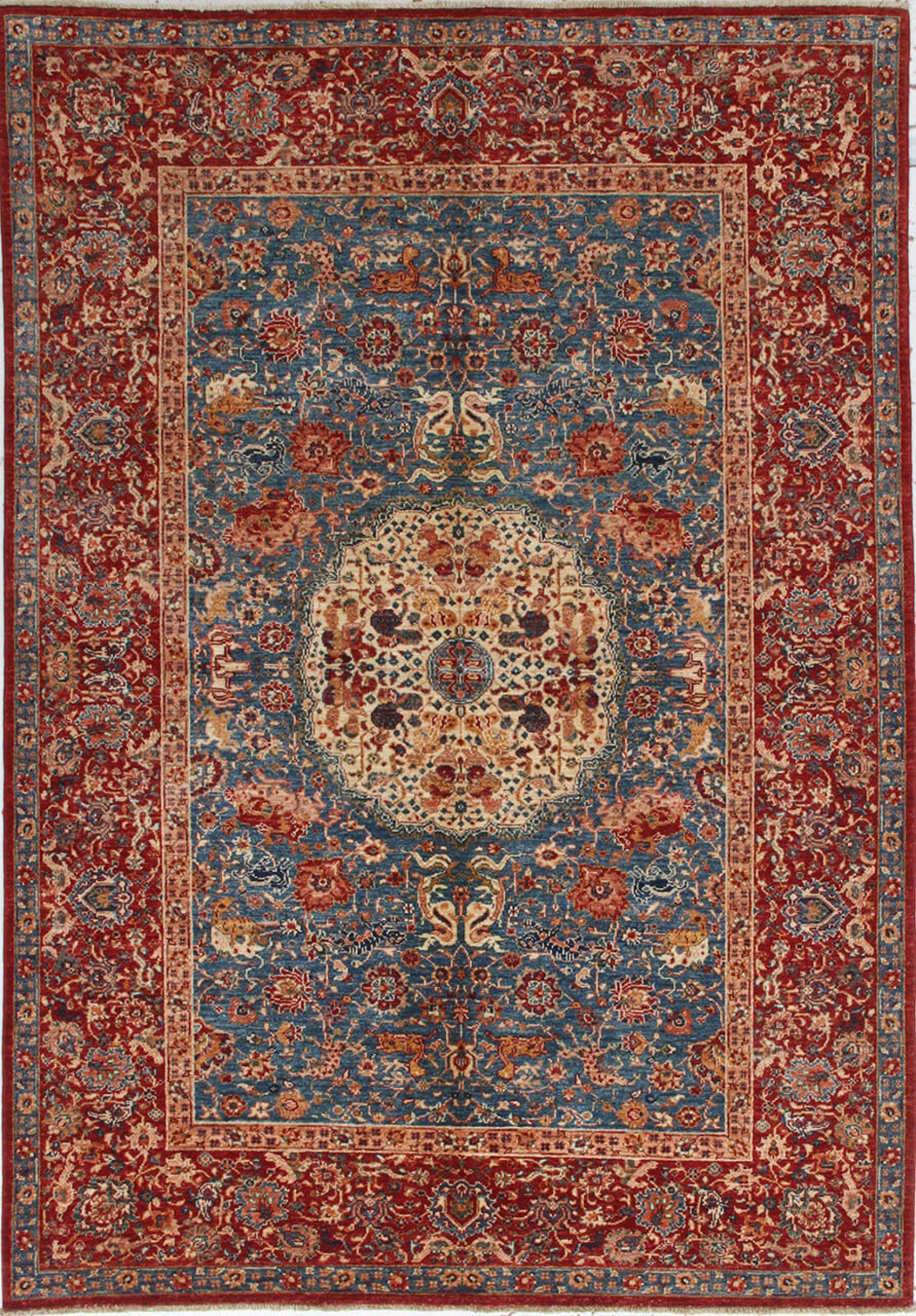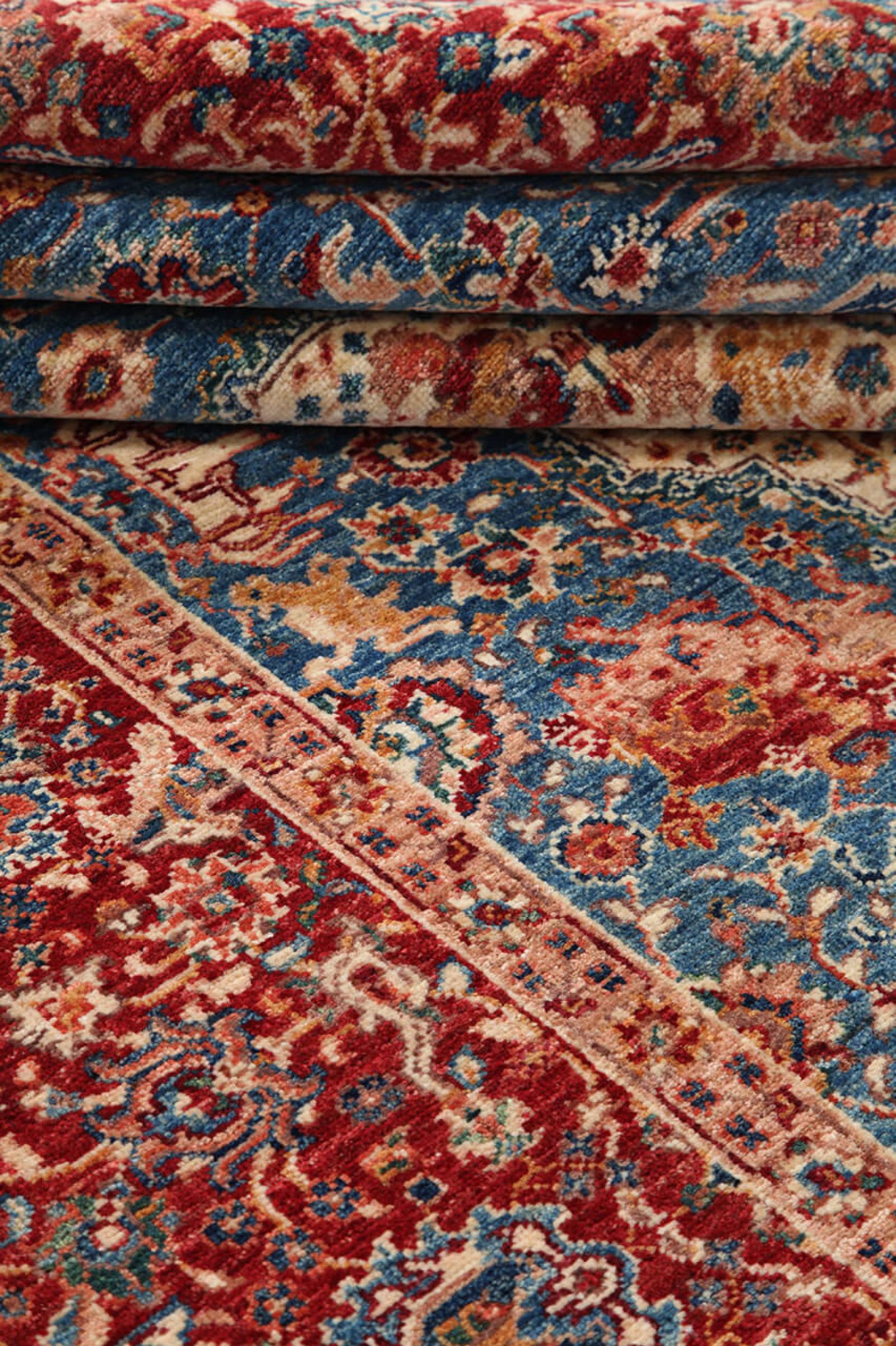 Esta alfombra está hecha de lana de oveja hilada a mano de la más alta calidad. Especialmente en Irán (antigua Persia), la lana de Afganistán y Pakistán sigue siendo hilada a mano antes de que comience el anudado de la alfombra. La lana ha demostrado ser un material natural y extremadamente resistente a lo largo de los siglos. Entre otras cosas, tiene propiedades repelentes de la suciedad y aislantes del calor. Al mismo tiempo, la lana es incomparablemente suave y tiene un brillo natural.