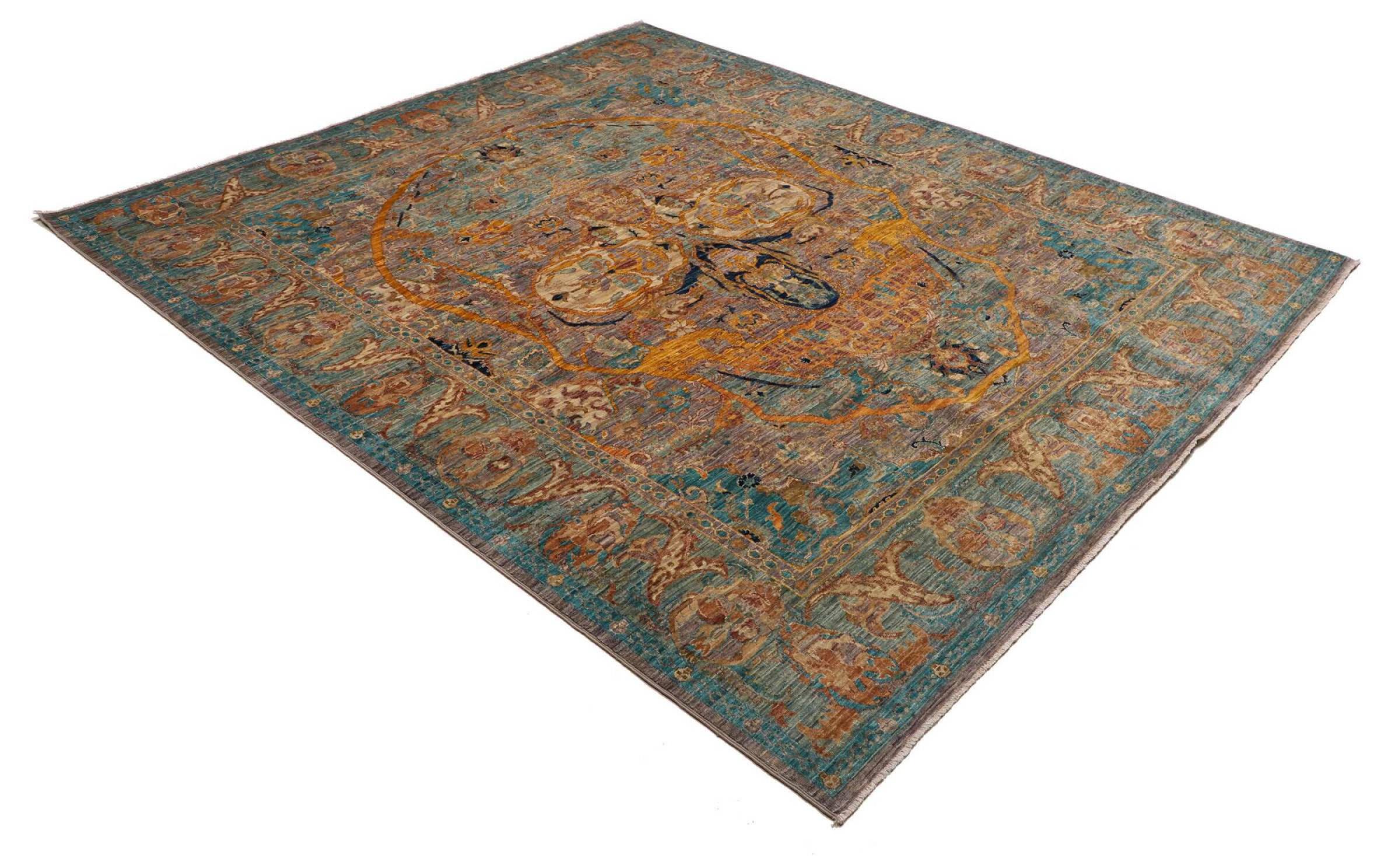 Esta alfombra está hecha de lana de oveja hilada a mano de la más alta calidad. Especialmente en Irán (antigua Persia), la lana de Afganistán y Pakistán sigue siendo hilada a mano antes de que comience el anudado de la alfombra. La lana ha demostrado ser un material natural y extremadamente resistente a lo largo de los siglos. Entre otras cosas, tiene propiedades repelentes de la suciedad y aislantes del calor. Al mismo tiempo, la lana es incomparablemente suave y tiene un brillo natural.