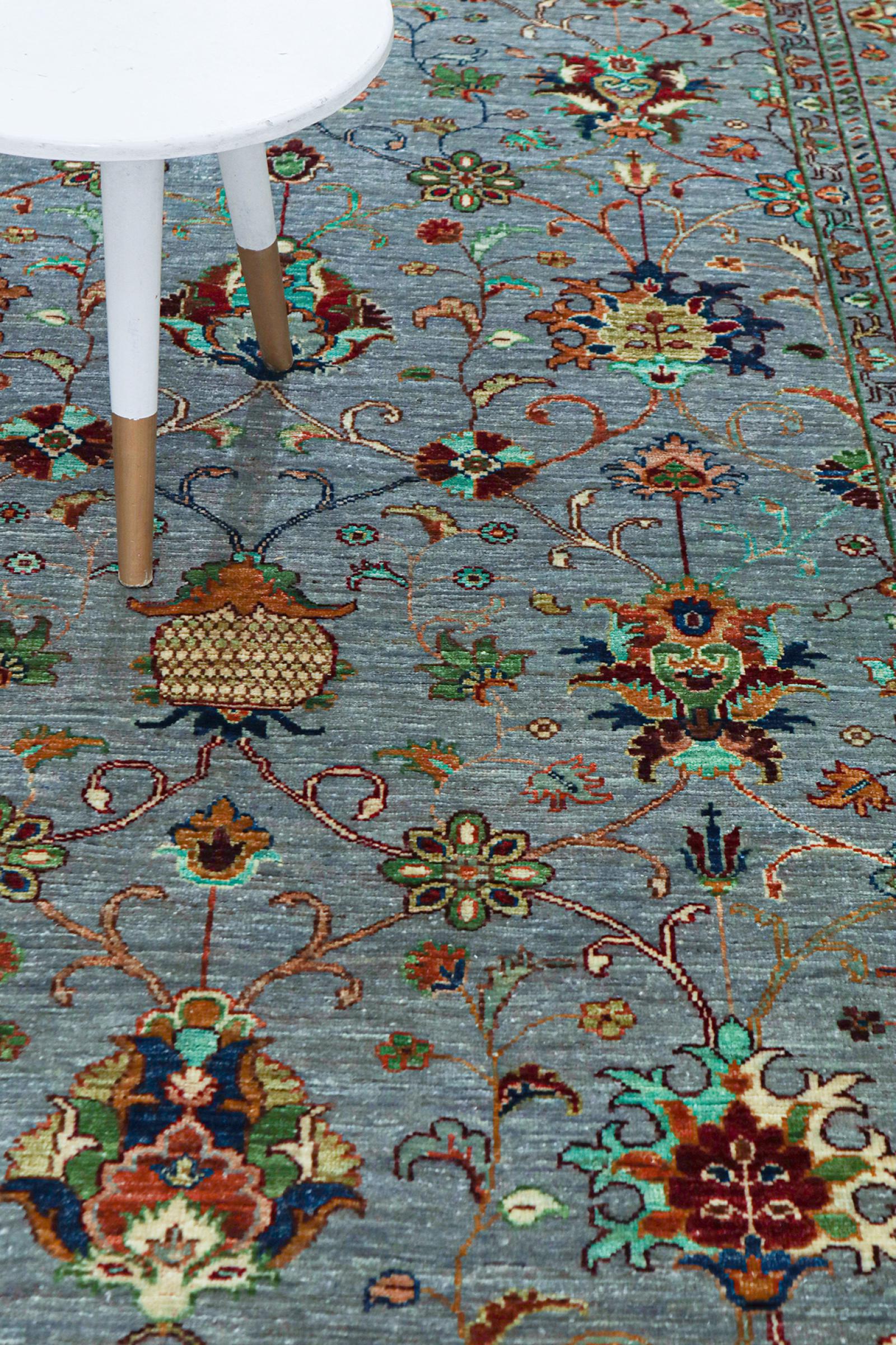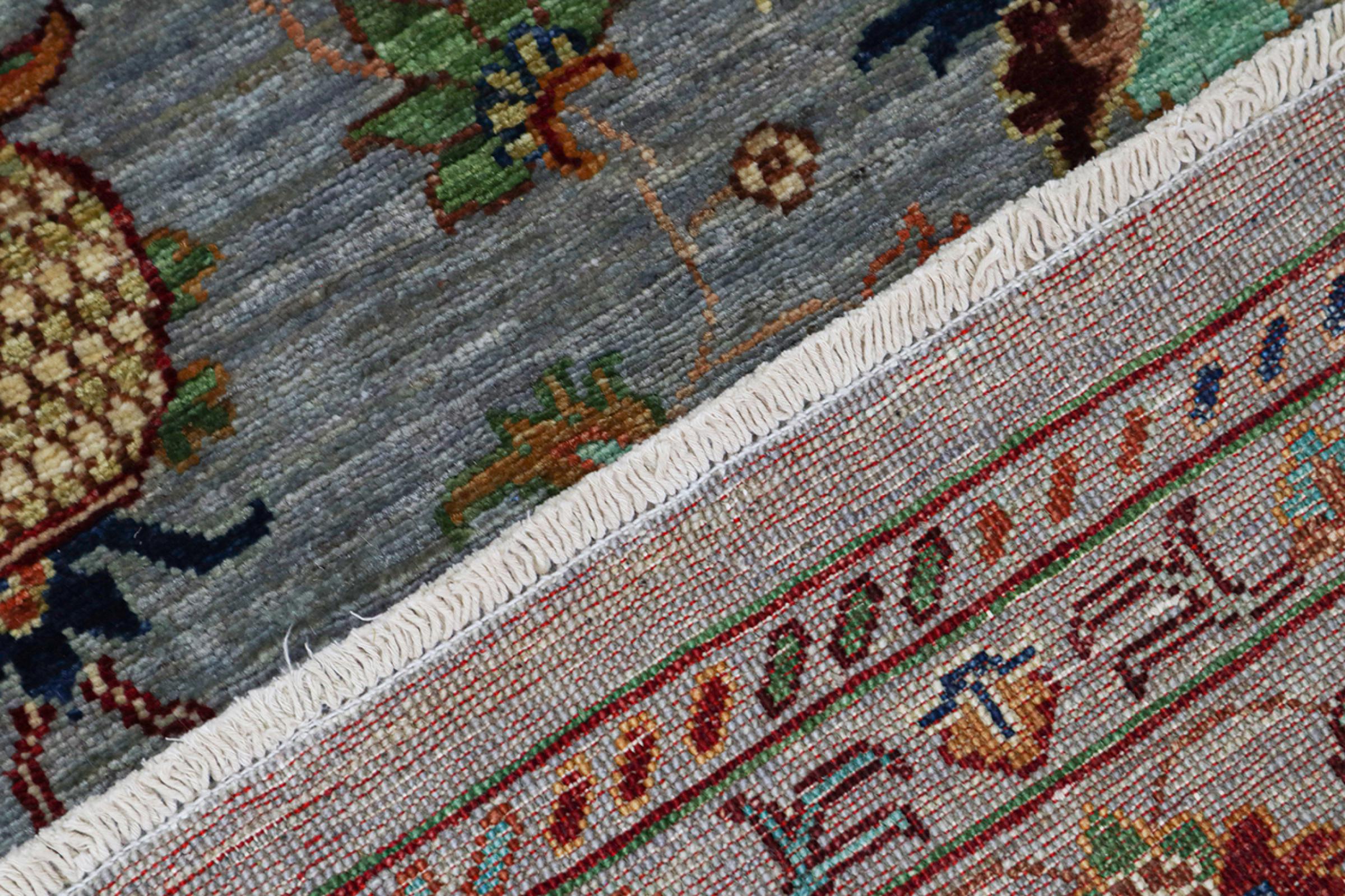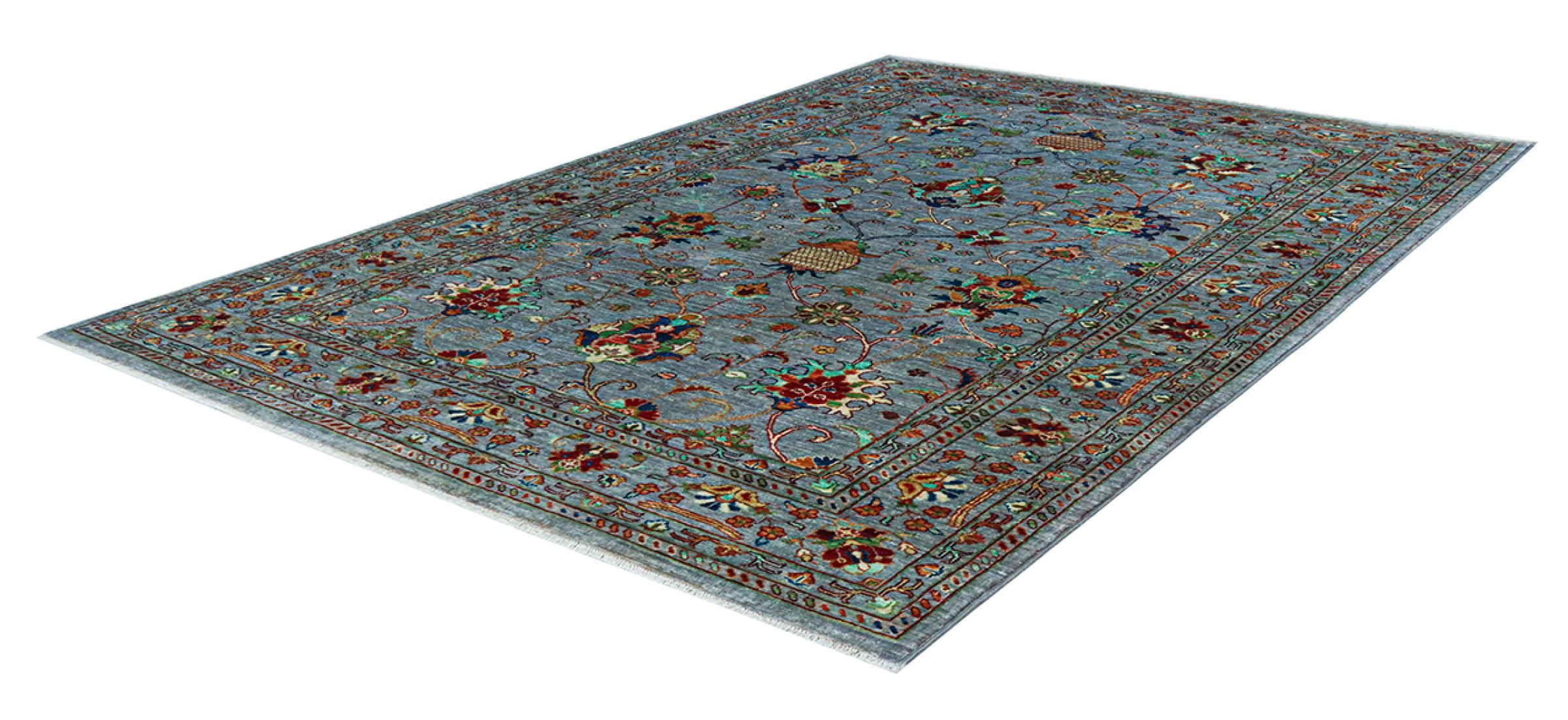 Esta alfombra está hecha de lana de oveja hilada a mano de la más alta calidad. Especialmente en Irán (antigua Persia), la lana de Afganistán y Pakistán sigue siendo hilada a mano antes de que comience el anudado de la alfombra. La lana ha demostrado ser un material natural y extremadamente resistente a lo largo de los siglos. Entre otras cosas, tiene propiedades repelentes de la suciedad y aislantes del calor. Al mismo tiempo, la lana es incomparablemente suave y tiene un brillo natural.