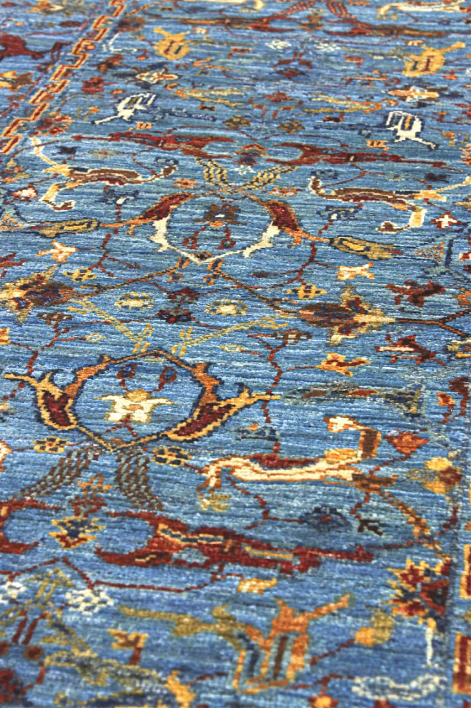 Esta alfombra está hecha de lana de oveja hilada a mano de la más alta calidad. Especialmente en Irán (antigua Persia), la lana de Afganistán y Pakistán sigue siendo hilada a mano antes de que comience el anudado de la alfombra. La lana ha demostrado ser un material natural y extremadamente resistente a lo largo de los siglos. Entre otras cosas, tiene propiedades repelentes de la suciedad y aislantes del calor. Al mismo tiempo, la lana es incomparablemente suave y tiene un brillo natural.