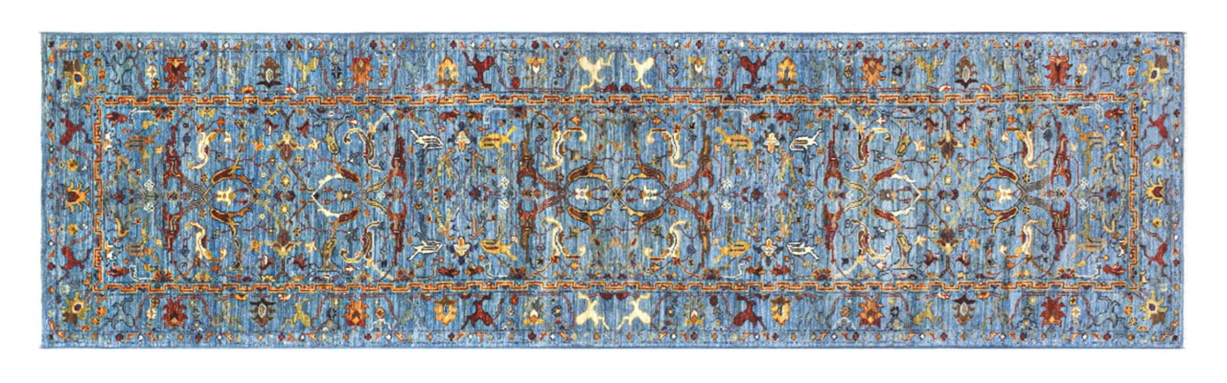 Alfombra número: 315963009624145 Tamaño: 296x78 cm Espesor: alrededor de 6 mm Nudos: 128 000 - 160 000 / m² Elaboración: Anudado a mano Crespón: Lana hilada a mano Urdimbre: Algodón Origen: Pakistán Edad: Nuevo Peso: alrededor de 8 kg También conocido como Ariana Cantidad en stock: Única - Solo 1 en stock