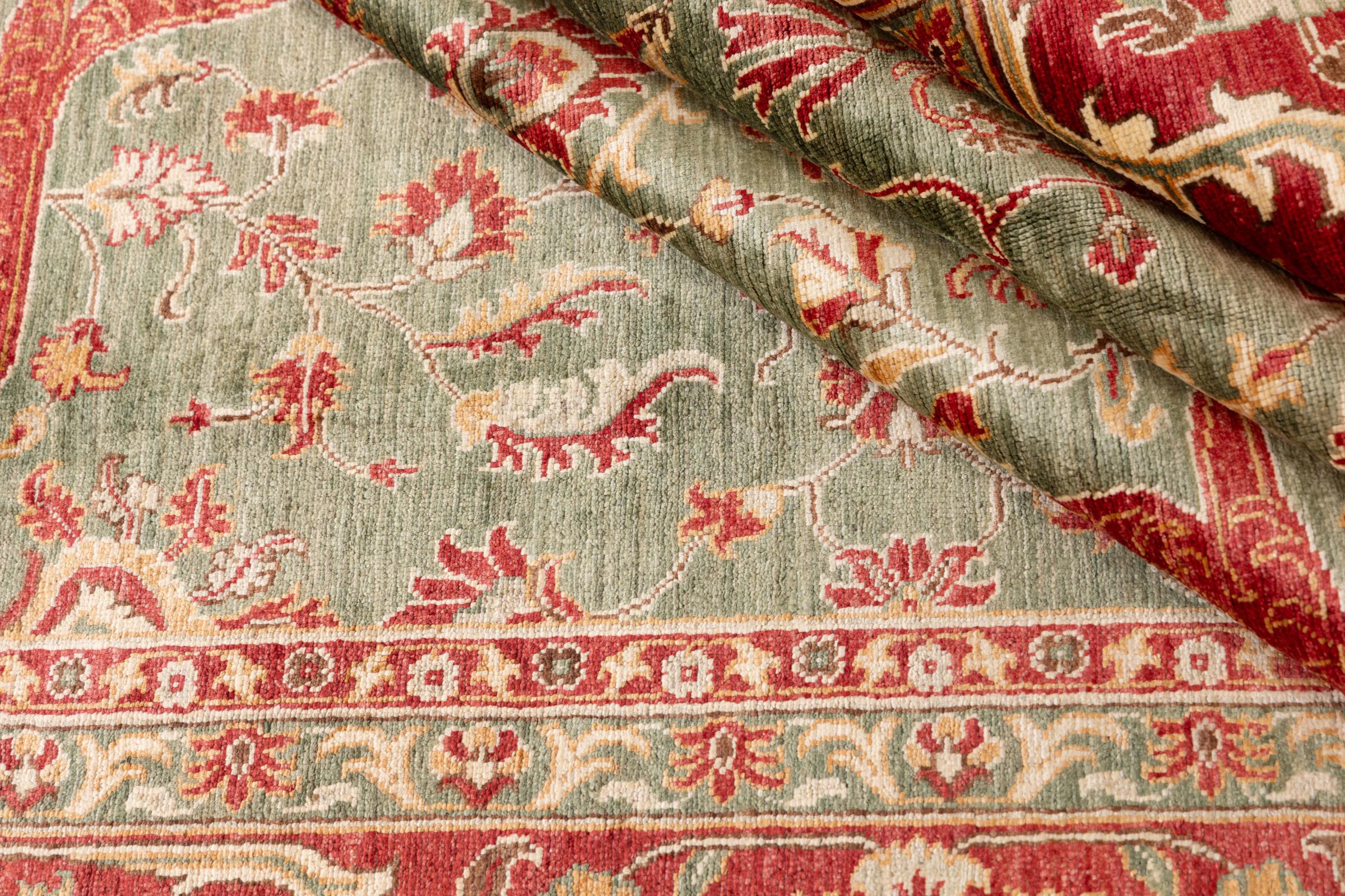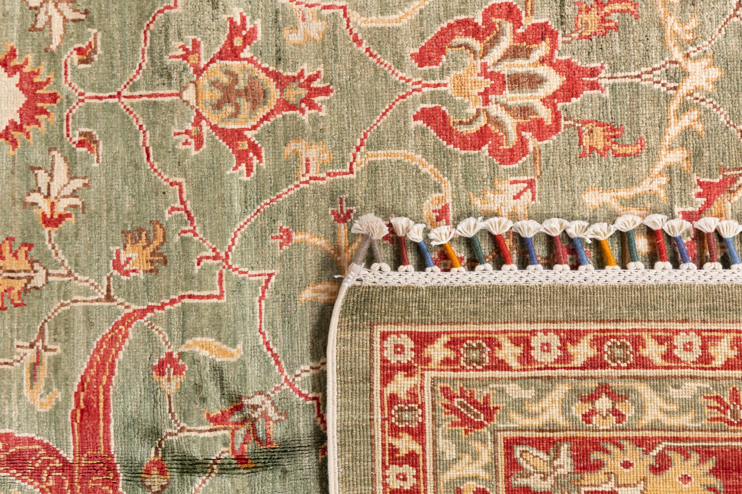 Esta alfombra está hecha de lana de oveja hilada a mano de la más alta calidad. Especialmente en Irán (antigua Persia), la lana de Afganistán y Pakistán sigue siendo hilada a mano antes de que comience el anudado de la alfombra. La lana ha demostrado ser un material natural y extremadamente resistente a lo largo de los siglos. Entre otras cosas, tiene propiedades repelentes de la suciedad y aislantes del calor. Al mismo tiempo, la lana es incomparablemente suave y tiene un brillo natural.