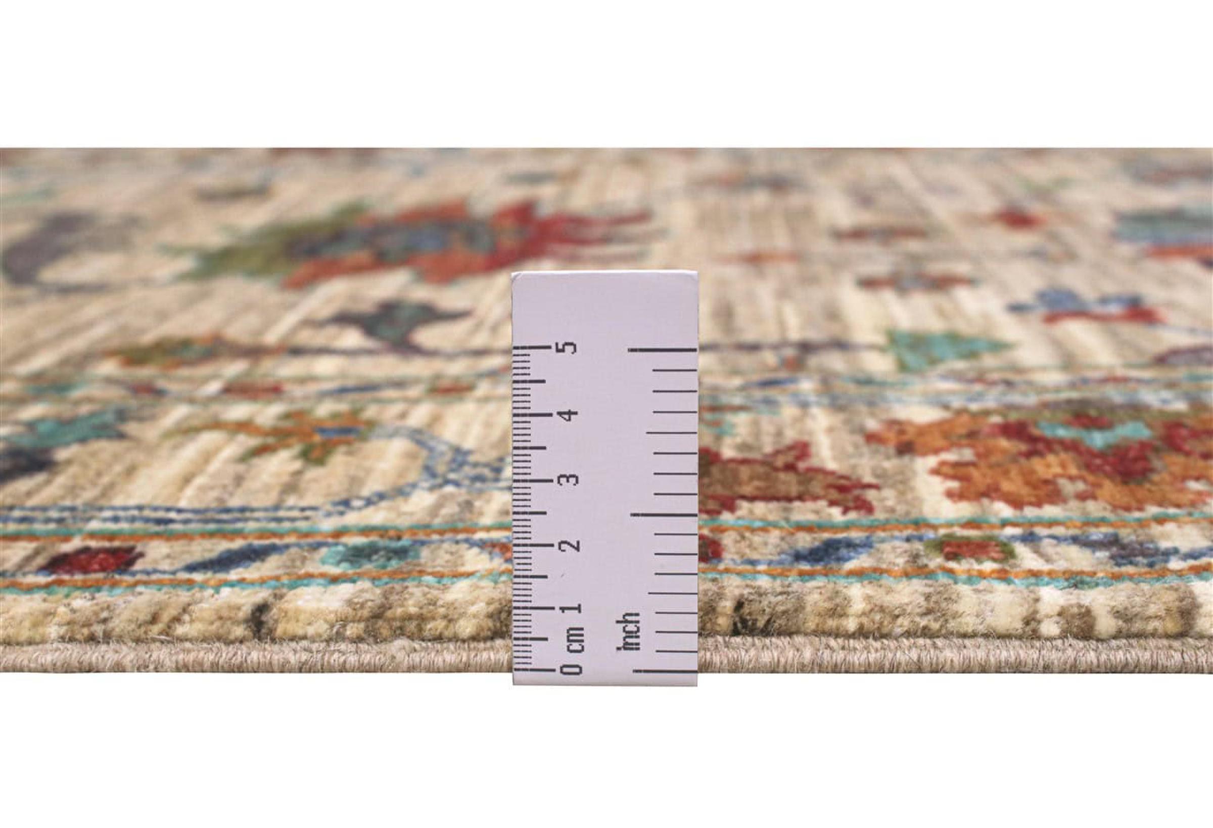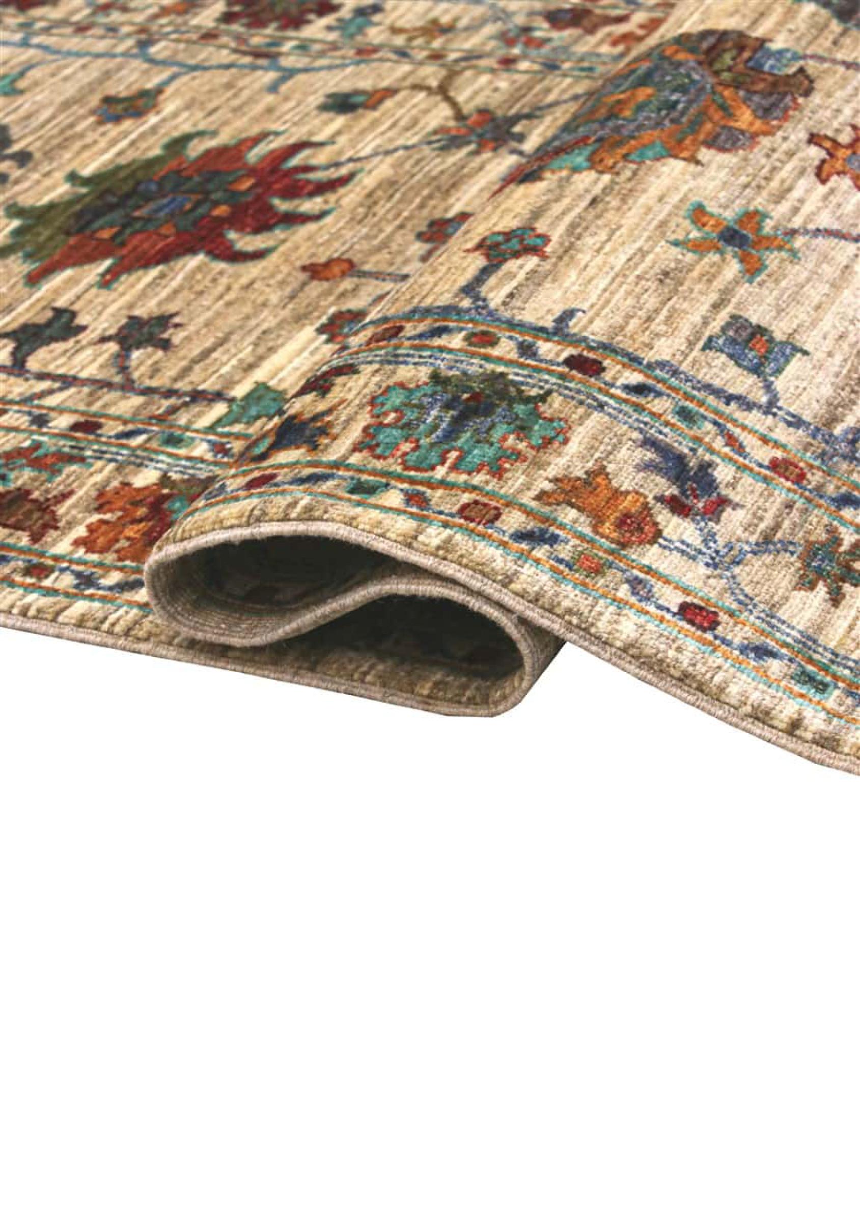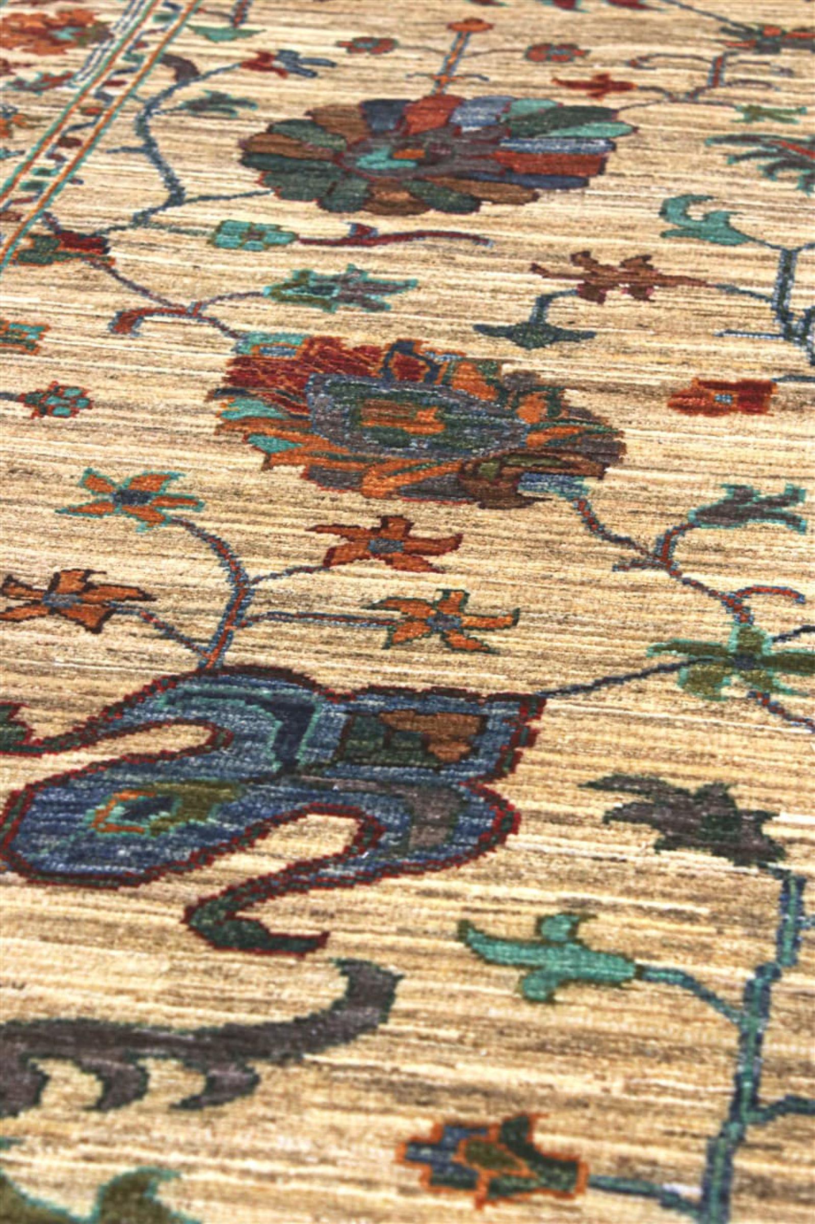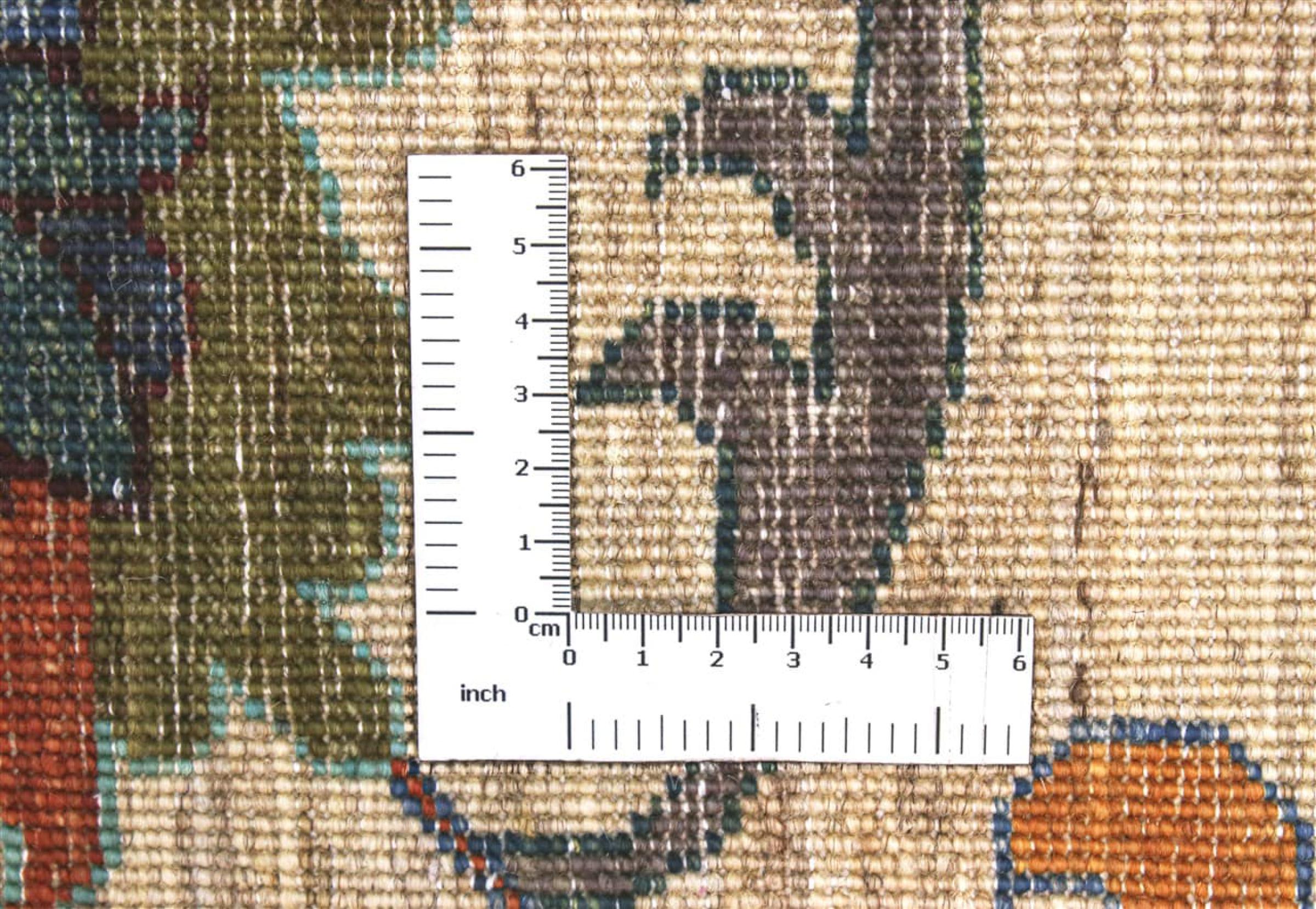 Esta alfombra está hecha de lana de oveja hilada a mano de la más alta calidad. Especialmente en Irán (antigua Persia), la lana de Afganistán y Pakistán sigue siendo hilada a mano antes de que comience el anudado de la alfombra. La lana ha demostrado ser un material natural y extremadamente resistente a lo largo de los siglos. Entre otras cosas, tiene propiedades repelentes de la suciedad y aislantes del calor. Al mismo tiempo, la lana es incomparablemente suave y tiene un brillo natural.