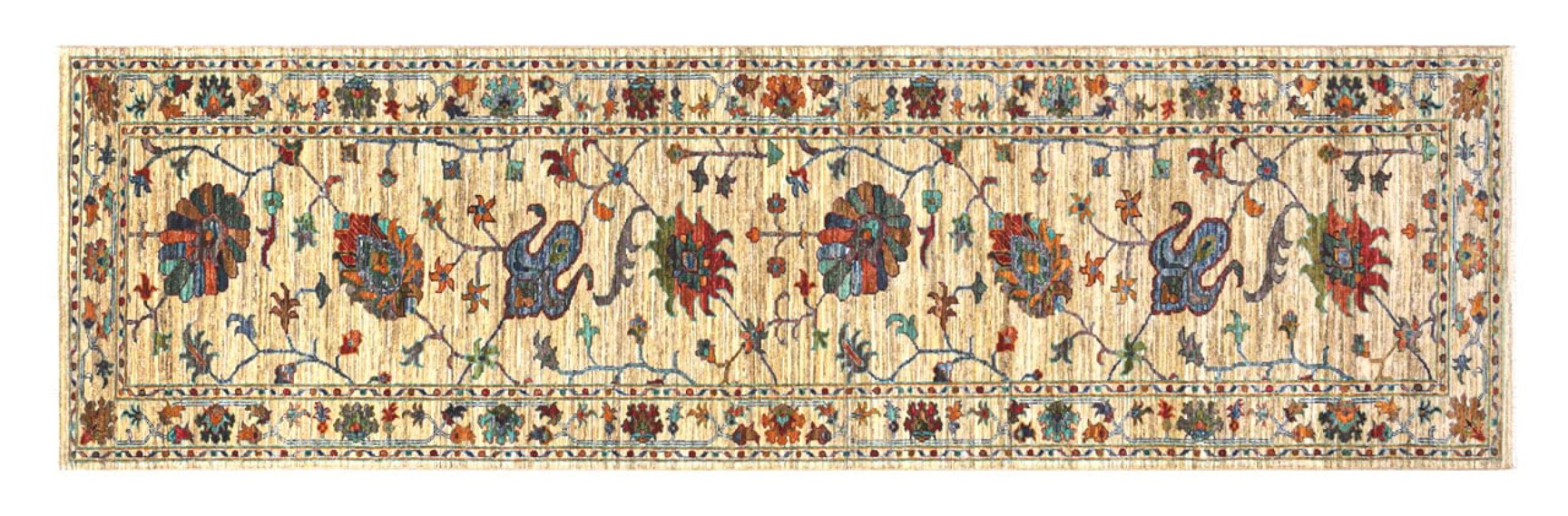 Alfombra número: 315968009528012 Tamaño: 303x84 cm Espesor: alrededor de 6 mm Nudos: 128 000 - 160 000 / m² Elaboración: Anudado a mano Crespón: Lana hilada a mano Urdimbre: Algodón Origen: Pakistán Edad: Nuevo Peso: alrededor de 9 kg También conocido como Ariana Cantidad en stock: Única - Solo 1 en stock