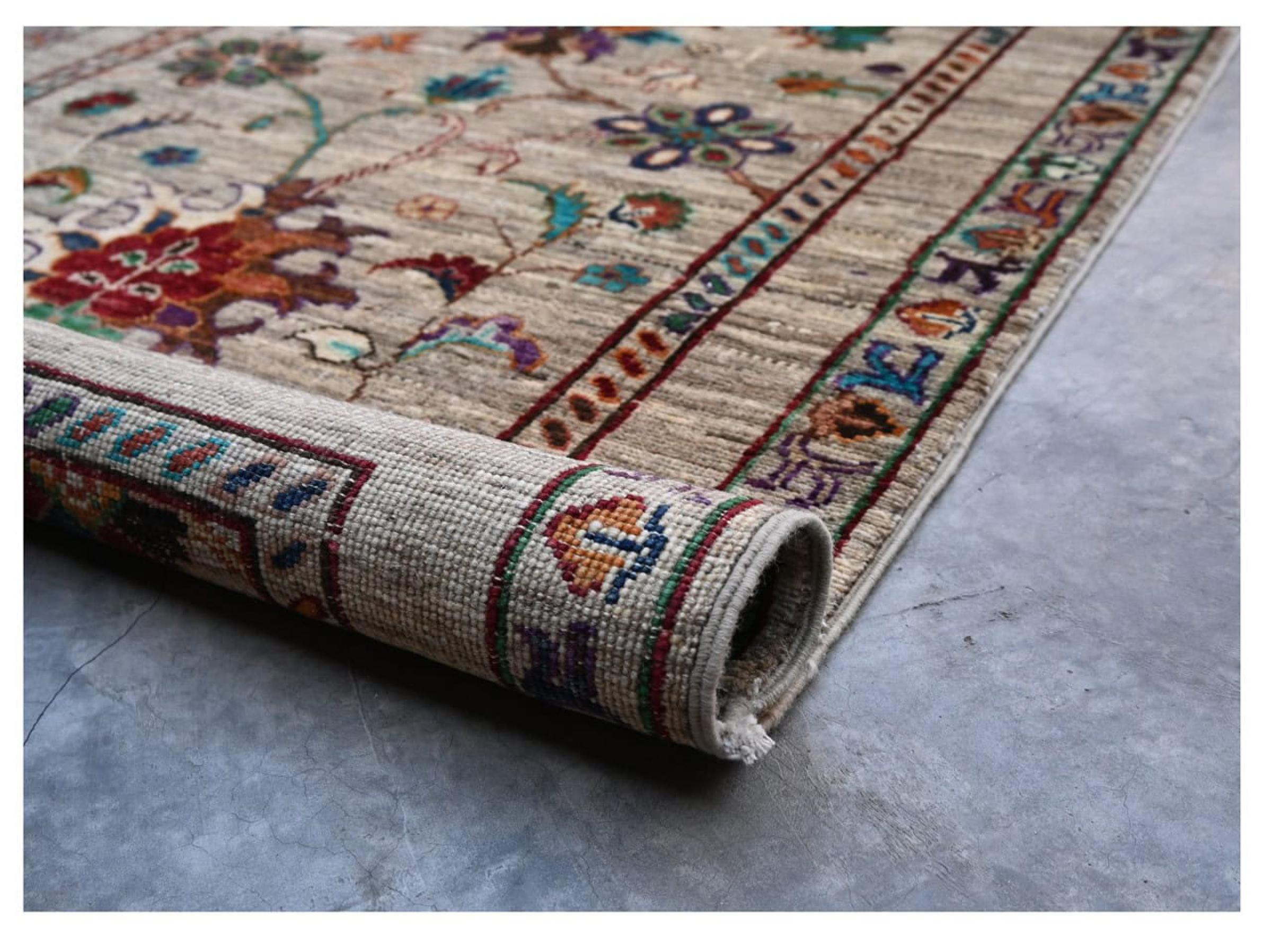Esta alfombra está hecha de lana de oveja hilada a mano de la más alta calidad. Especialmente en Irán (antigua Persia), la lana de Afganistán y Pakistán sigue siendo hilada a mano antes de que comience el anudado de la alfombra. La lana ha demostrado ser un material natural y extremadamente resistente a lo largo de los siglos. Entre otras cosas, tiene propiedades repelentes de la suciedad y aislantes del calor. Al mismo tiempo, la lana es incomparablemente suave y tiene un brillo natural.