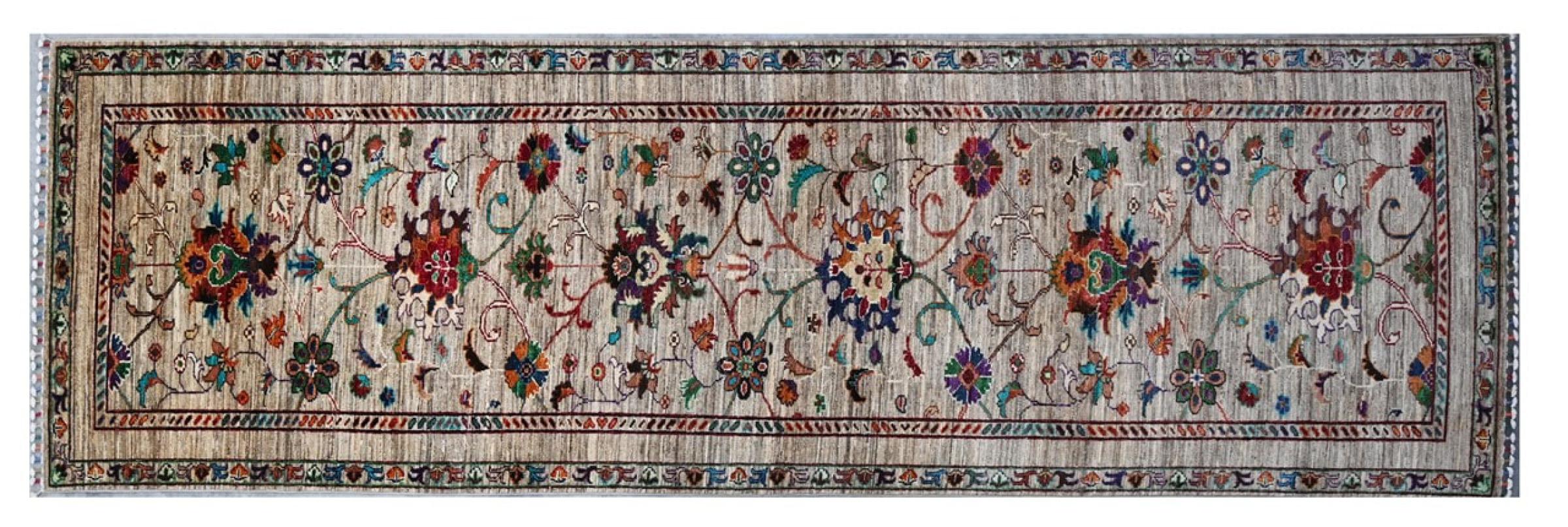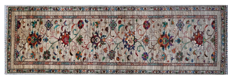 Alfombra número: 315311007534741 Tamaño: 307x84 cm Espesor: alrededor de 6 mm Nudos: 128 000 - 160 000 / m² Elaboración: Anudado a mano Crespón: Lana hilada a mano Urdimbre: Algodón Origen: Pakistán Edad: Nuevo Peso: alrededor de 9 kg También conocido como Ariana Cantidad en stock: Única - Solo 1 en stock