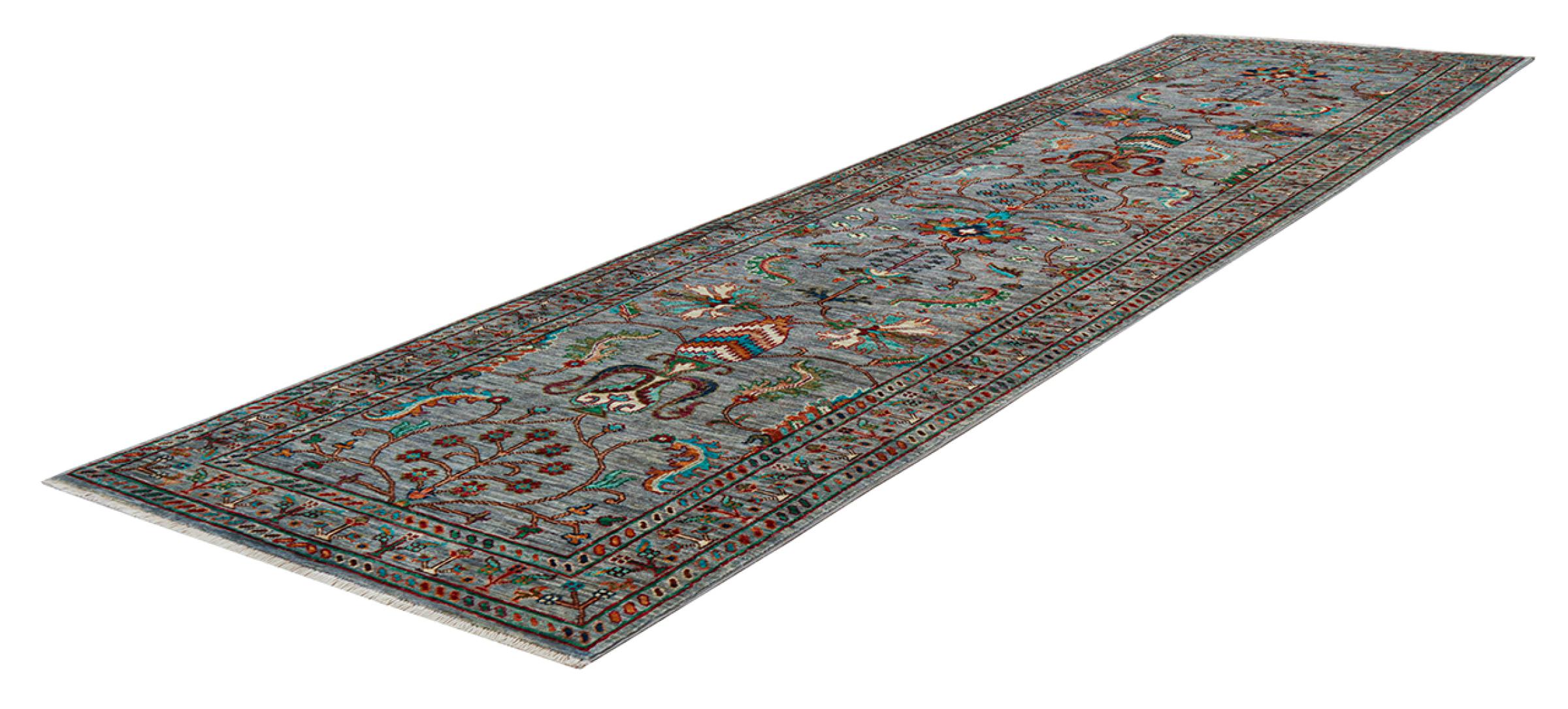 Alfombra número: 315337001642751 Tamaño: 315x84 cm Espesor: alrededor de 6 mm Nudos: 128 000 - 160 000 / m² Elaboración: Anudado a mano Crespón: Lana hilada a mano Urdimbre: Algodón Origen: Pakistán Edad: Nuevo Peso: alrededor de 9 kg También conocido como Ariana Cantidad en stock: Única - Solo 1 en stock