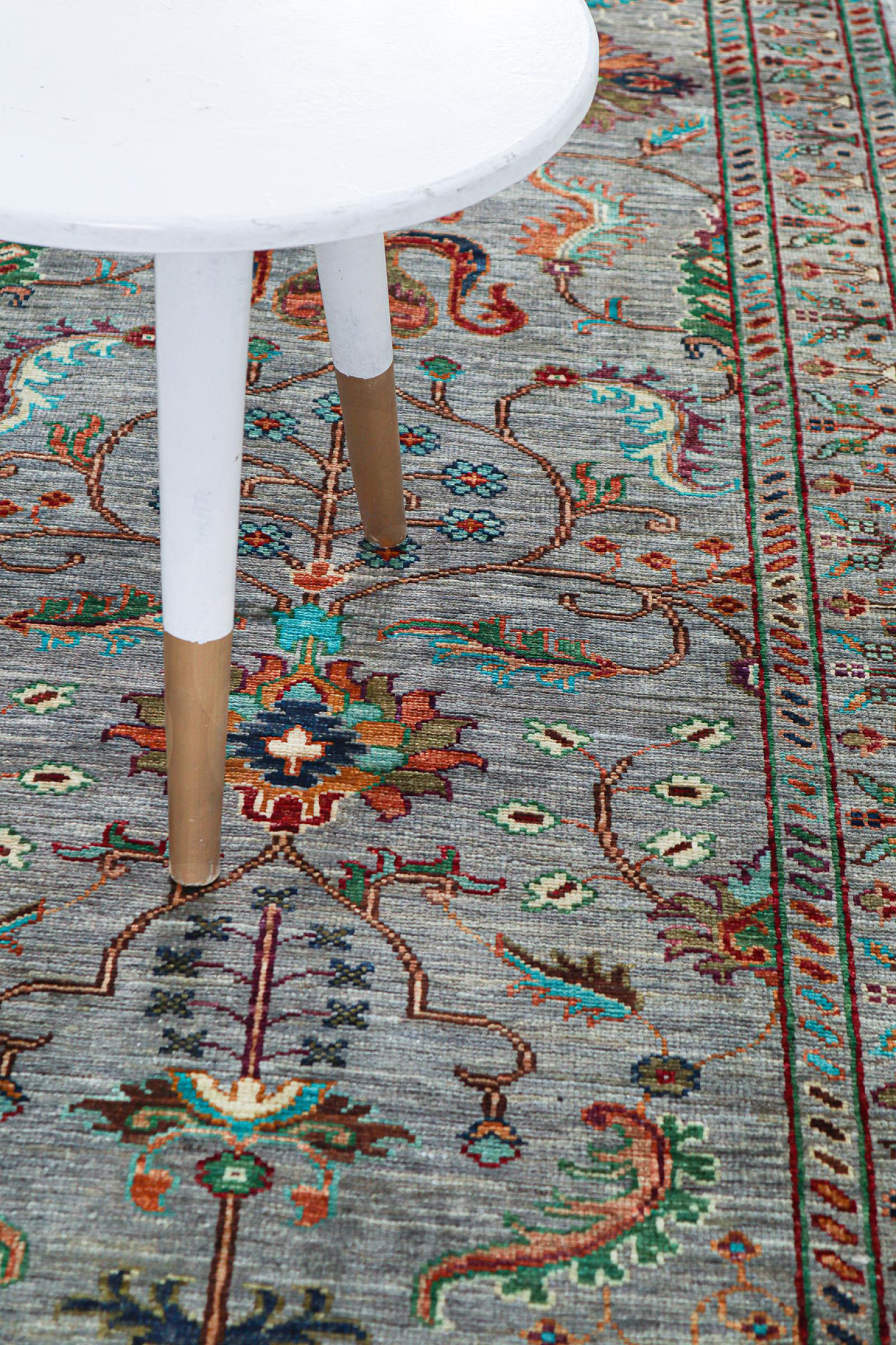 Esta alfombra está hecha de lana de oveja hilada a mano de la más alta calidad. Especialmente en Irán (antigua Persia), la lana de Afganistán y Pakistán sigue siendo hilada a mano antes de que comience el anudado de la alfombra. La lana ha demostrado ser un material natural y extremadamente resistente a lo largo de los siglos. Entre otras cosas, tiene propiedades repelentes de la suciedad y aislantes del calor. Al mismo tiempo, la lana es incomparablemente suave y tiene un brillo natural.