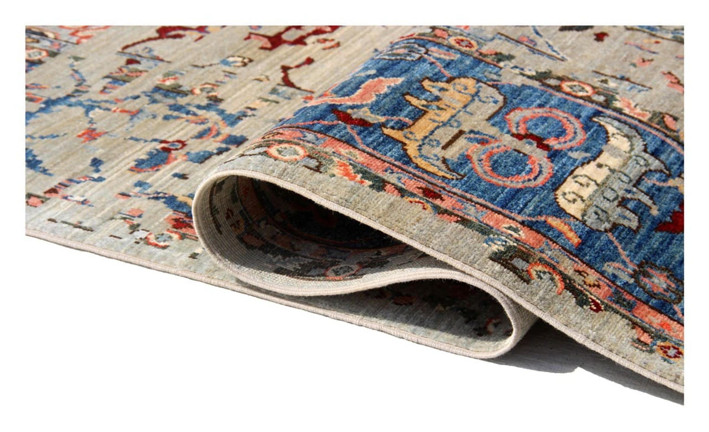 Esta alfombra está hecha de lana de oveja hilada a mano de la más alta calidad. Especialmente en Irán (antigua Persia), la lana de Afganistán y Pakistán sigue siendo hilada a mano antes de que comience el anudado de la alfombra. La lana ha demostrado ser un material natural y extremadamente resistente a lo largo de los siglos. Entre otras cosas, tiene propiedades repelentes de la suciedad y aislantes del calor. Al mismo tiempo, la lana es incomparablemente suave y tiene un brillo natural.