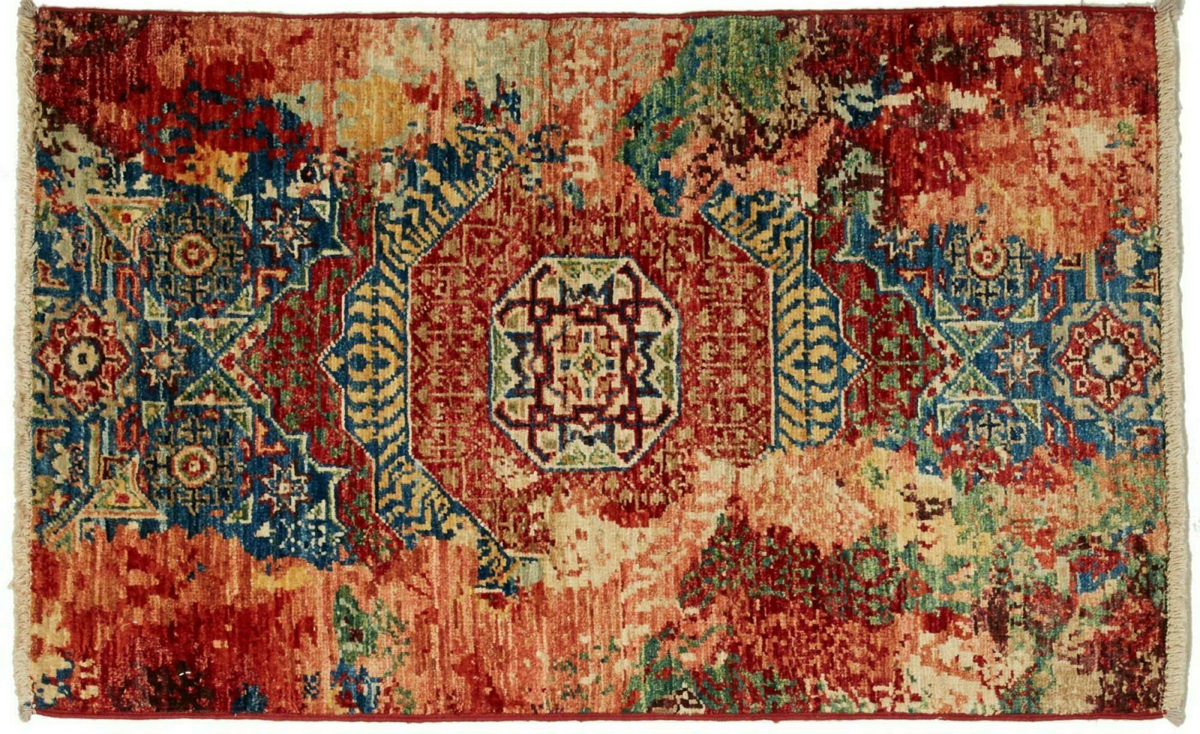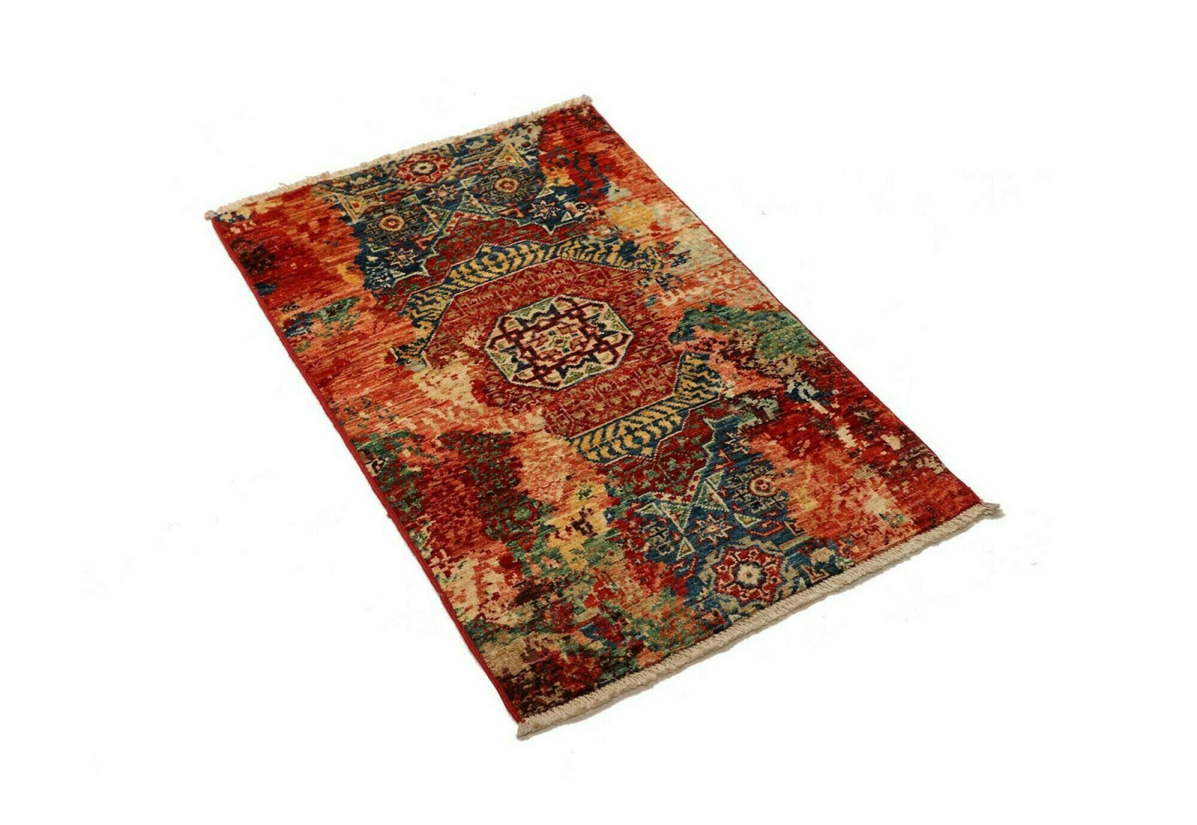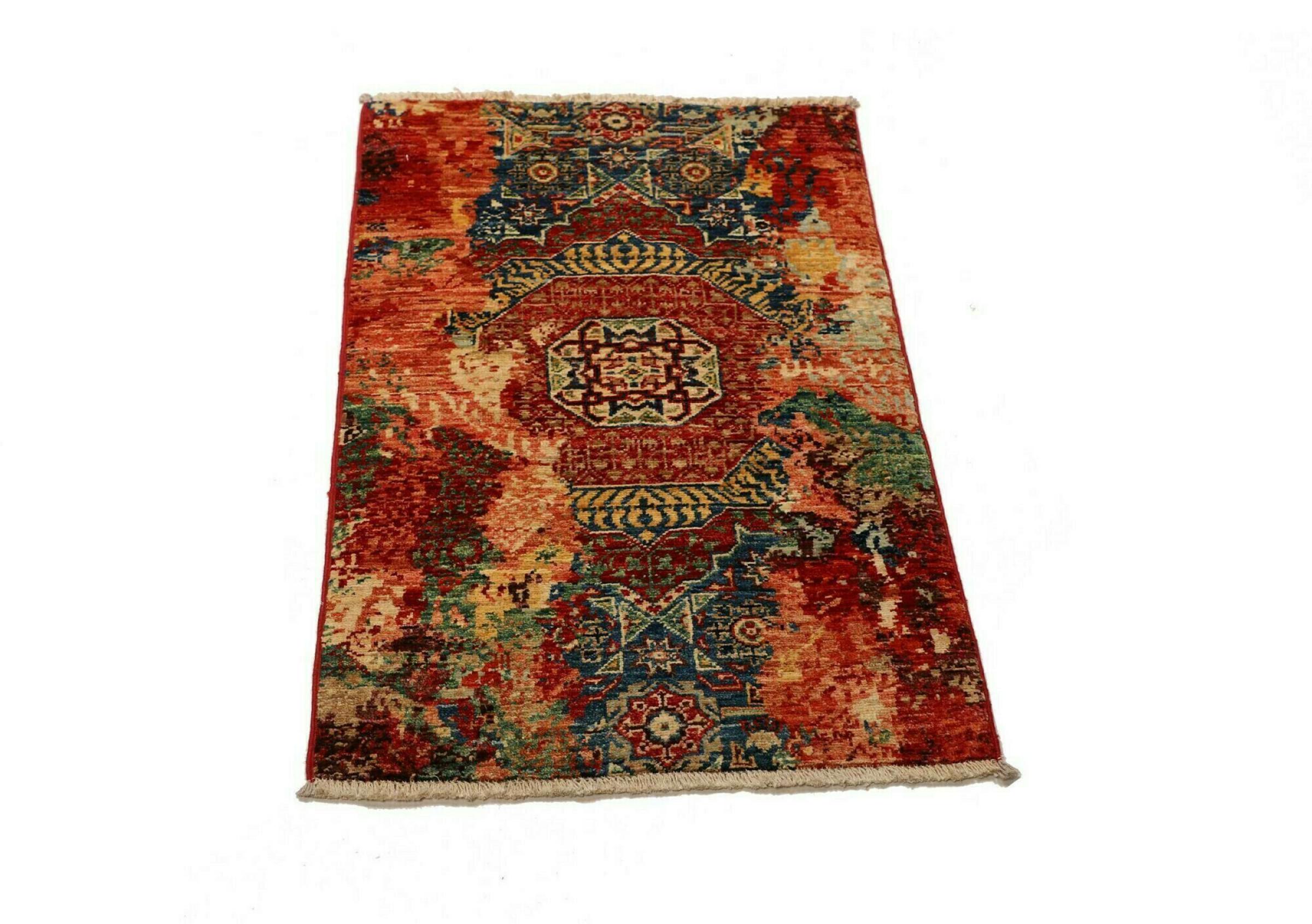 Esta vibrante alfombra oriental fue anudada a mano en Pakistán, en una de las culturas de anudado de mayor alcance del mundo. Aquí, la brillante gama de colores de Oriente cobra todo su esplendor. Una alfombra así hace sentir la alegría de vivir en cualquier época del año. La alfombra de diseño tiene su propio carácter, porque sólo se ha anudado a mano una vez a lo largo de varios meses.
