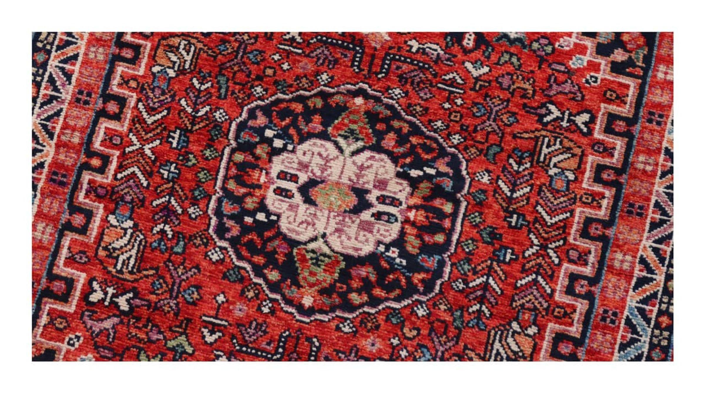 Esta alfombra está hecha de lana de oveja hilada a mano de la más alta calidad. Especialmente en Irán (antigua Persia), la lana de Afganistán y Pakistán sigue siendo hilada a mano antes de que comience el anudado de la alfombra. La lana ha demostrado ser un material natural y extremadamente resistente a lo largo de los siglos. Entre otras cosas, tiene propiedades repelentes de la suciedad y aislantes del calor. Al mismo tiempo, la lana es incomparablemente suave y tiene un brillo natural.
