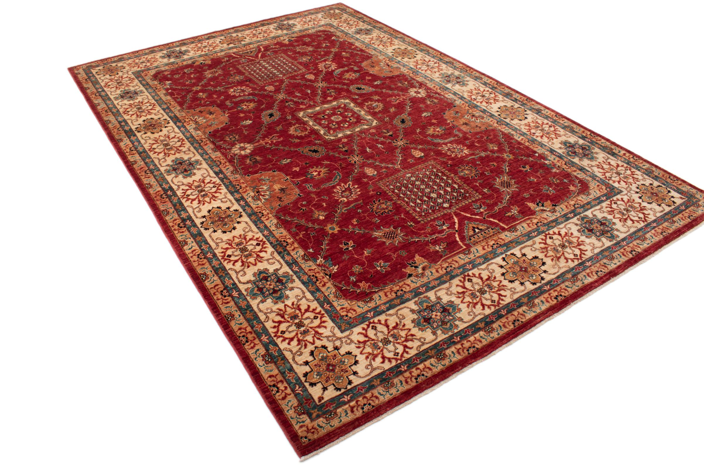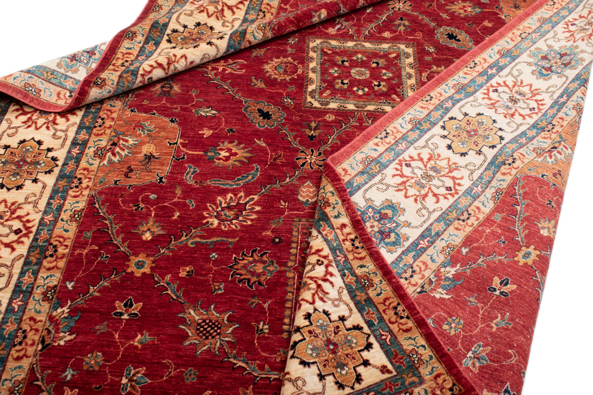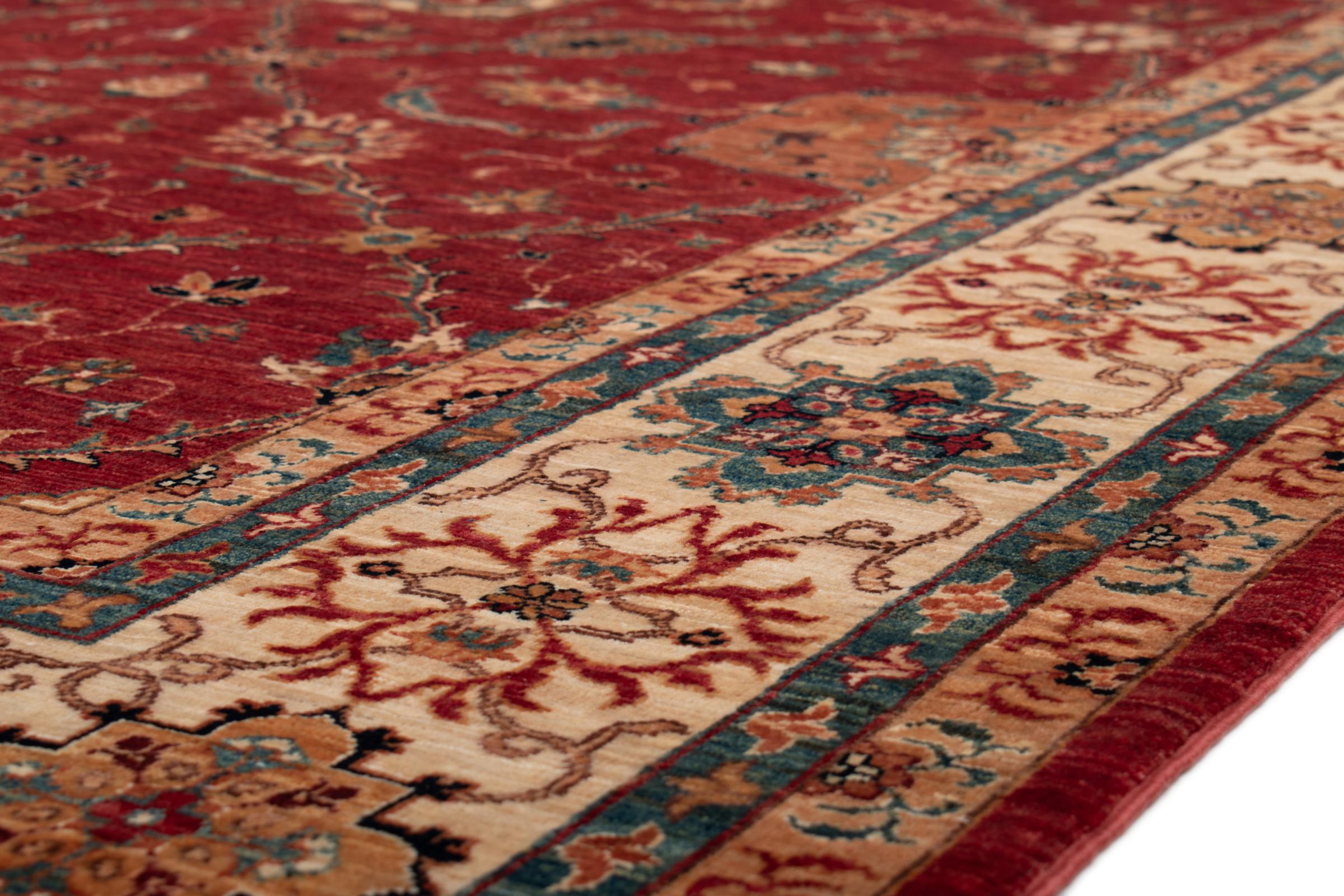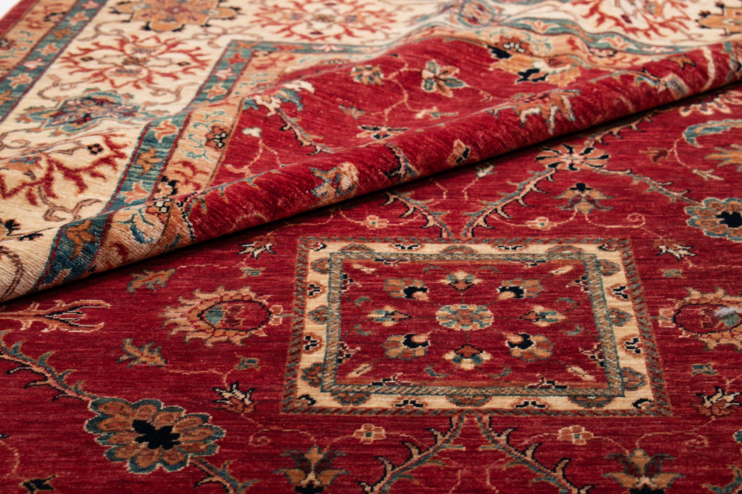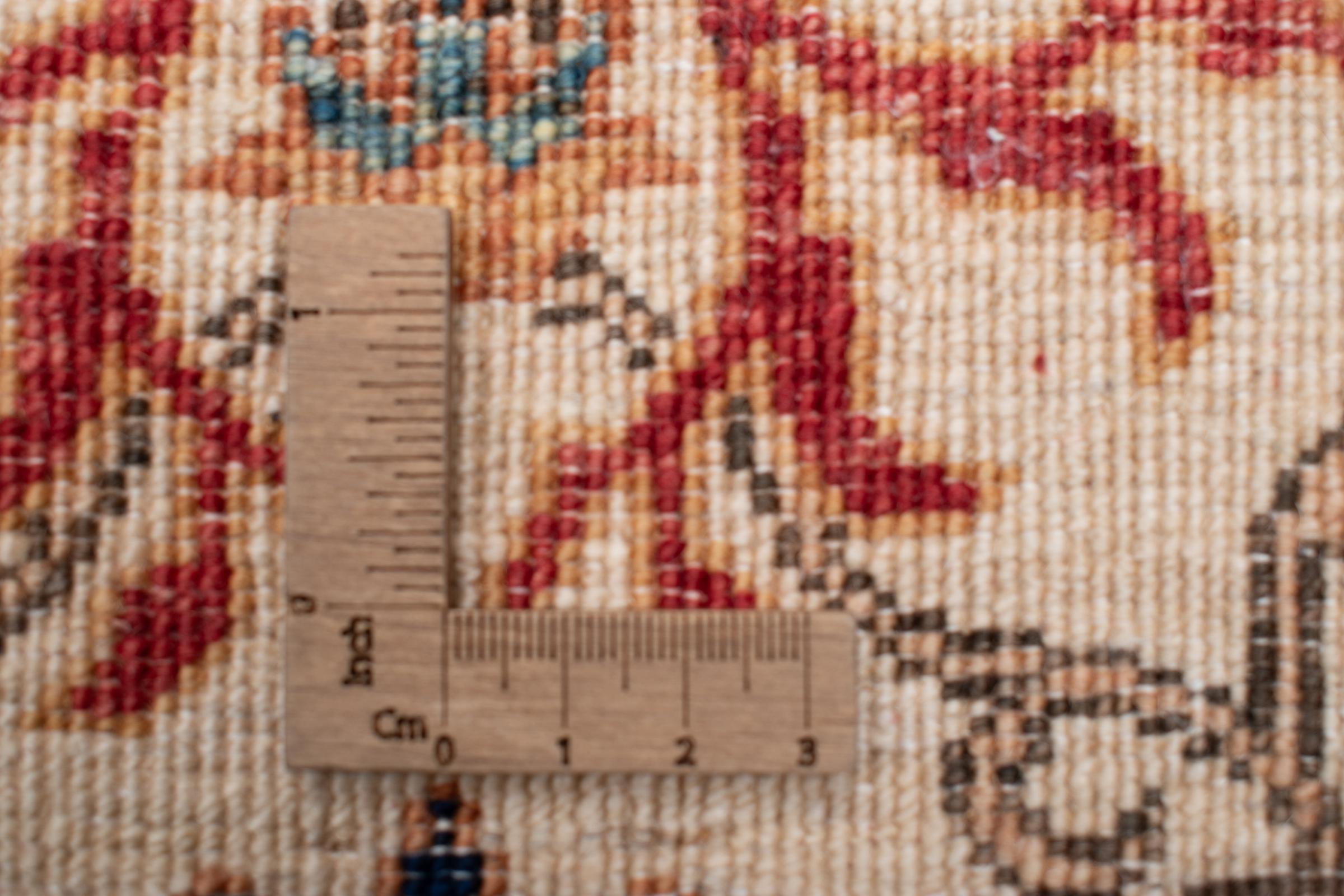 Esta alfombra está hecha de lana de oveja hilada a mano de la más alta calidad. Especialmente en Irán (antigua Persia), la lana de Afganistán y Pakistán sigue siendo hilada a mano antes de que comience el anudado de la alfombra. La lana ha demostrado ser un material natural y extremadamente resistente a lo largo de los siglos. Entre otras cosas, tiene propiedades repelentes de la suciedad y aislantes del calor. Al mismo tiempo, la lana es incomparablemente suave y tiene un brillo natural.