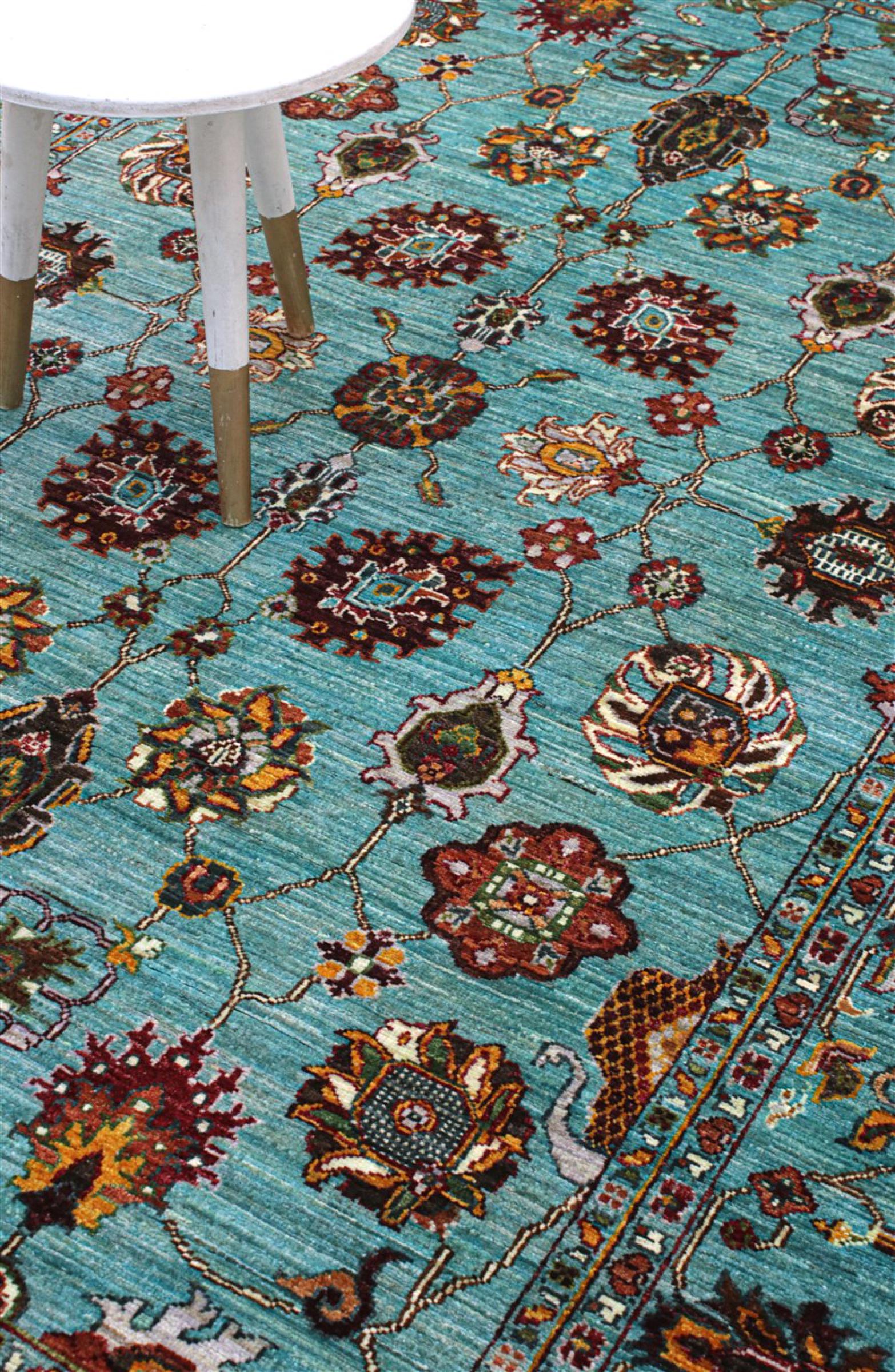Esta alfombra está hecha de lana de oveja hilada a mano de la más alta calidad. Especialmente en Irán (antigua Persia), la lana de Afganistán y Pakistán sigue siendo hilada a mano antes de que comience el anudado de la alfombra. La lana ha demostrado ser un material natural y extremadamente resistente a lo largo de los siglos. Entre otras cosas, tiene propiedades repelentes de la suciedad y aislantes del calor. Al mismo tiempo, la lana es incomparablemente suave y tiene un brillo natural.