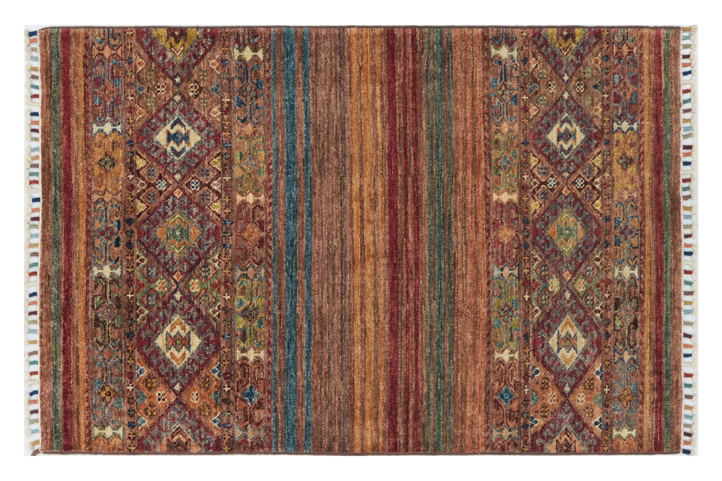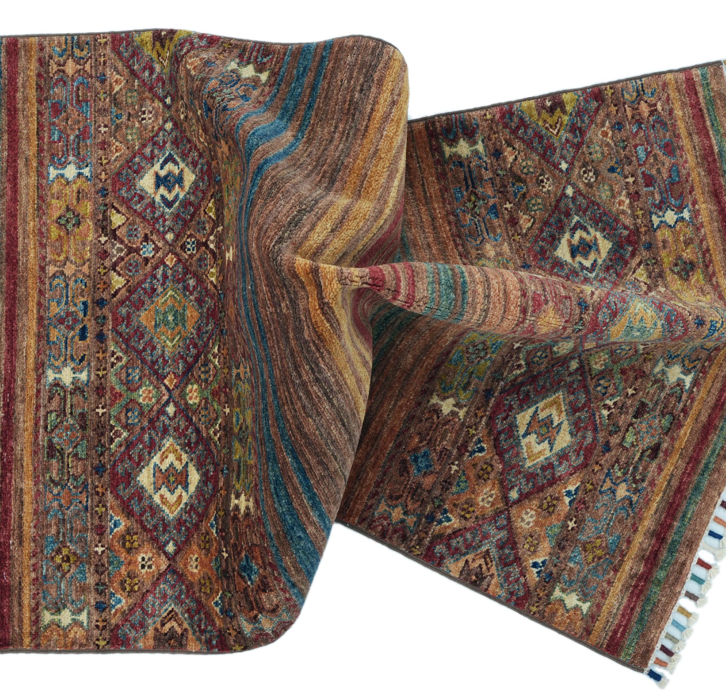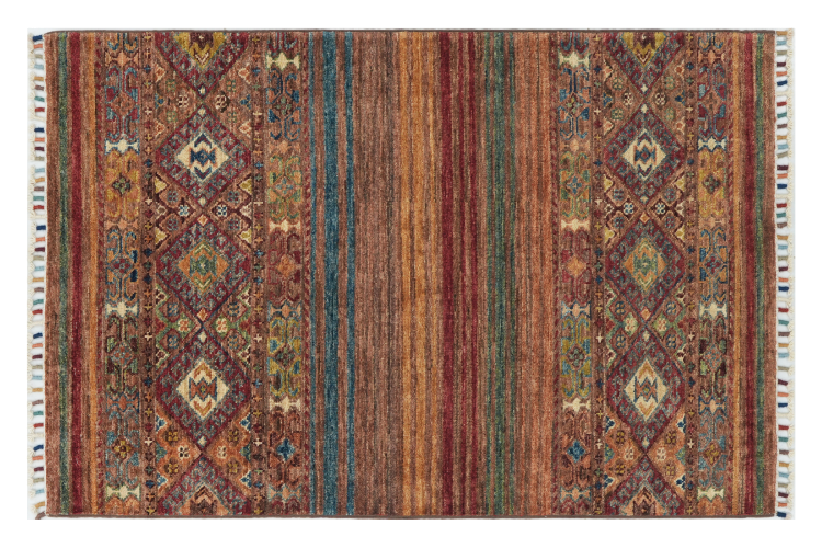 Esta alfombra de Arijana Shaal fue anudada a mano en Pakistán con la mejor artesanía. Promete una calidad muy alta y por lo tanto ofrece un placer duradero. El patrón de las rayas es variado y excitante. Se inspiró en el conocido diseño Moharamati. Si las alfombras monocromáticas son demasiado aburridas para ti, seguro que te encantará esta Arijana Shaal.