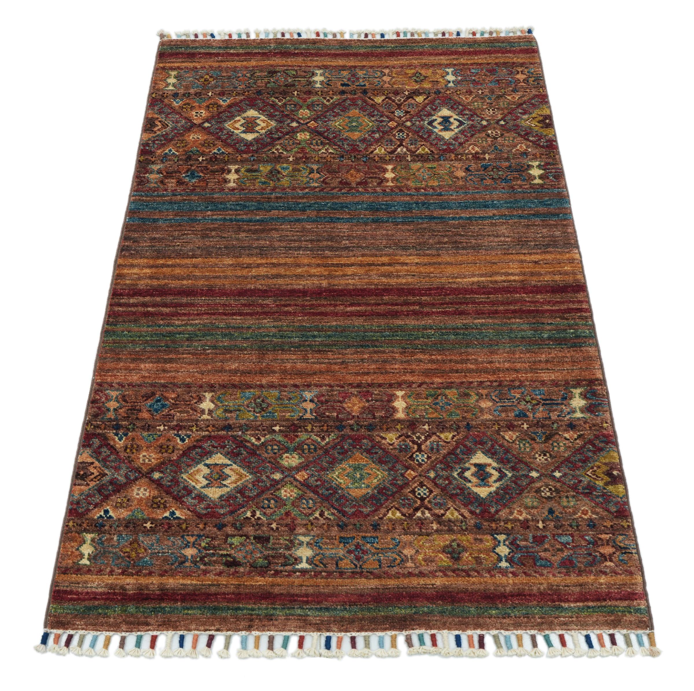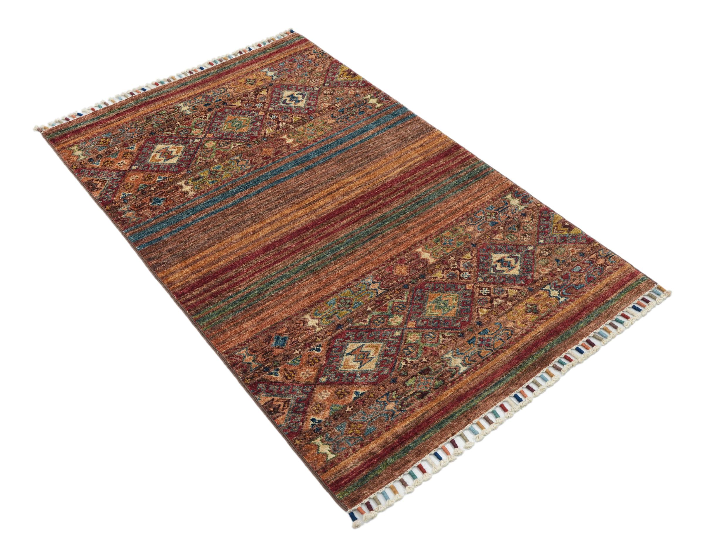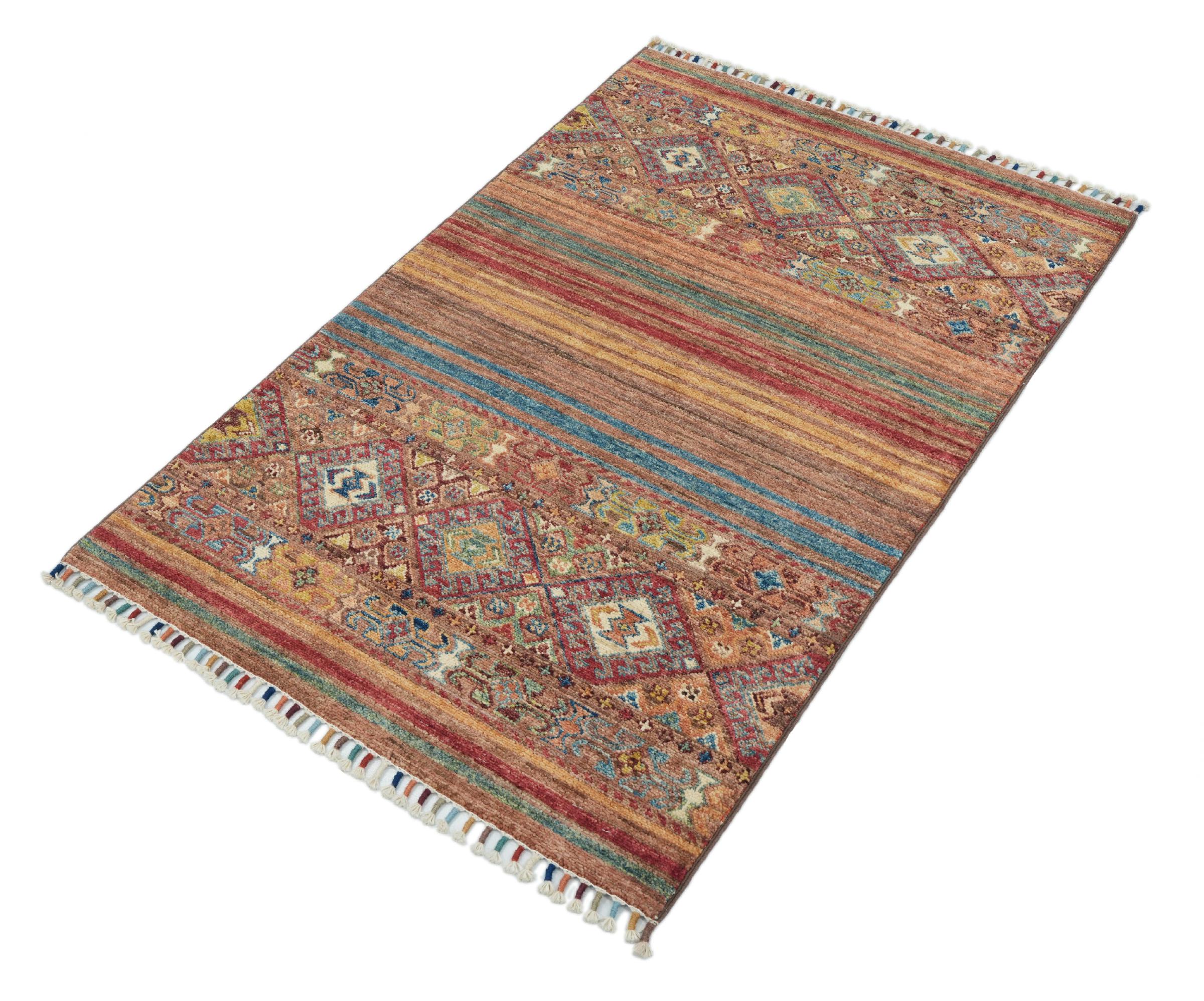 Esta alfombra de Arijana Shaal fue anudada a mano en Pakistán con la mejor artesanía. Promete una calidad muy alta y por lo tanto ofrece un placer duradero. El patrón de las rayas es variado y excitante. Se inspiró en el conocido diseño Moharamati. Si las alfombras monocromáticas son demasiado aburridas para ti, seguro que te encantará esta Arijana Shaal.