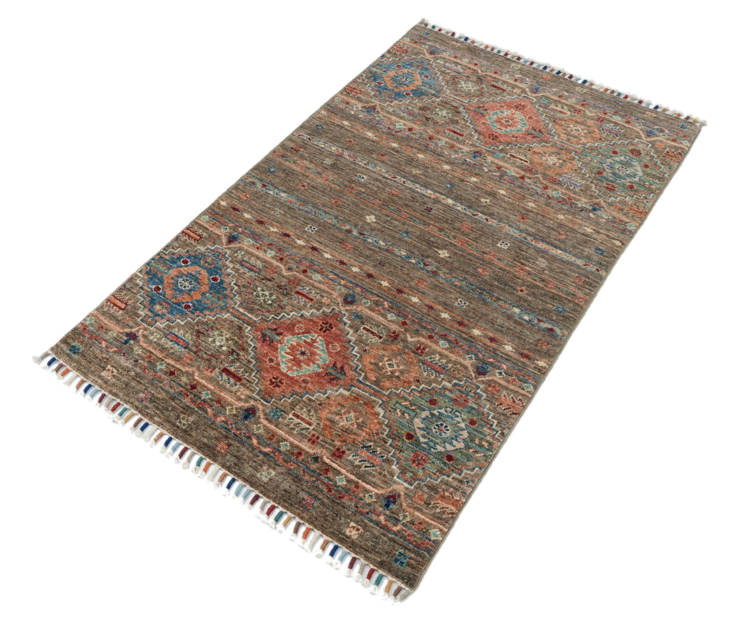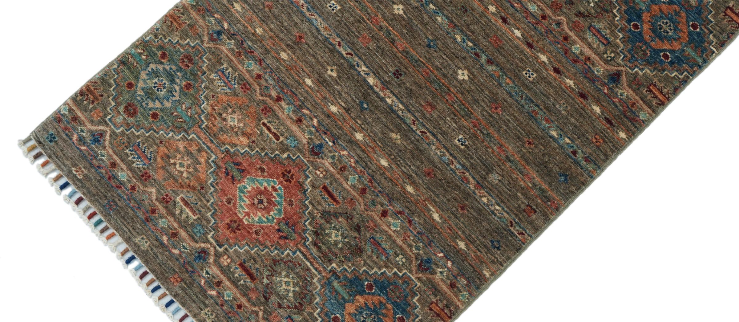 Esta alfombra de Arijana Shaal fue anudada a mano en Pakistán con la mejor artesanía. Promete una calidad muy alta y por lo tanto ofrece un placer duradero. El patrón de las rayas es variado y excitante. Se inspiró en el conocido diseño Moharamati. Si las alfombras monocromáticas son demasiado aburridas para ti, seguro que te encantará esta Arijana Shaal.