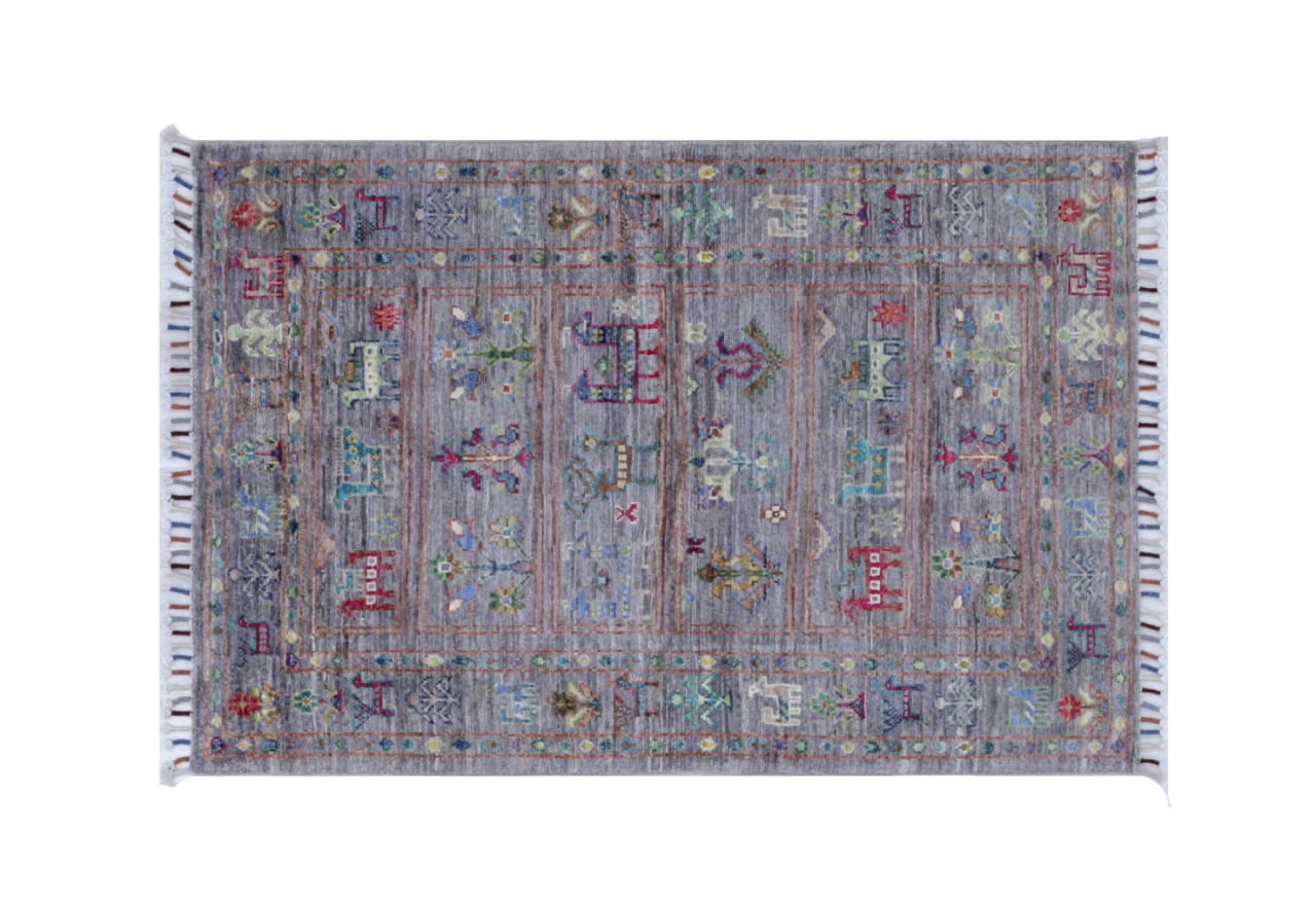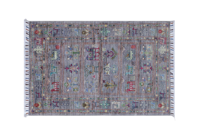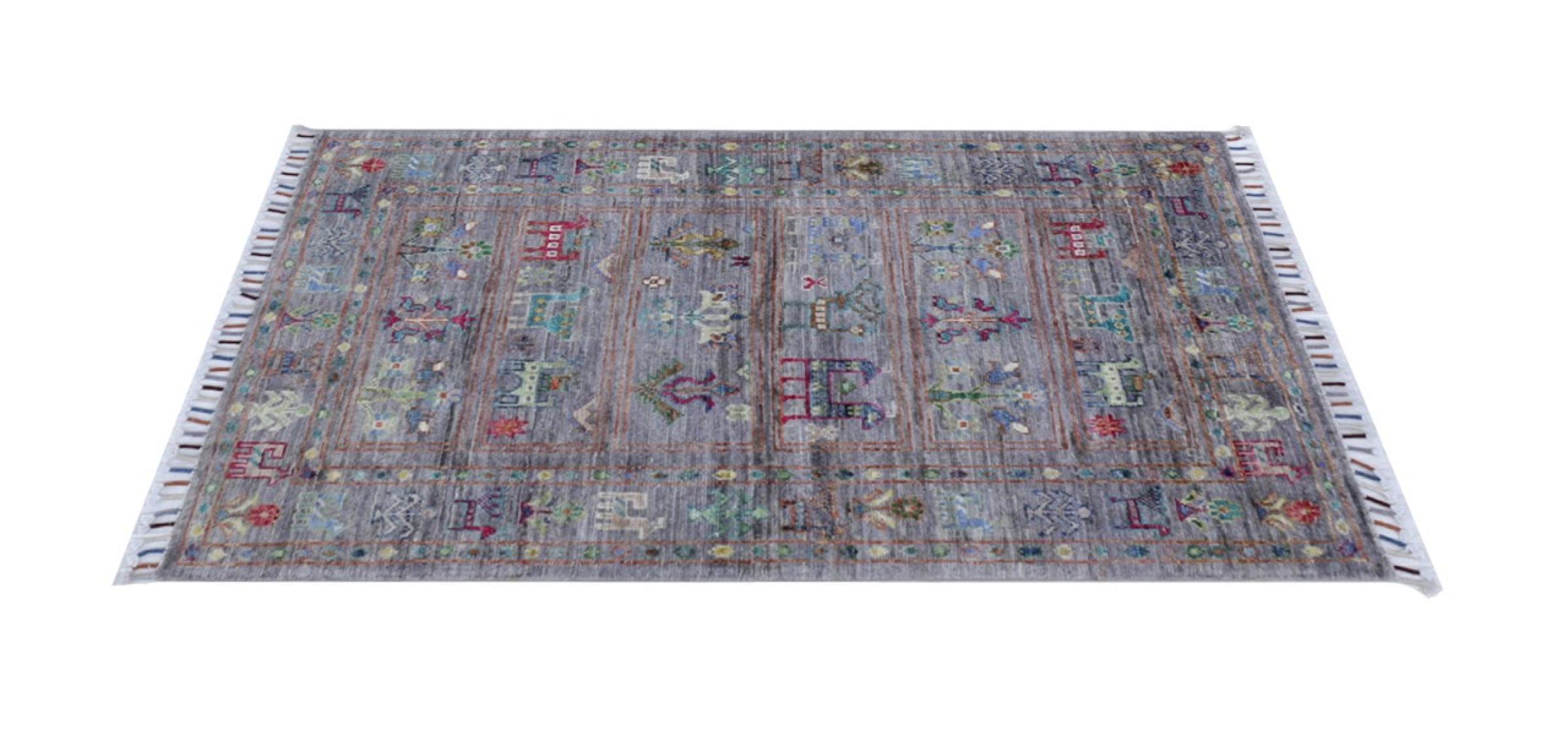 Alfombra número: 31015100768323 Tamaño: 123x80 cm Espesor: alrededor de 5 mm Nudos: 144 000 - 180 000 / m² Elaboración: Anudado a mano Crespón: Lana hilada a mano Urdimbre: Algodón Origen: Pakistán Edad: Nuevo Peso: alrededor de 3 kg Cantidad en stock: Única - Solo 1 en stock
