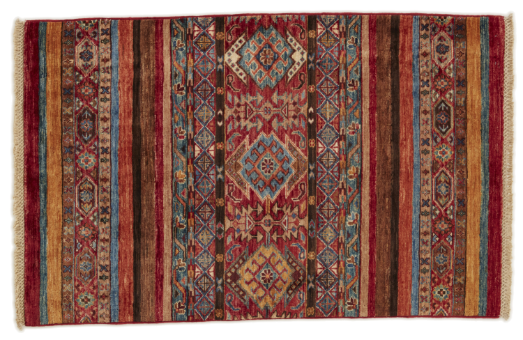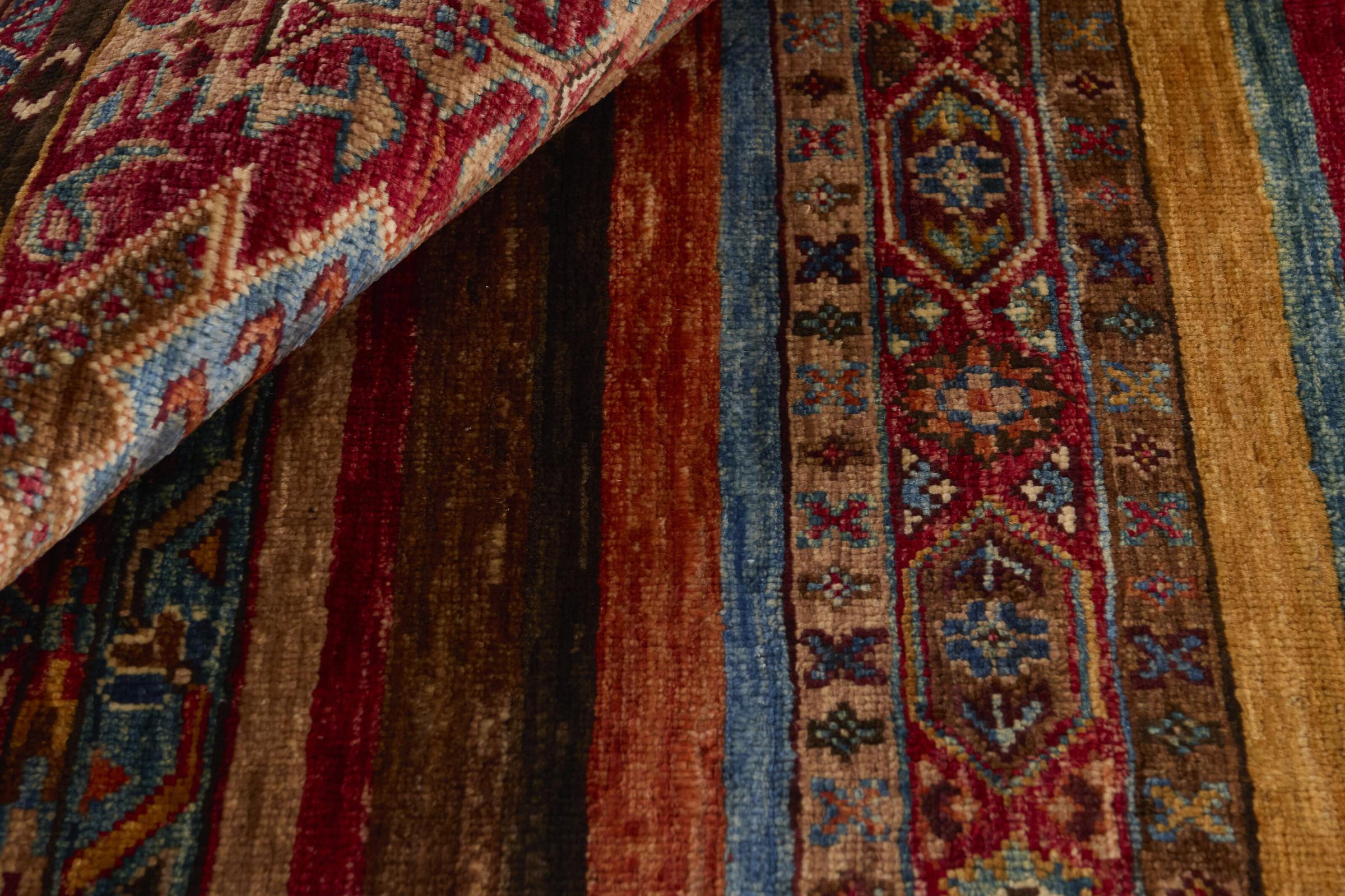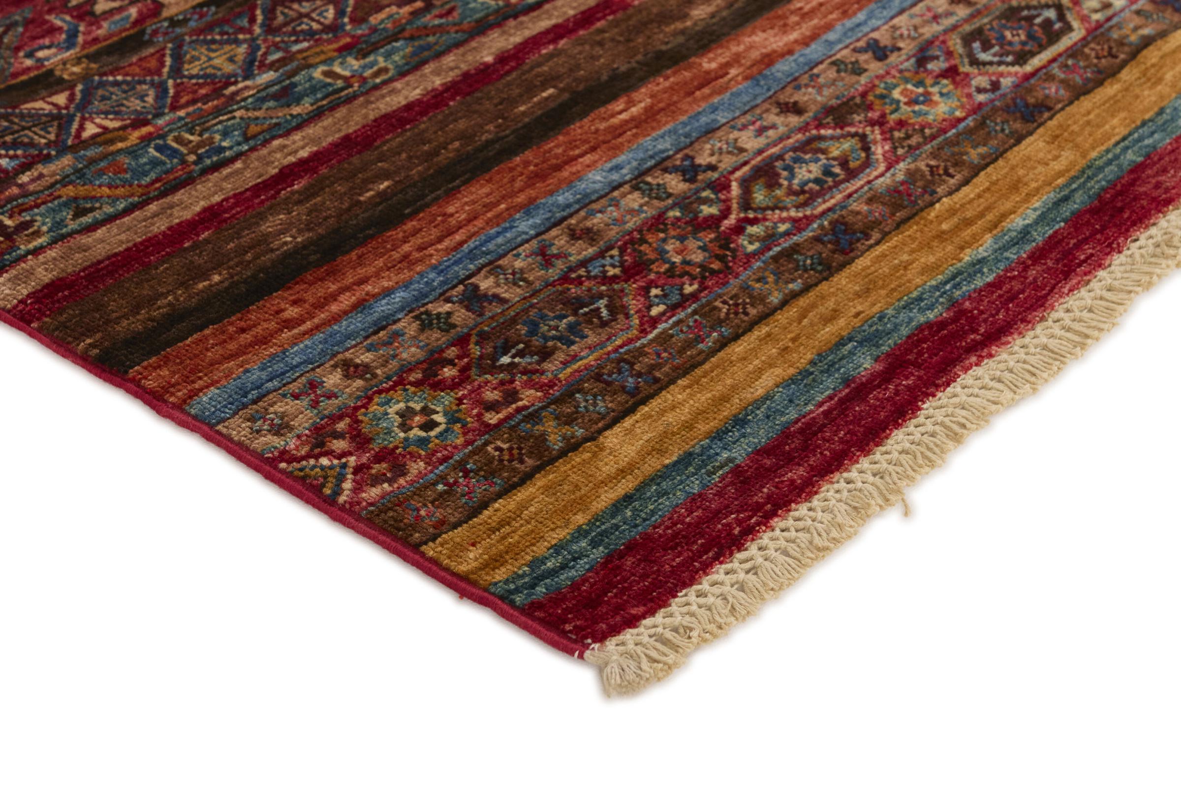 Esta alfombra de Arijana Shaal fue anudada a mano en Pakistán con la mejor artesanía. Promete una calidad muy alta y por lo tanto ofrece un placer duradero. El patrón de las rayas es variado y excitante. Se inspiró en el conocido diseño Moharamati. Si las alfombras monocromáticas son demasiado aburridas para ti, seguro que te encantará esta Arijana Shaal.