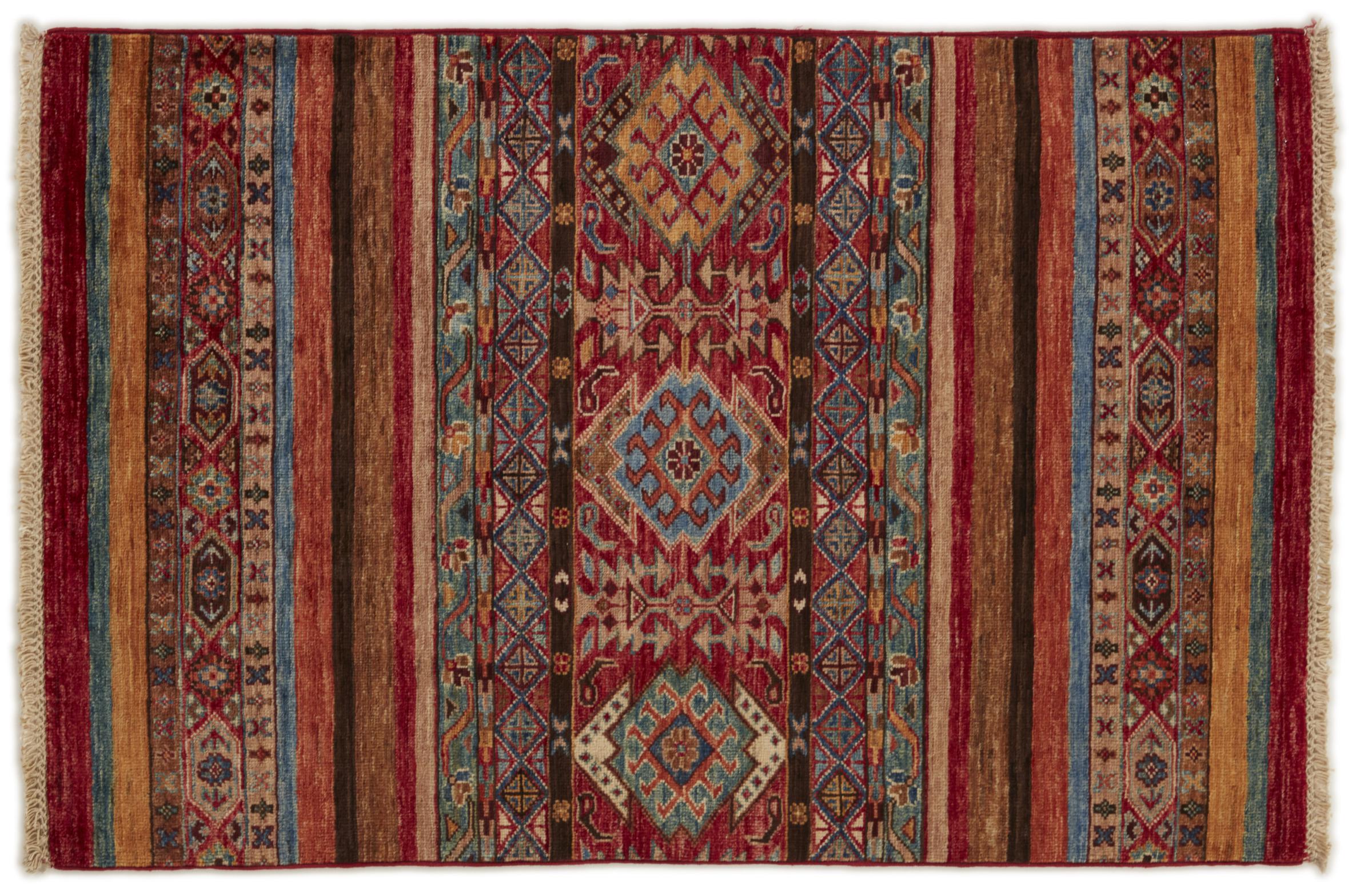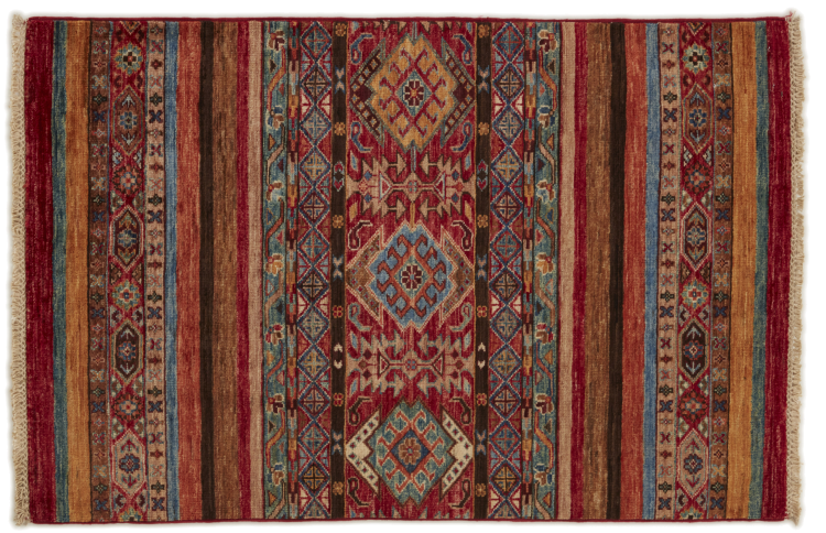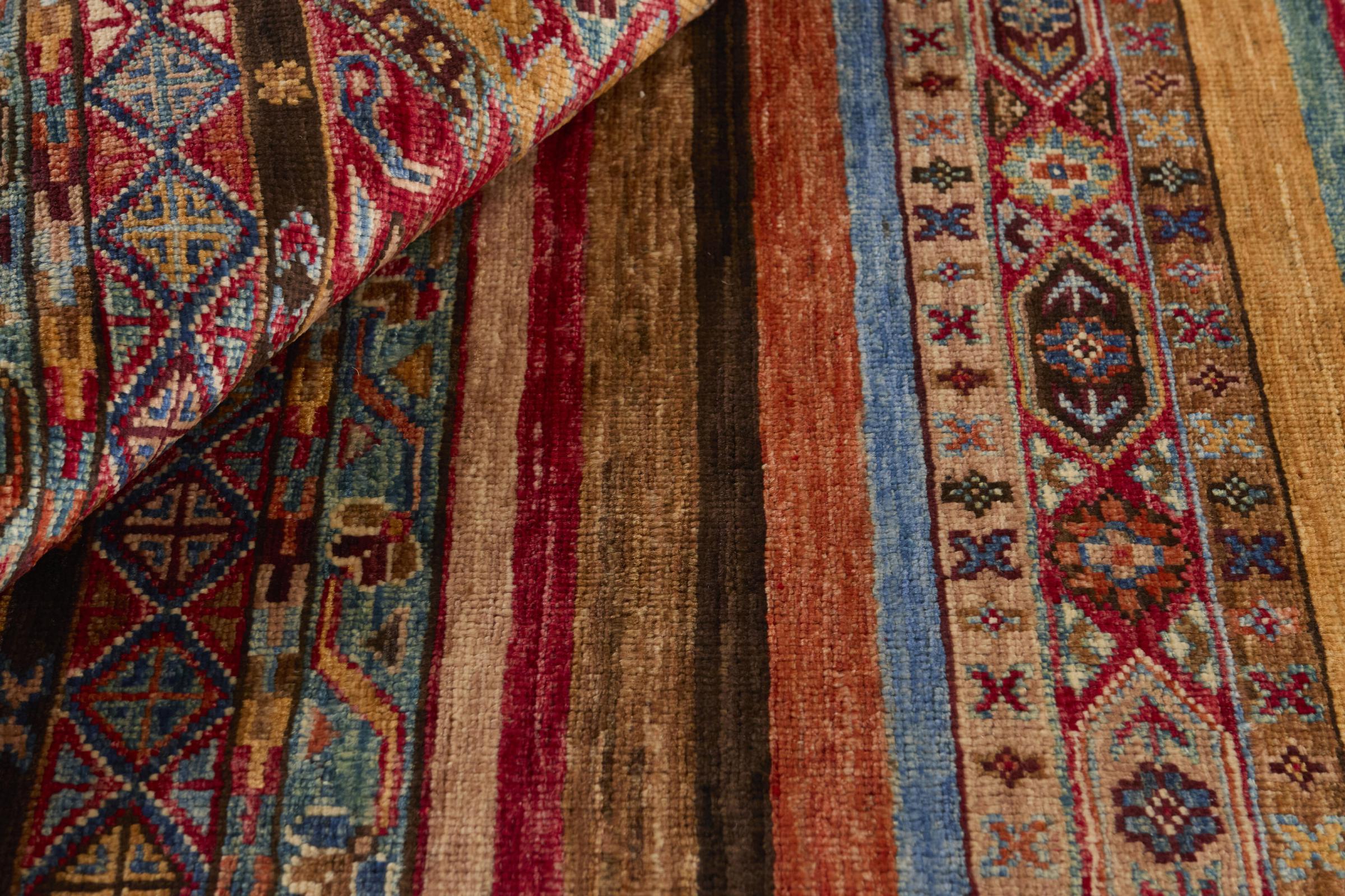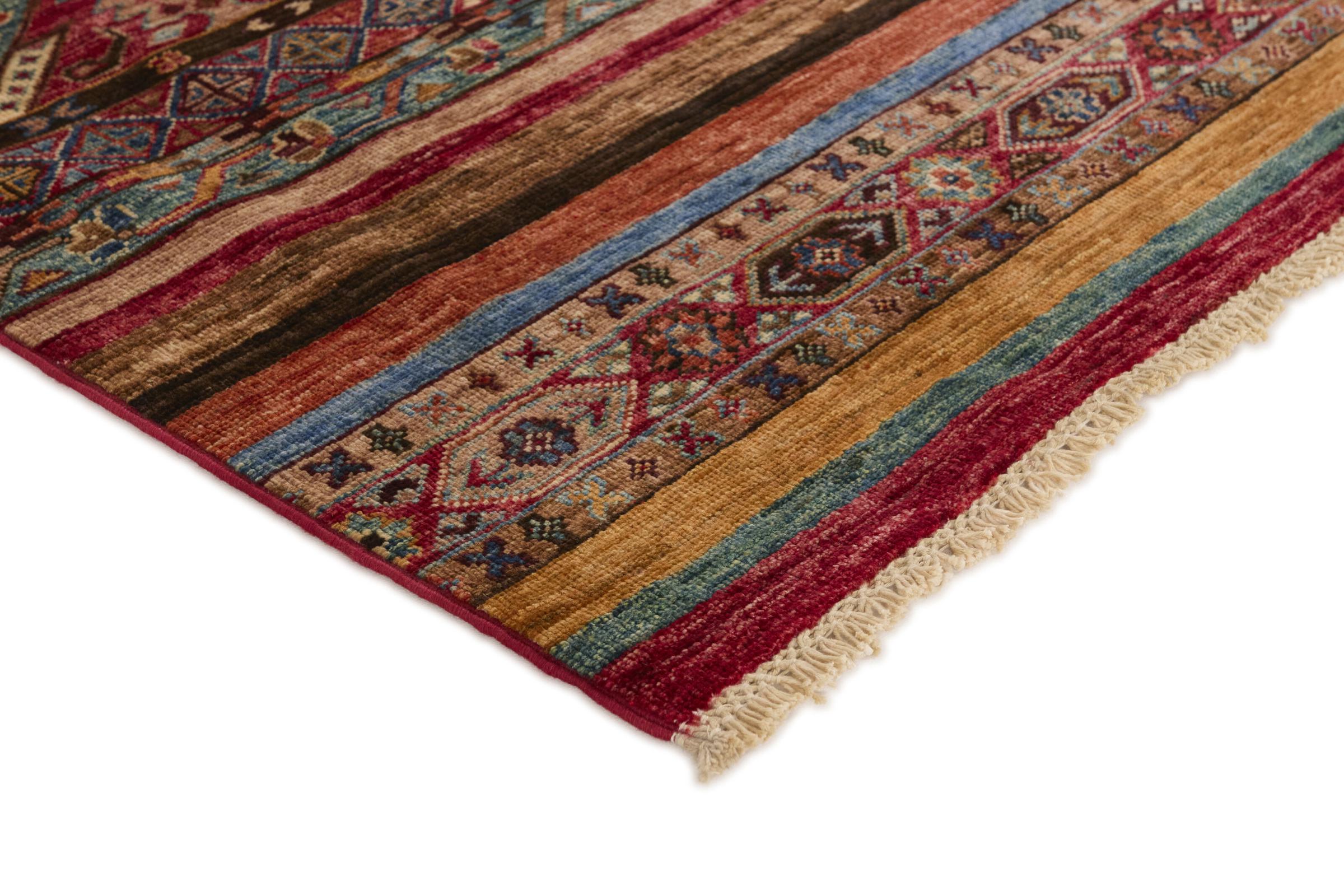 Esta alfombra de Arijana Shaal fue anudada a mano en Pakistán con la mejor artesanía. Promete una calidad muy alta y por lo tanto ofrece un placer duradero. El patrón de las rayas es variado y excitante. Se inspiró en el conocido diseño Moharamati. Si las alfombras monocromáticas son demasiado aburridas para ti, seguro que te encantará esta Arijana Shaal.