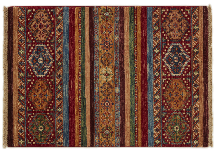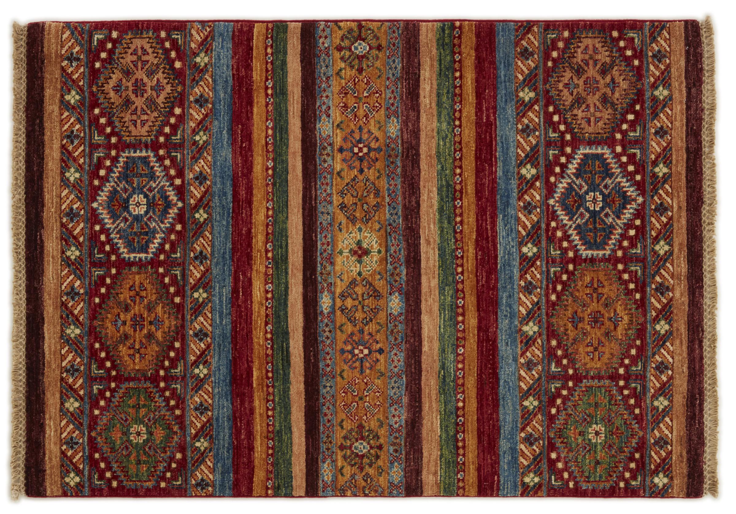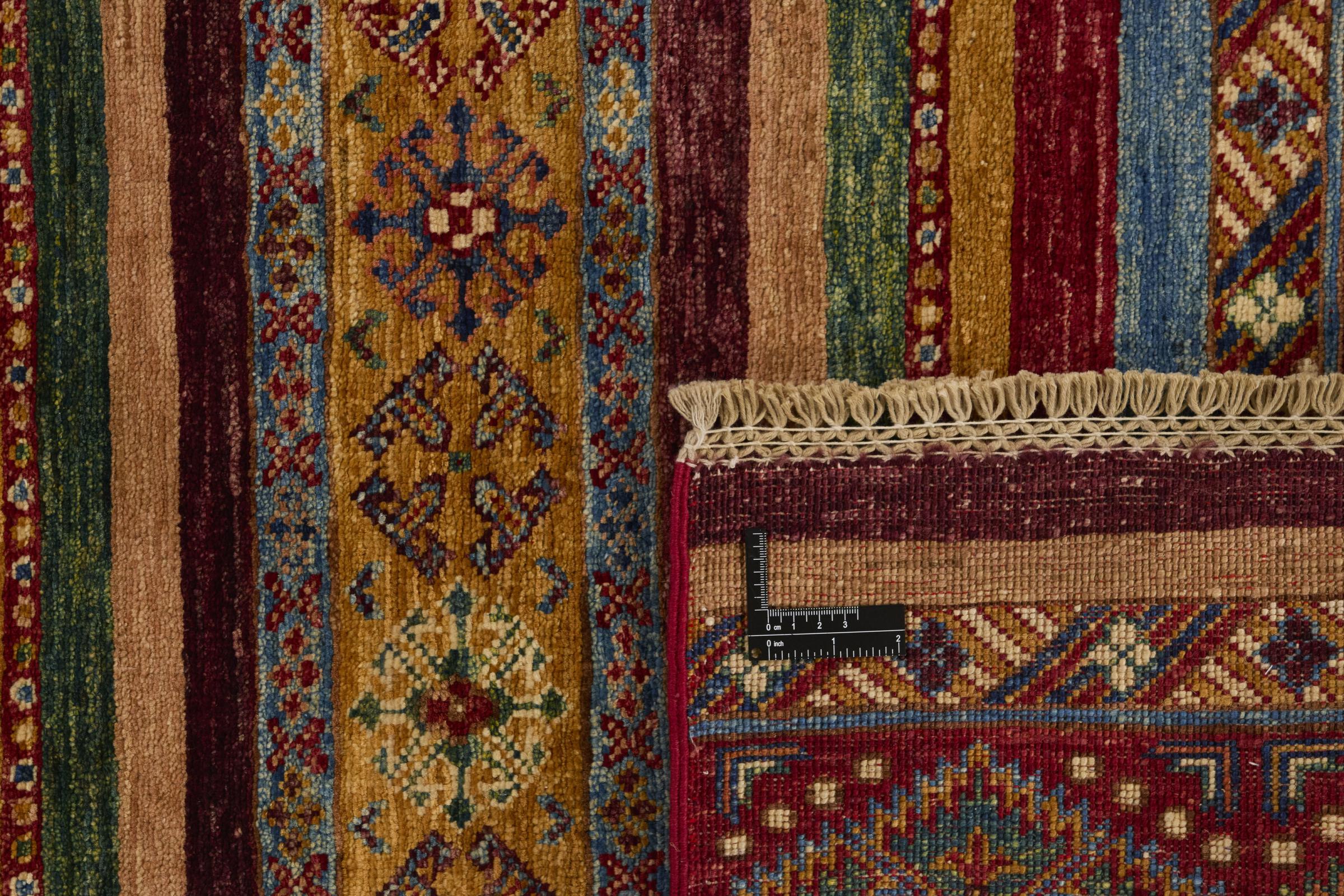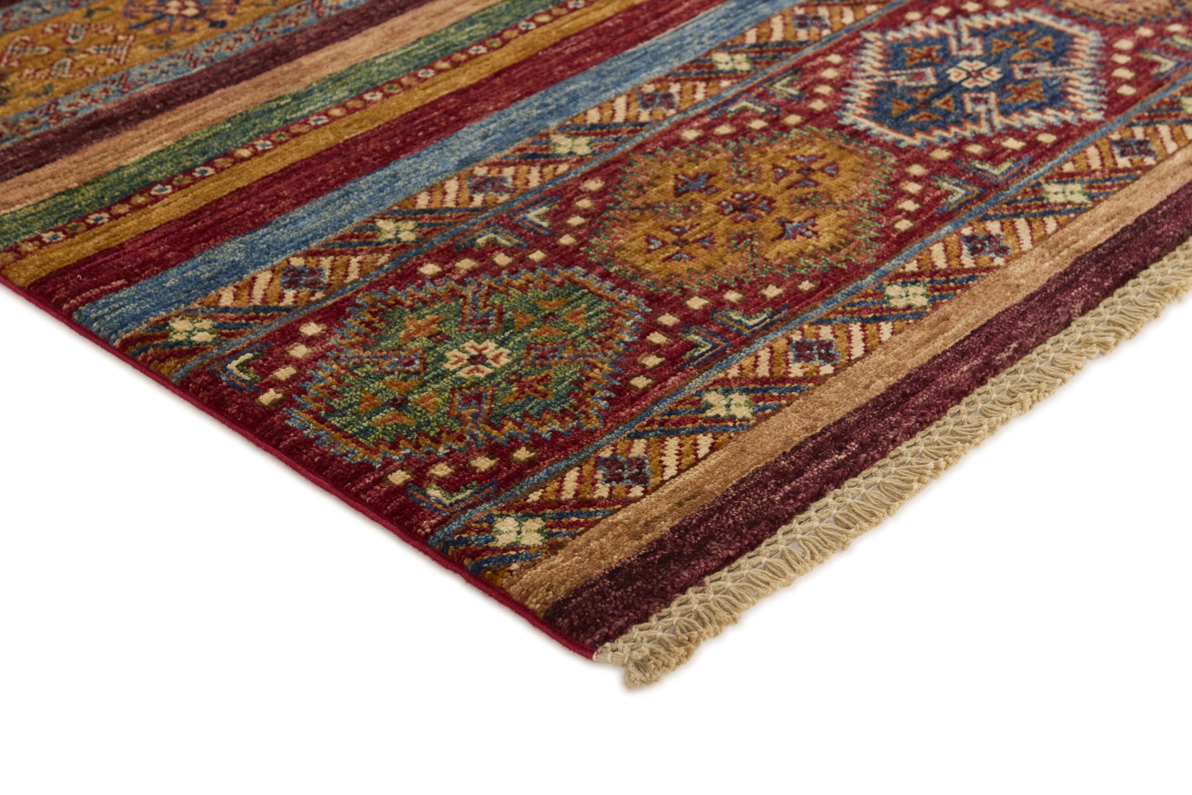 Esta alfombra de Arijana Shaal fue anudada a mano en Pakistán con la mejor artesanía. Promete una calidad muy alta y por lo tanto ofrece un placer duradero. El patrón de las rayas es variado y excitante. Se inspiró en el conocido diseño Moharamati. Si las alfombras monocromáticas son demasiado aburridas para ti, seguro que te encantará esta Arijana Shaal.