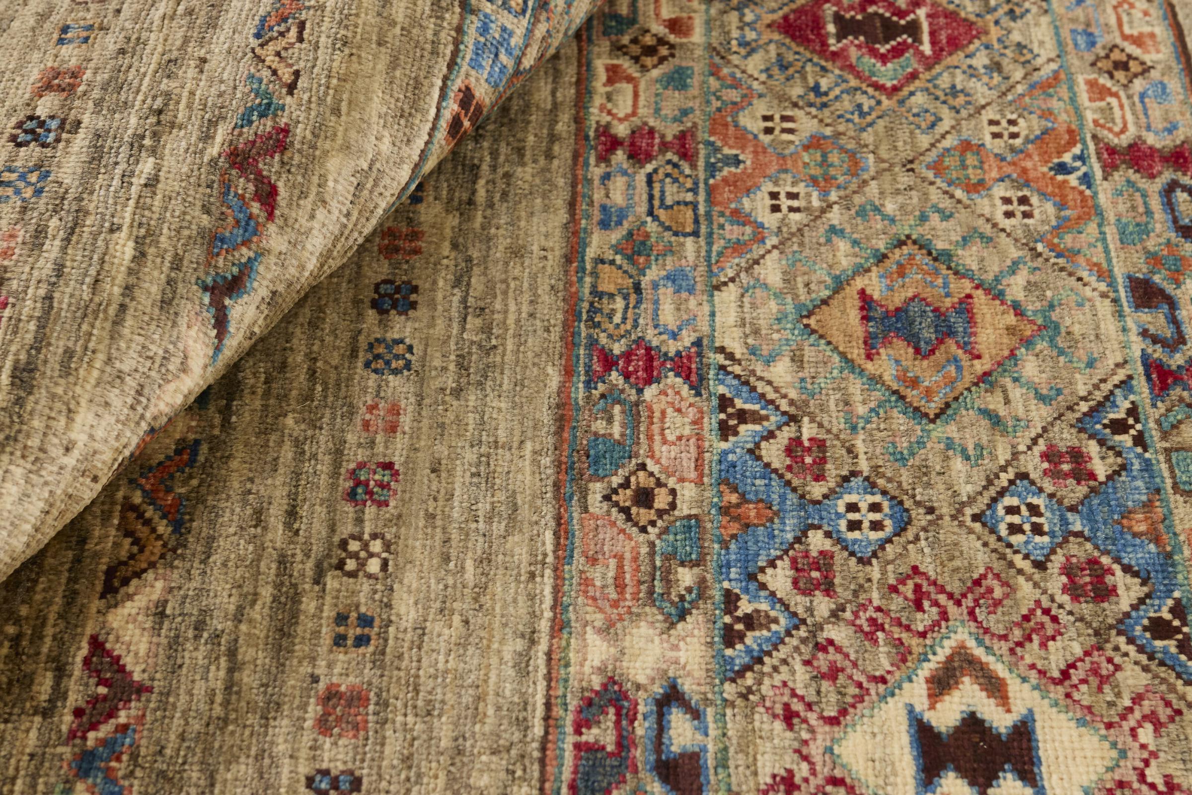 Esta alfombra de Arijana Shaal fue anudada a mano en Pakistán con la mejor artesanía. Promete una calidad muy alta y por lo tanto ofrece un placer duradero. El patrón de las rayas es variado y excitante. Se inspiró en el conocido diseño Moharamati. Si las alfombras monocromáticas son demasiado aburridas para ti, seguro que te encantará esta Arijana Shaal.