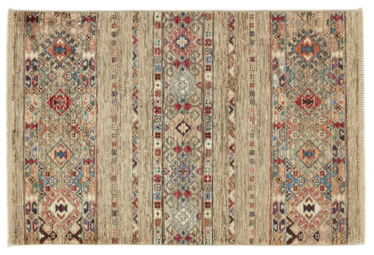 Alfombra número: 310292004374033 Tamaño: 134x92 cm Espesor: alrededor de 5 mm Nudos: 144 000 - 180 000 / m² Elaboración: Anudado a mano Crespón: Lana hilada a mano Urdimbre: Algodón Origen: Afganistán Edad: Nuevo Peso: alrededor de 4 kg Cantidad en stock: Única - Solo 1 en stock