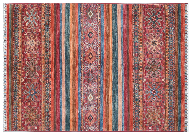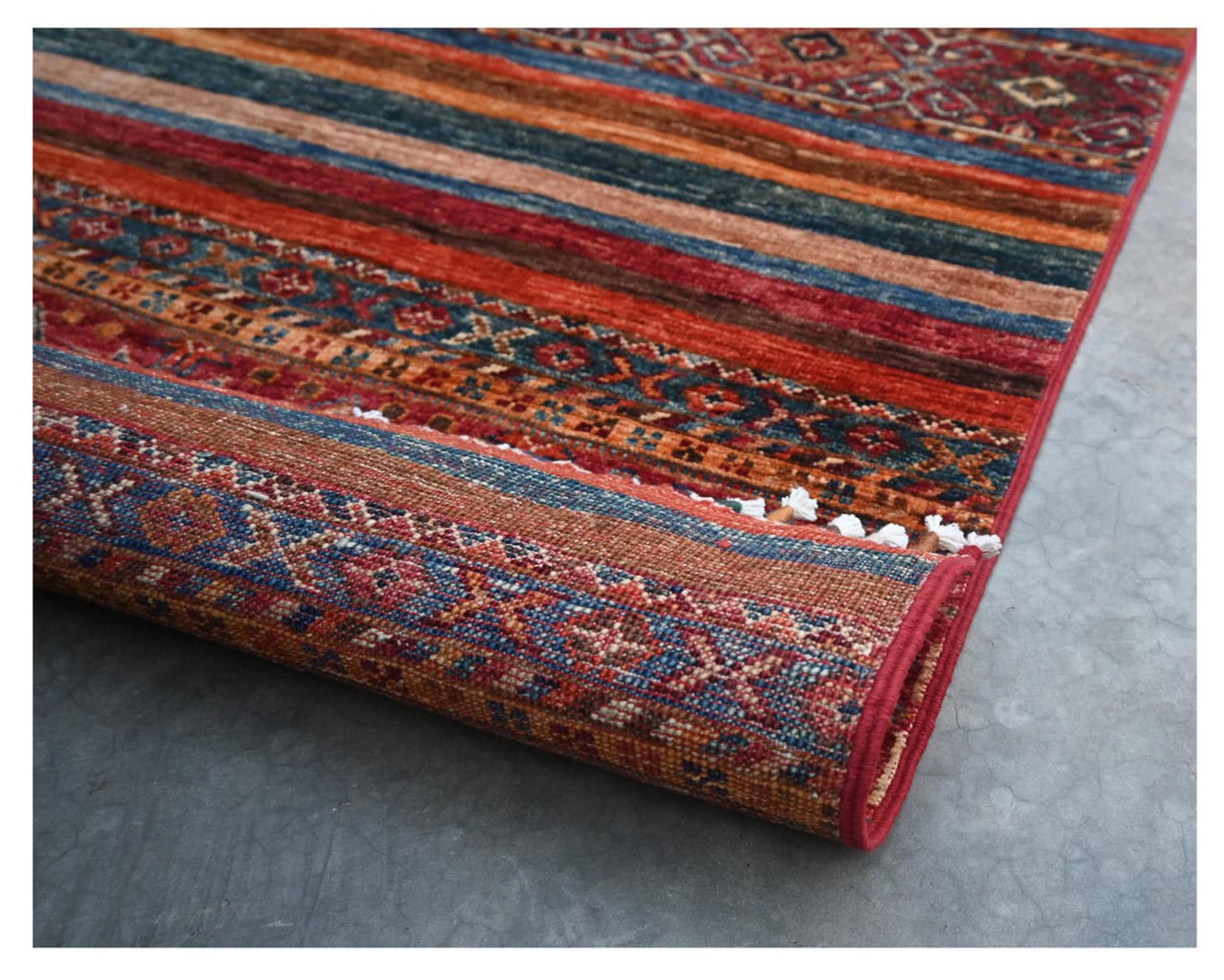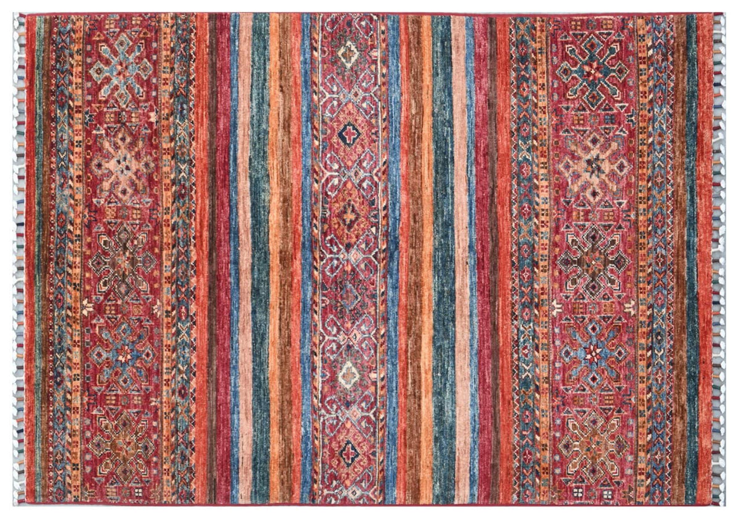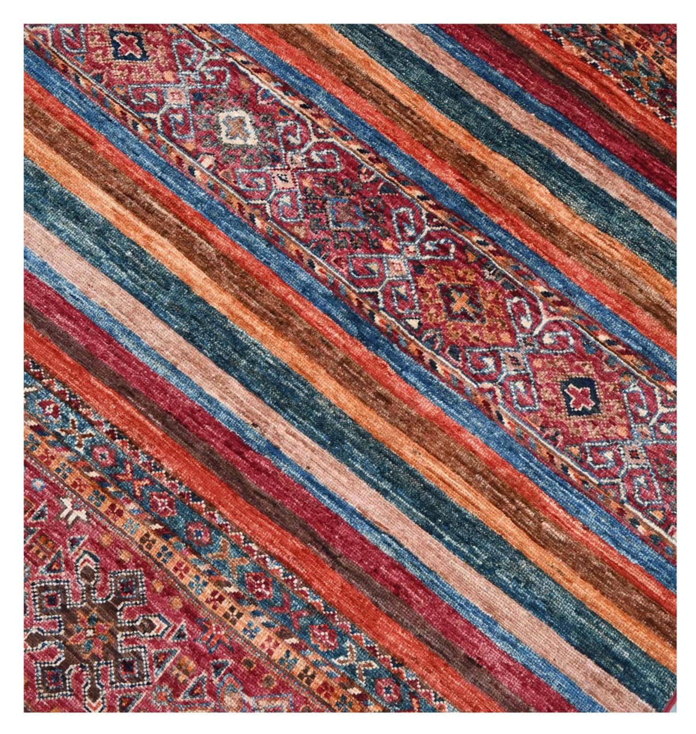 Esta alfombra de Arijana Shaal fue anudada a mano en Pakistán con la mejor artesanía. Promete una calidad muy alta y por lo tanto ofrece un placer duradero. El patrón de las rayas es variado y excitante. Se inspiró en el conocido diseño Moharamati. Si las alfombras monocromáticas son demasiado aburridas para ti, seguro que te encantará esta Arijana Shaal.