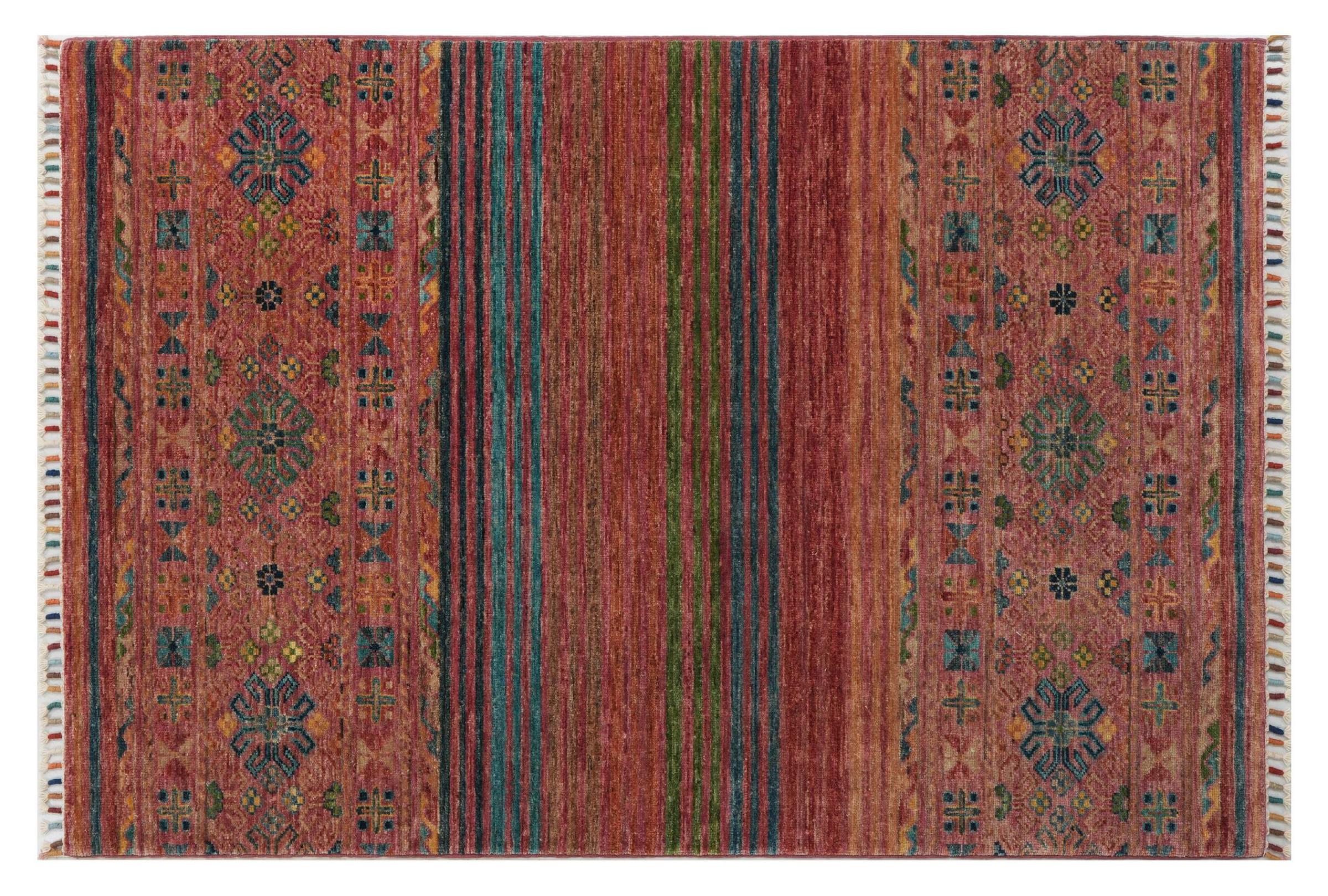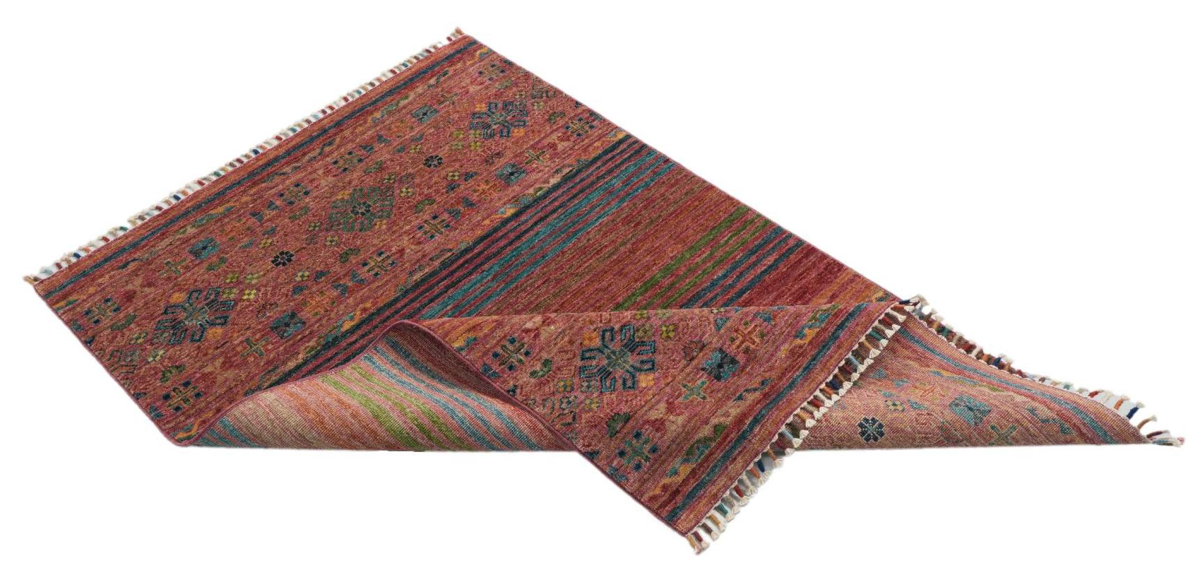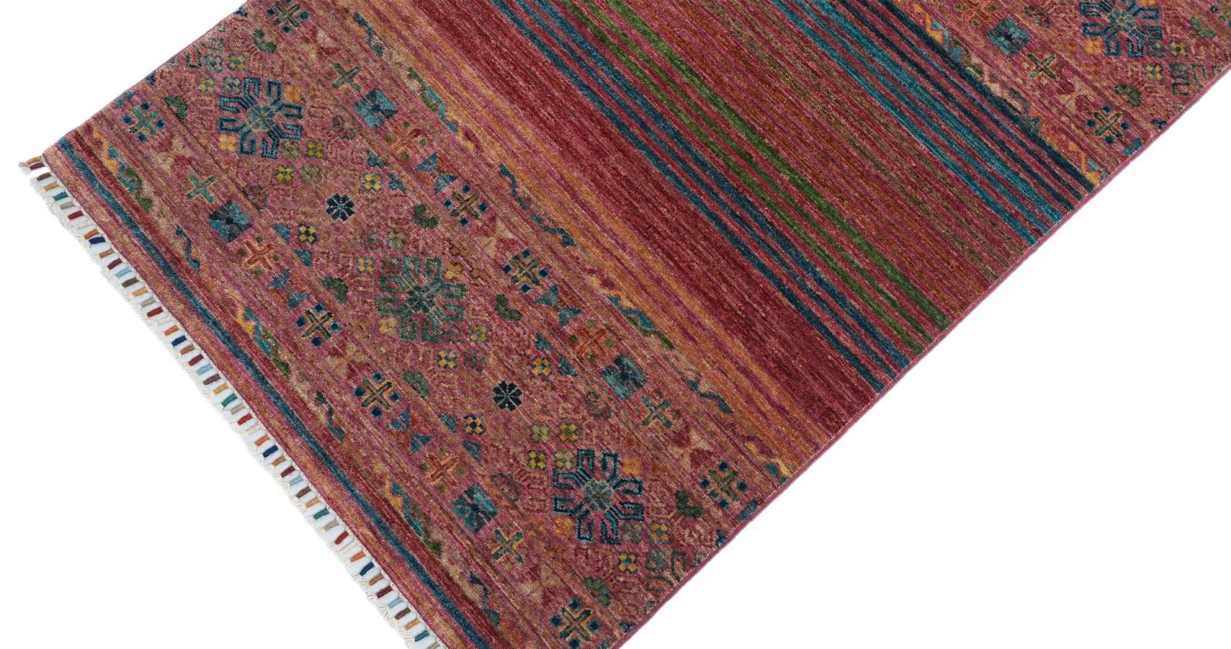 Esta alfombra de Arijana Shaal fue anudada a mano en Pakistán con la mejor artesanía. Promete una calidad muy alta y por lo tanto ofrece un placer duradero. El patrón de las rayas es variado y excitante. Se inspiró en el conocido diseño Moharamati. Si las alfombras monocromáticas son demasiado aburridas para ti, seguro que te encantará esta Arijana Shaal.