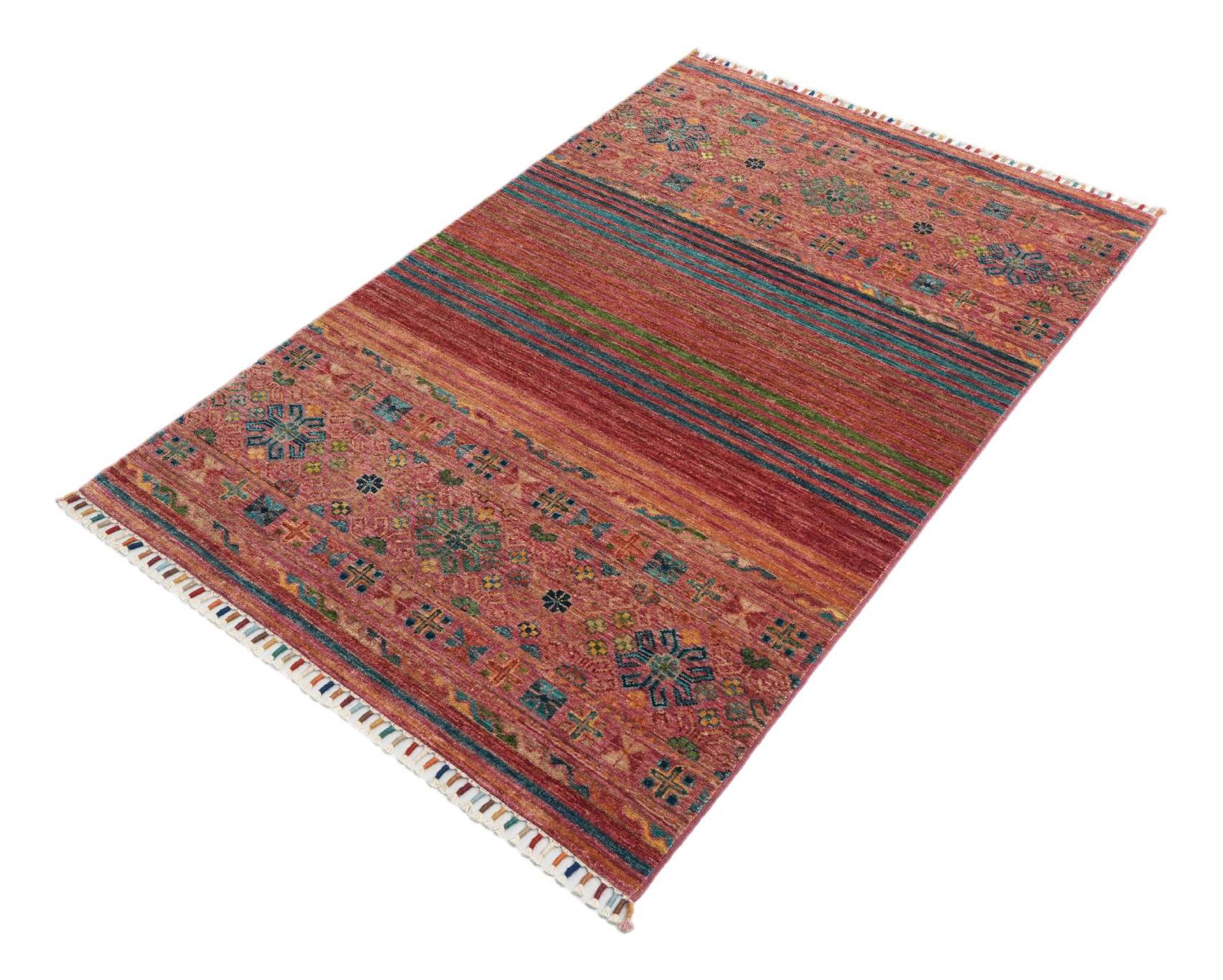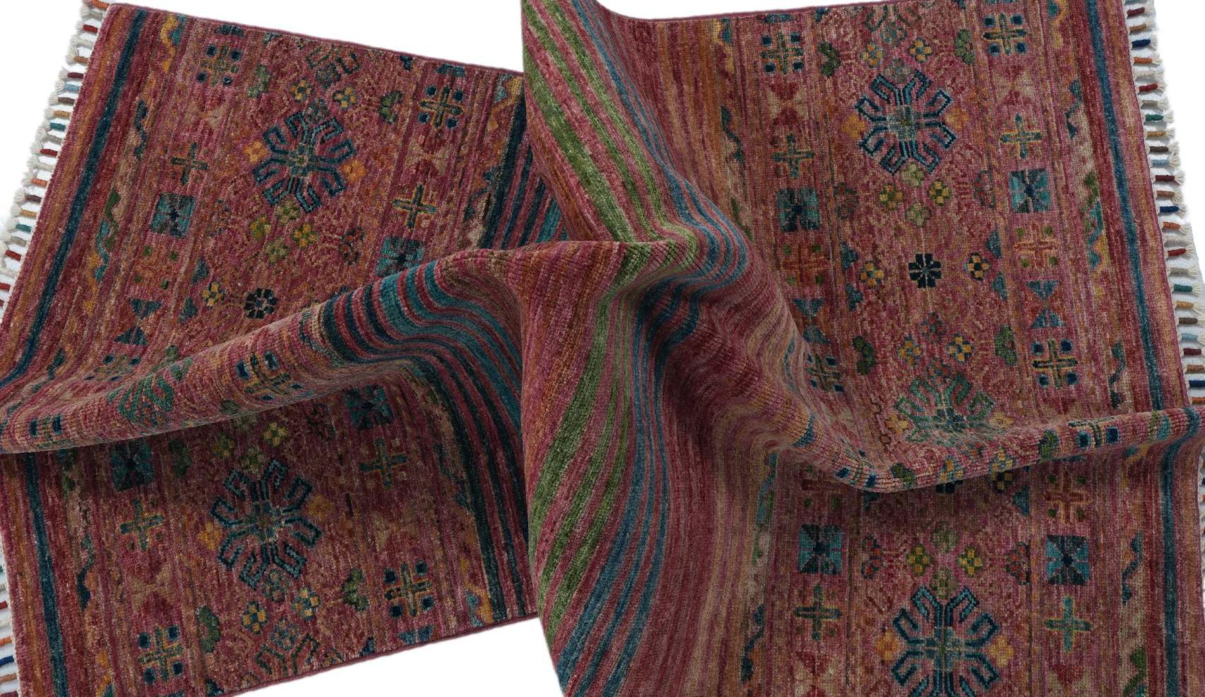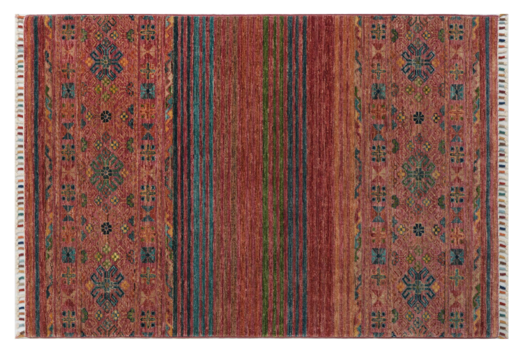 Esta alfombra de Arijana Shaal fue anudada a mano en Pakistán con la mejor artesanía. Promete una calidad muy alta y por lo tanto ofrece un placer duradero. El patrón de las rayas es variado y excitante. Se inspiró en el conocido diseño Moharamati. Si las alfombras monocromáticas son demasiado aburridas para ti, seguro que te encantará esta Arijana Shaal.