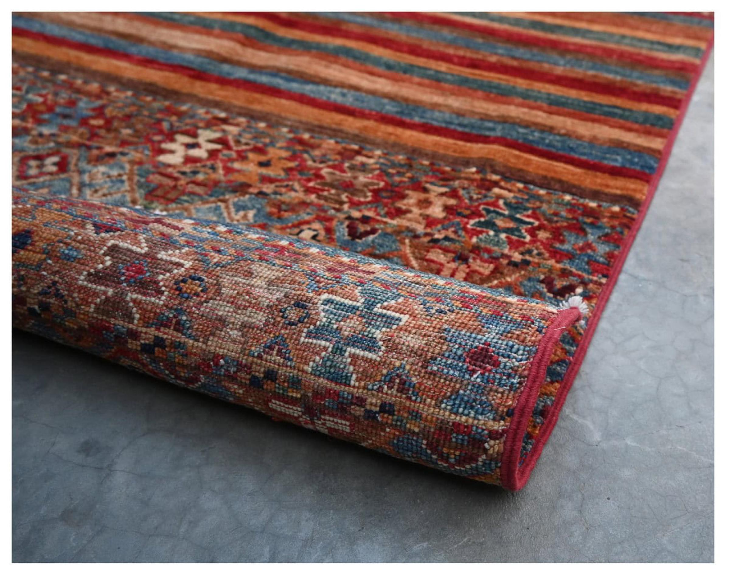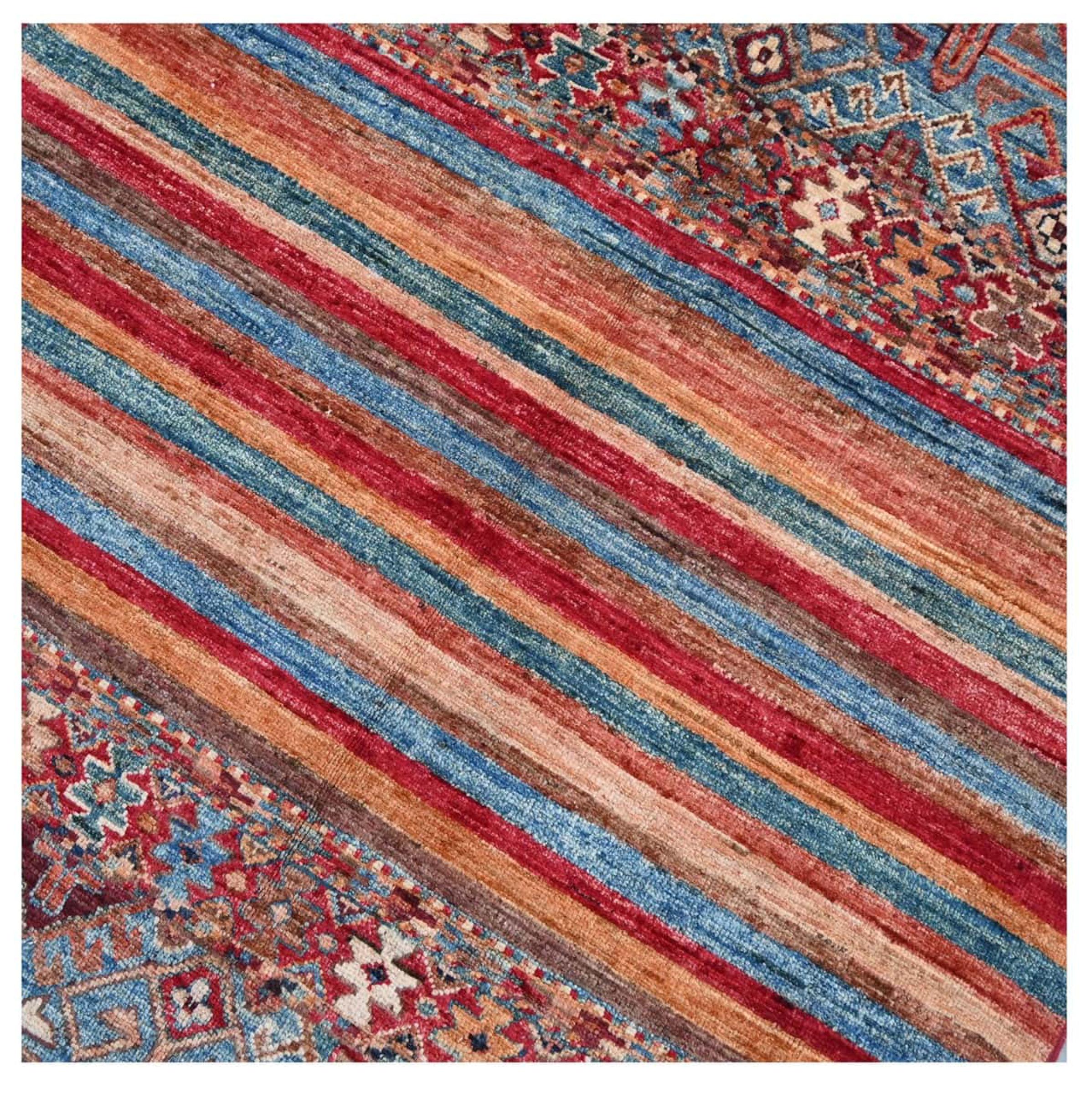 Esta alfombra de Arijana Shaal fue anudada a mano en Pakistán con la mejor artesanía. Promete una calidad muy alta y por lo tanto ofrece un placer duradero. El patrón de las rayas es variado y excitante. Se inspiró en el conocido diseño Moharamati. Si las alfombras monocromáticas son demasiado aburridas para ti, seguro que te encantará esta Arijana Shaal.