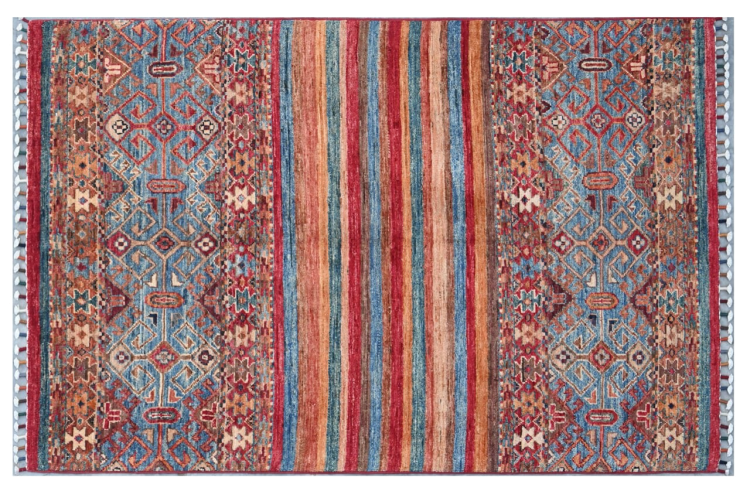 Alfombra número: 299377008012450 Tamaño: 153x96 cm Espesor: alrededor de 5 mm Nudos: 144 000 - 180 000 / m² Elaboración: Anudado a mano Crespón: Lana hilada a mano Urdimbre: Algodón Origen: Afganistán Edad: Nuevo Peso: alrededor de 5 kg Cantidad en stock: Única - Solo 1 en stock